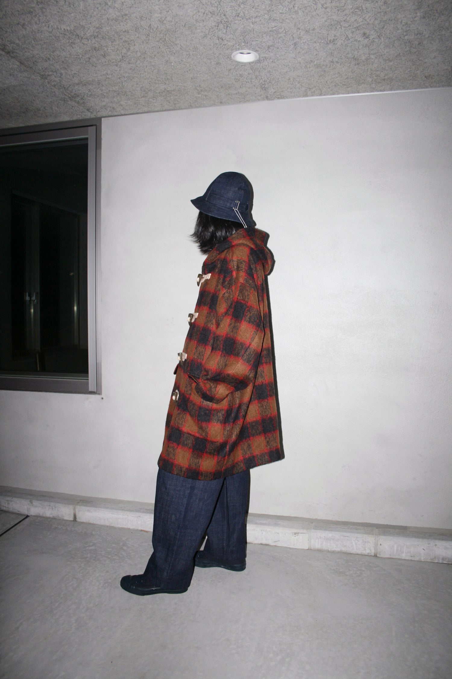 BASISBROEKらしい肩を落とし、身幅緩く肩肘の力を抜いたオーバーコート。フロントに大きめのポケットを配したダッフルコートタイプ。急な雨風に対応できる大きなフード。オーバーサイズですので、インナーにスウェットやシャツジャケットも無理なく着用頂けます。ウール、モヘアの、上質な素材を使用。厚手で暖かい。セットアップで是非。