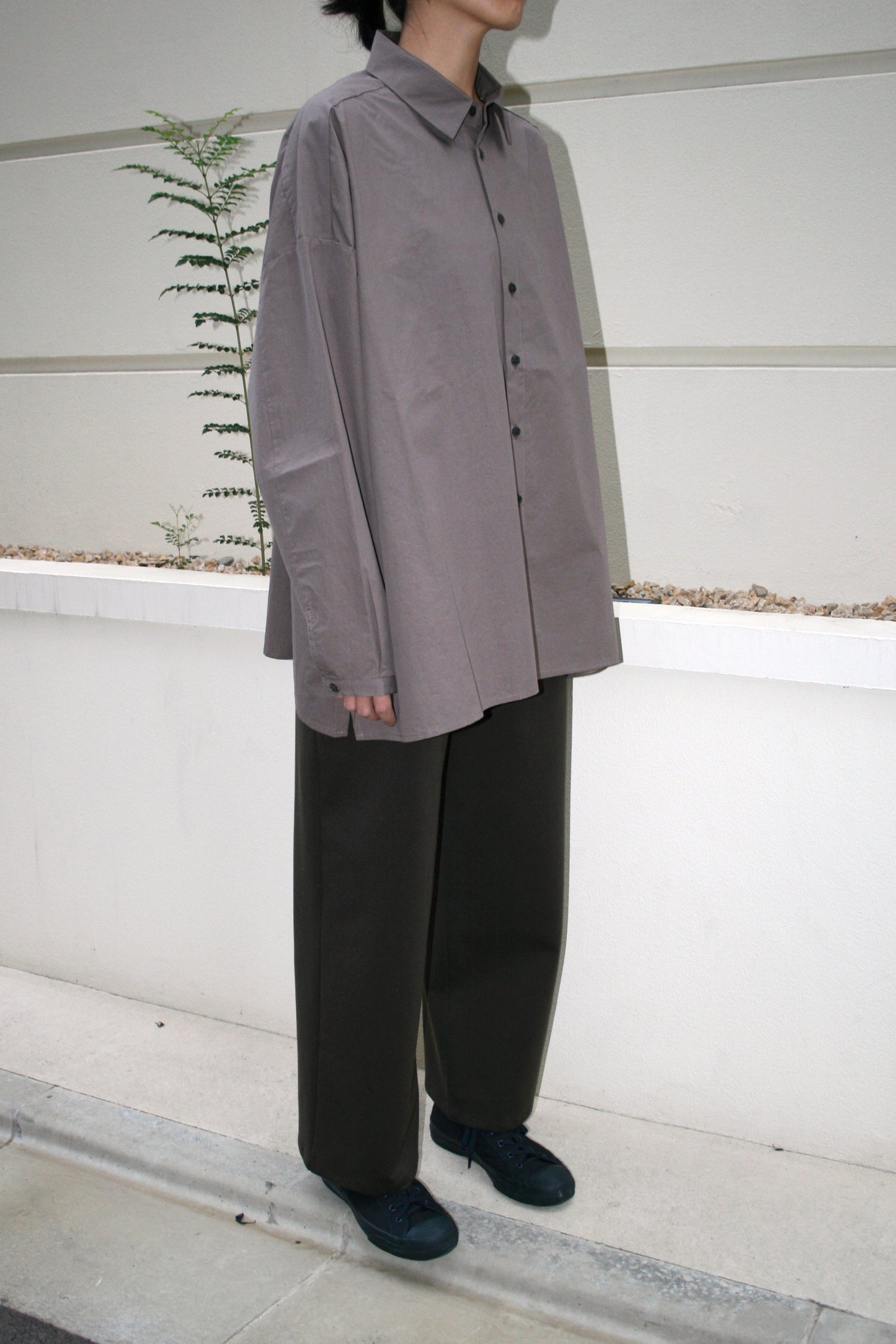 高密度のコットンを使用したBASISBROEK定番オーバーサイズROYシャツの新色:HARISSA (レッドブラウン)、TITAN (グレーブラウン)。細めのカフス / 小さめの襟 / 脇のスリット開きが特徴。胸ポケットは無し。 身幅をワイドに設定することでドレープを生み、程良いミニマル感を表現。スッキリとしたシルエットに見えますが身幅はたっぷり動きやすく快適なサイズ感です。ベーシックなフォルムをオーバーサイズに設計し、ユニセックスに仕上げました。