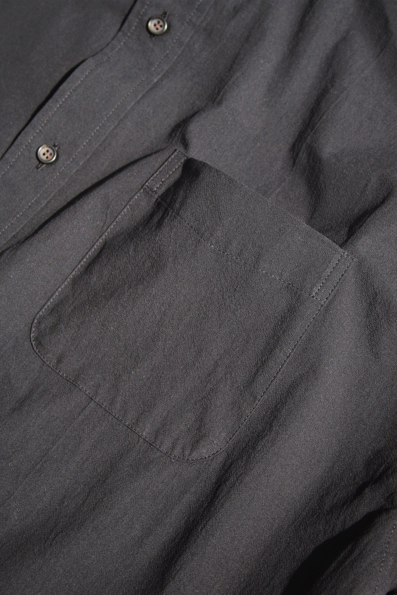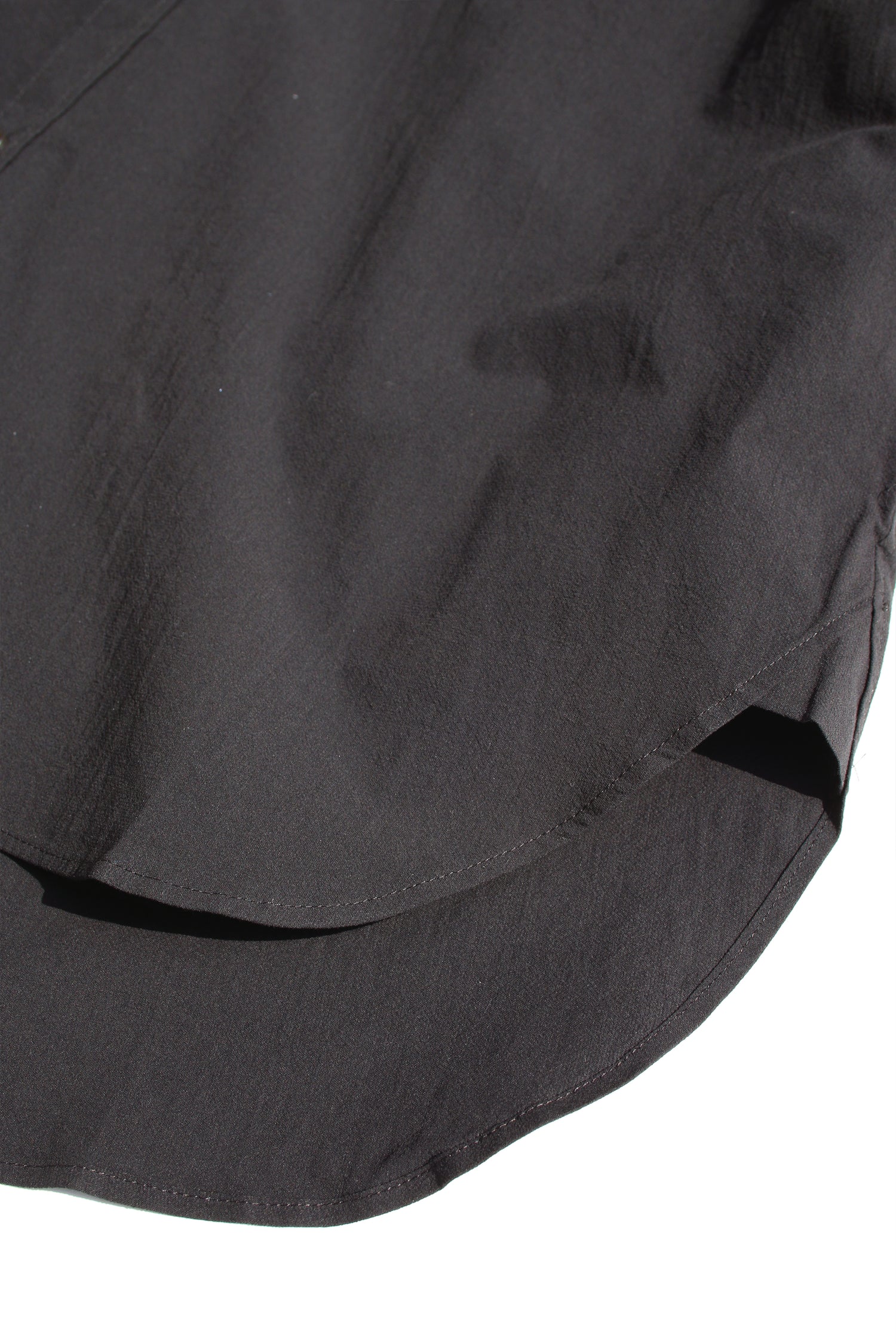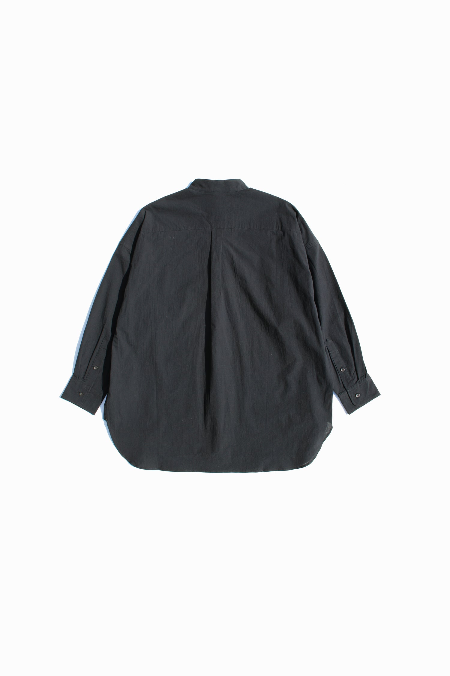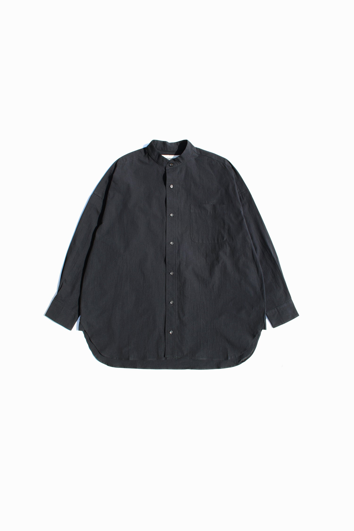 肌触りの良い上質なコードレーン生地を使用したバンドカラーシャツです。薄手で、ソフトと滑らかな肌触りを持ち、暑くなるこれからの時期にも快適に穿いていただけます。 やや着丈の長いゆったりとしたシルエットとなっております。ドロップショルダーとゆるっとしたワイドシルエットが着心地良く、ほどよい抜け感も出しています。単体での使用はもちろん、レイヤードでの着用もお勧めです。ジャケットやカーディガンとの重ね着も楽しめます。