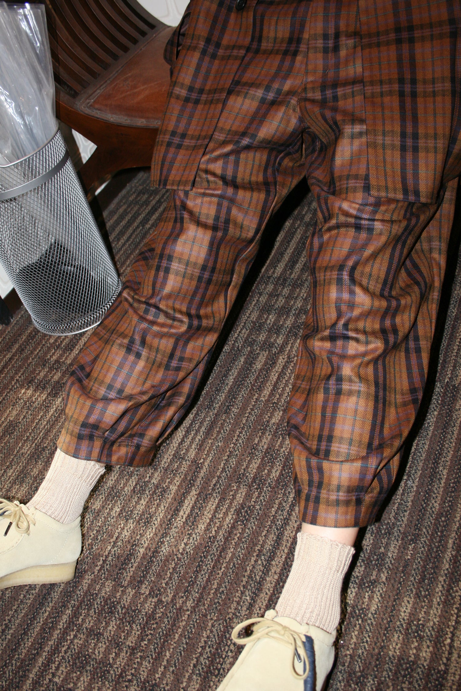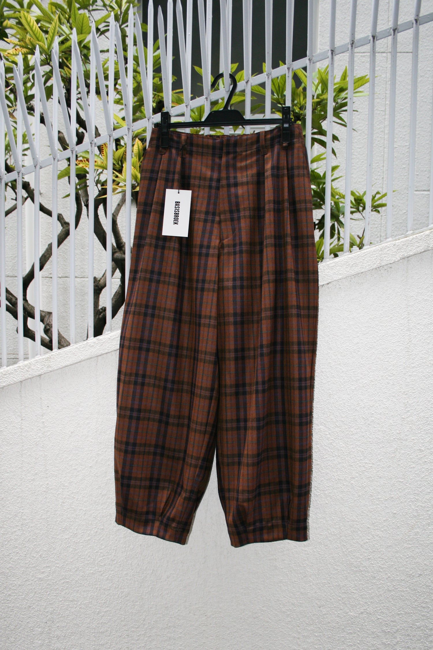 BASISBROEKよりトラッドな雰囲気のウールゴファンパンツ。ウールの奥行きのある表情と適度に中肉厚のしっかりした生地なので履き心地にも安心感があります。タータンチェック柄が秋冬の装いに楽しさを加えます。シルエットは上品なワイドシルエット。裾元にシェイプをかけ、股上を深めに取った丸みのあるシルエットライン。両サイドポケット、バックポケット付き。スニーカーからビジネスシューズまでこなせるマルチなパンツです。同素材のLUCHIブルゾン(ブラウンチェック、ブラック)とのセットアップもおすすめです。
