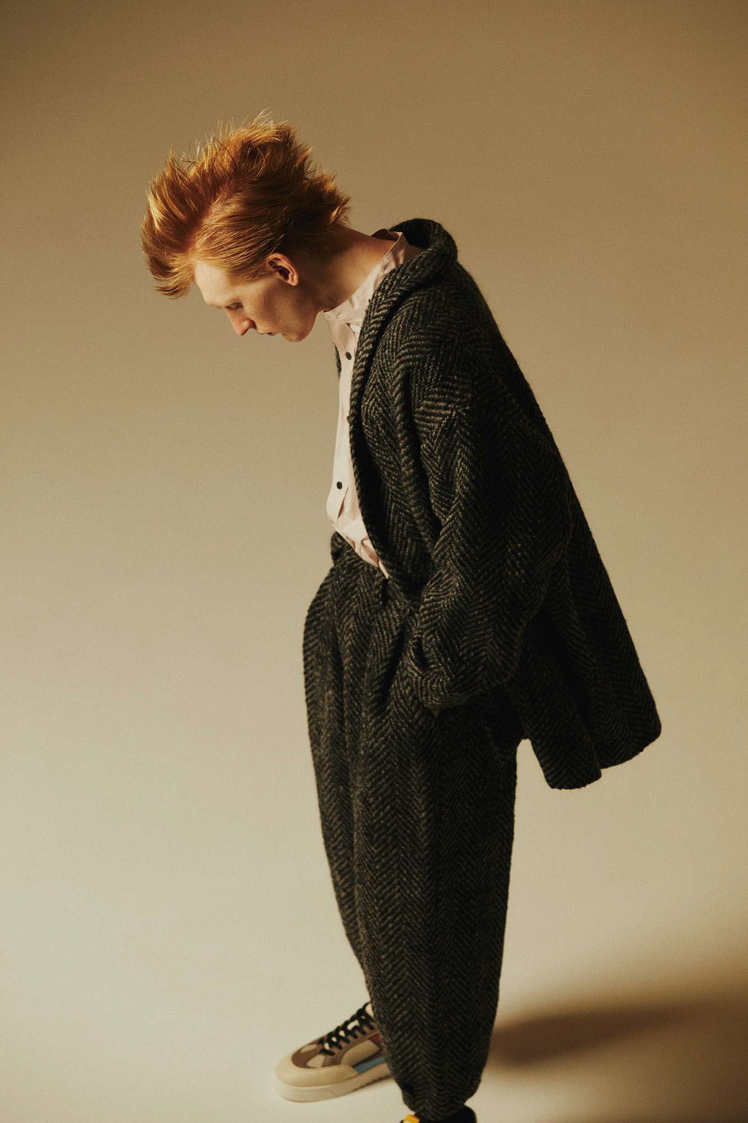 ウールロービングツイードテーラードジャケットが秋冬仕様になって新たに登場。ぬくもりも上質感もたっぷりなジャケット。素材はウールツイードを使用しており、程よく柔らかい印象に。表面の細かいヘリンボーン柄が高級感を醸し出します。裏地も当て込み、着心地もプラスしましした。ドロップショルダーのゆったりとしたサイズ感になっています。たっぷりと余白を持たせたボリュームシルエットが、表情豊かなドレープを引き出す。シングルボタンで、すっきりとした印象のミニマルなデザインが特徴です。両サイドには使い勝手の良いポケット付き。インナーにパーカーを着たりルーズパンツなどのアイテムとも相性抜群です。ユニセックスでお使いいただけます。