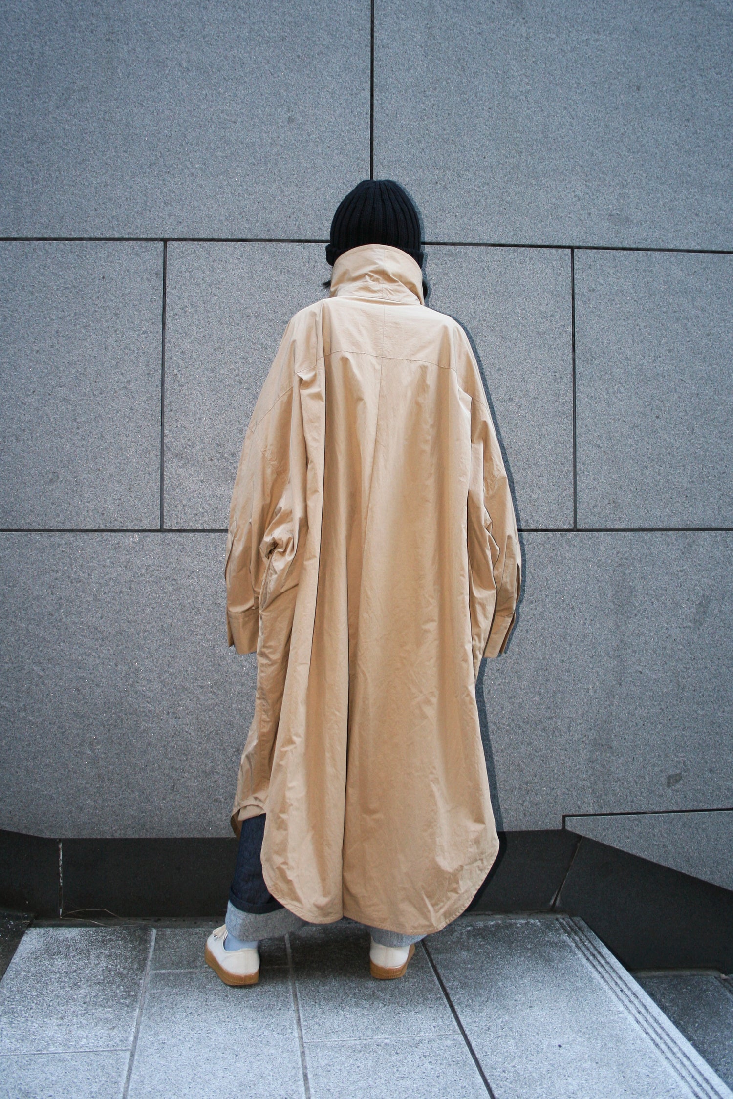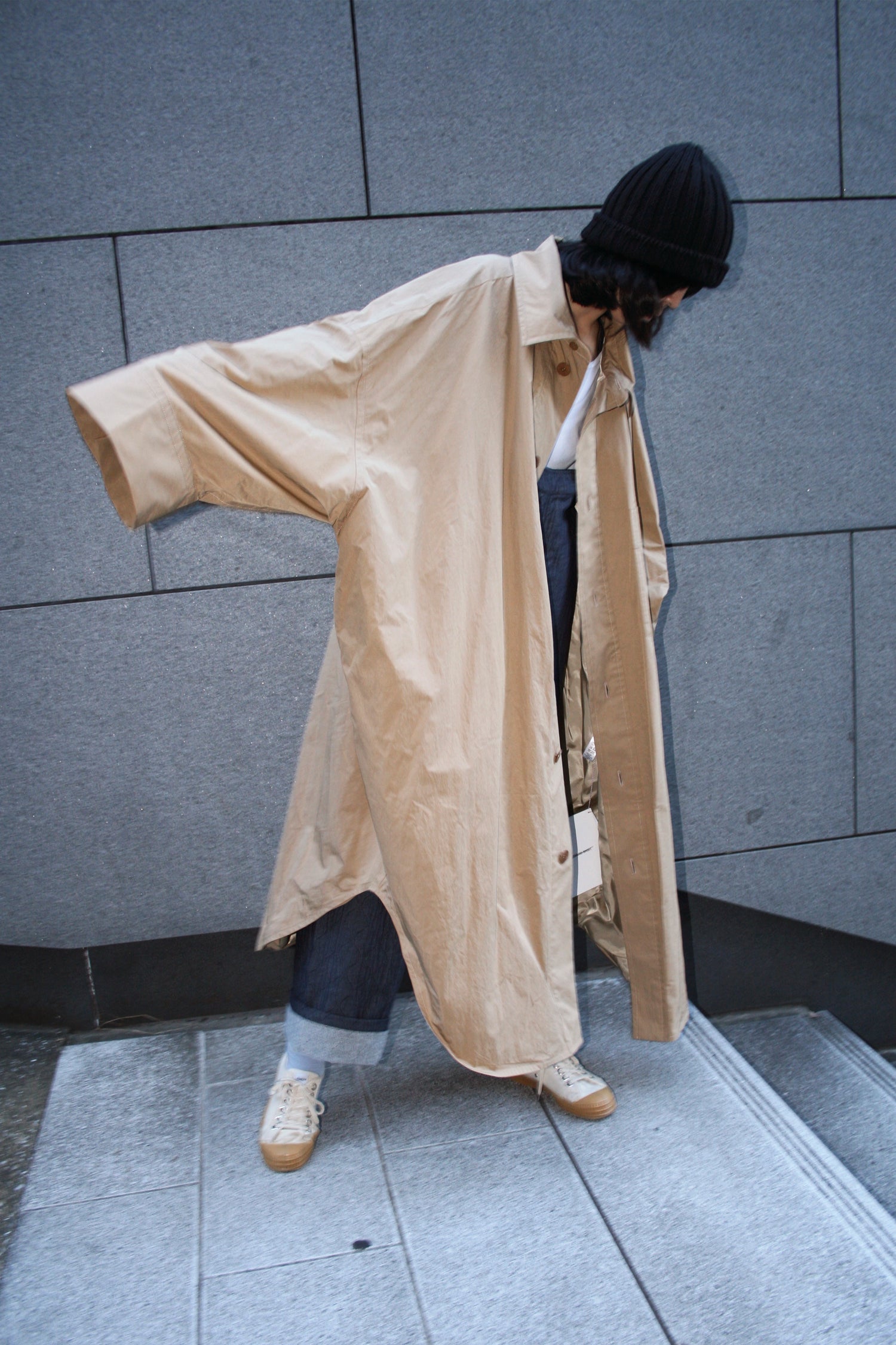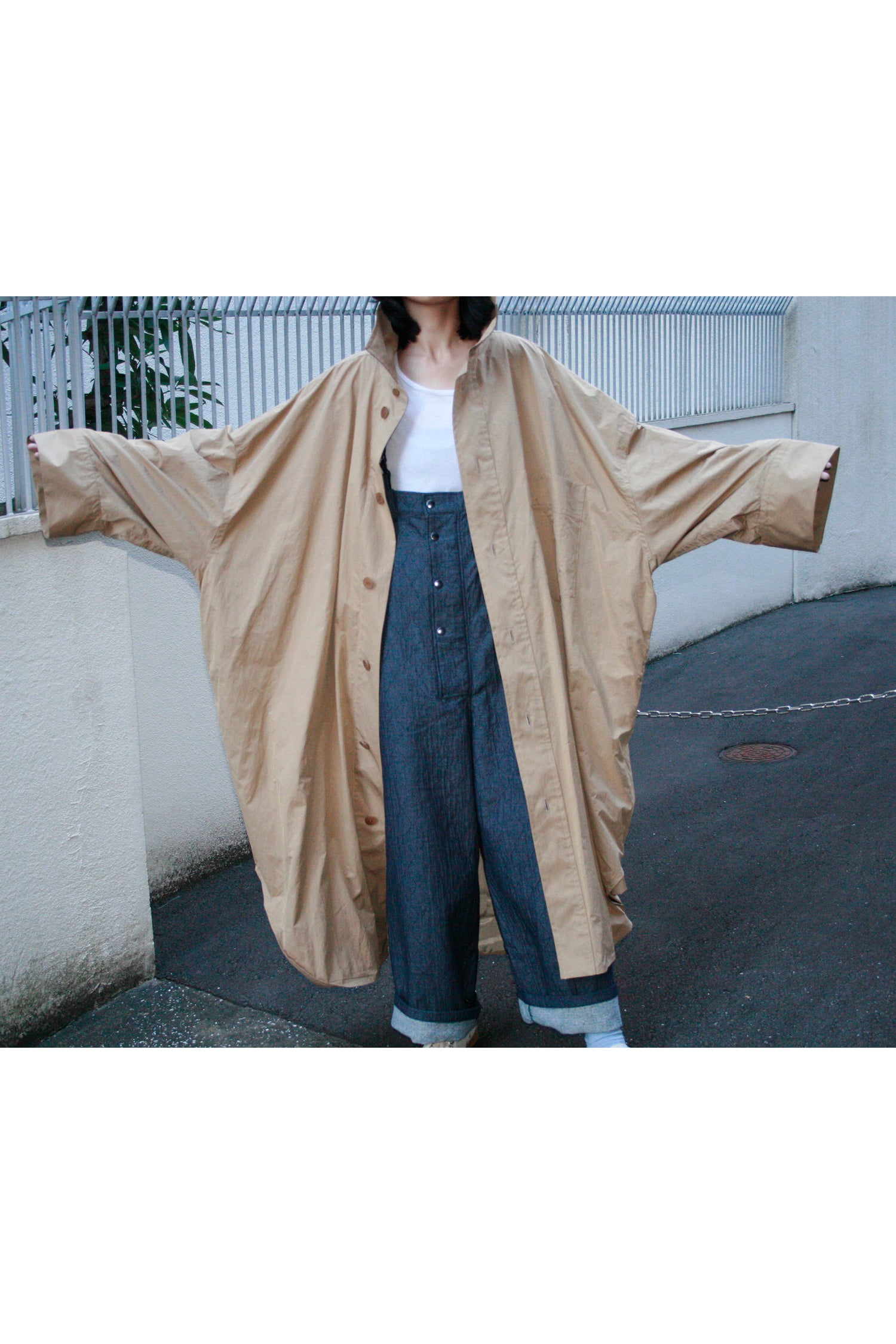 上質なナイロンとポリエステルを用いたユニセックスコート。シャツシルエットで、たっぷりとしたボリュームのあるビッグシルエット、ゆったりとした袖が特徴のデザインコート。生地によって、春、秋は羽織として、冬は中に何でも着込めるサイズ感なので、長い時期着用可能。大きな胸ポケットがあり、機能性も抜群です。 サイドポケット2ヶ配備。内側に滑らかなライニングがあり、秋冬日でも、着替えやすいウールセーターが楽しめるアイテムです。ボディラインを綺麗に見せるシルエットの美しさが魅力です。オーバーサイズなのでバランスを自在に楽しめます。同じシリーズチェックコートでの着用もオススメです。共地を使用したブラックコートHBB BASTARD COATとブラックパンツGUMMIZUGHOSE <GEBEULT>もございます。