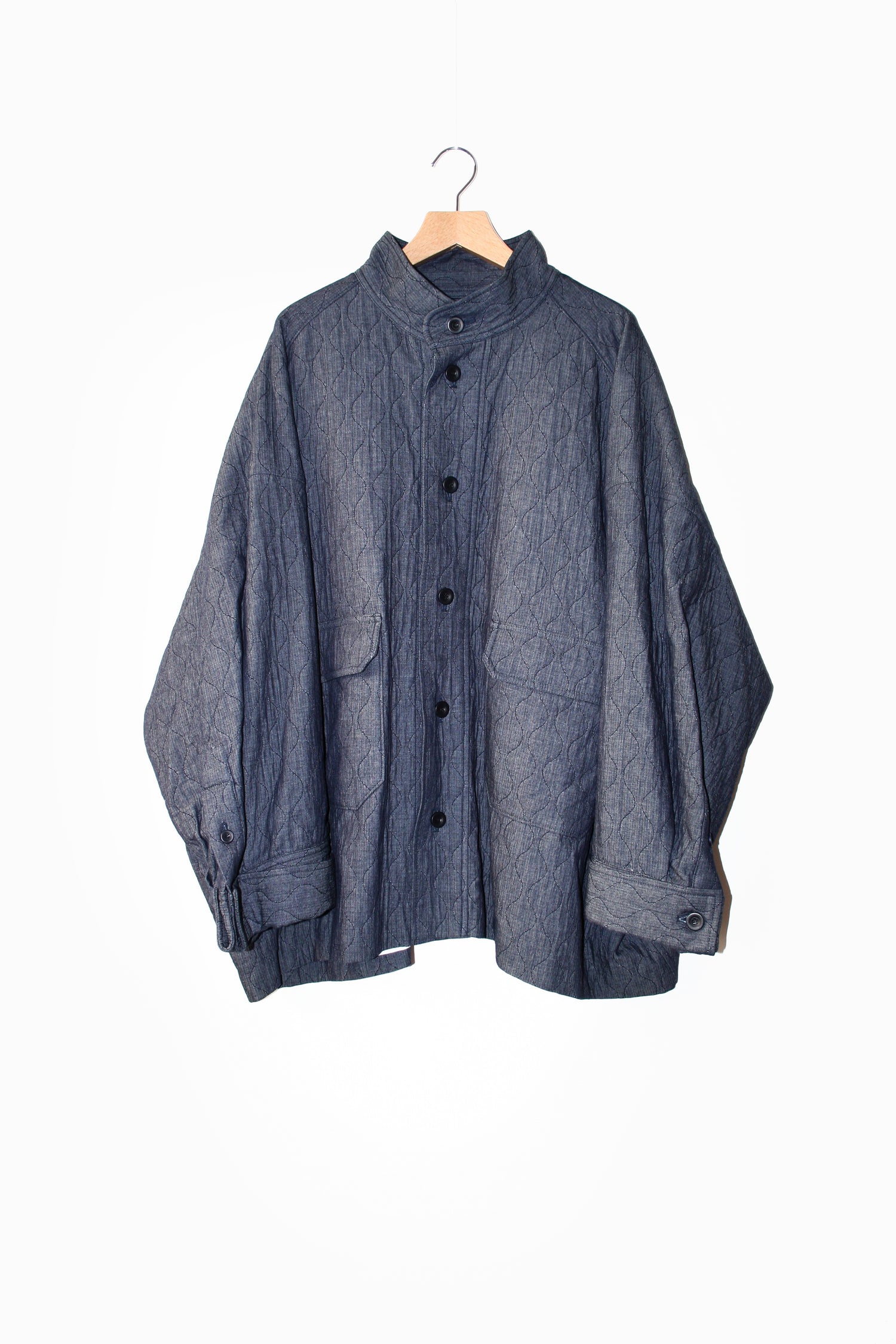 丈夫なコットン素材をキルティングステッチし、カジュアルなBIGシルエットのユニセックスブルゾンに仕上げました。厚過ぎないふっくらとした着心地です。サイドポケットに加え、シルエットにこだわったブルゾンに仕立てました。後身頃を多くとり、前に持ってきたようなカタチになっています。オーバーサイズカットで、リラックスしたスタイルにも取り入れやすい一枚です。オフホワイト系の<an issue of freedom>と無地のダークネイビーonion jacquard!の2色展開です。共地を使用したオールインワンSCHUTZHOSE <HOHE TAILLE>もございます。
