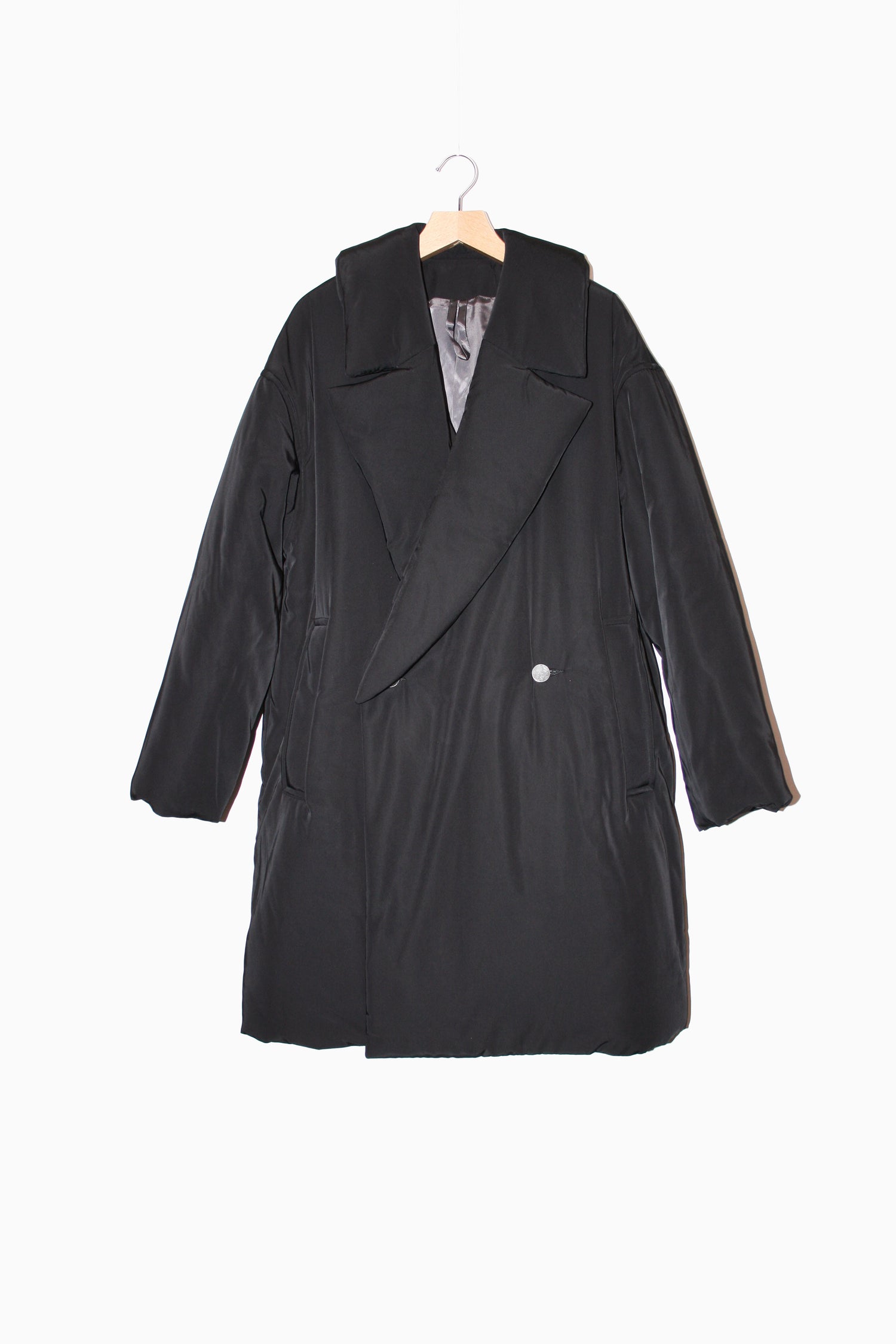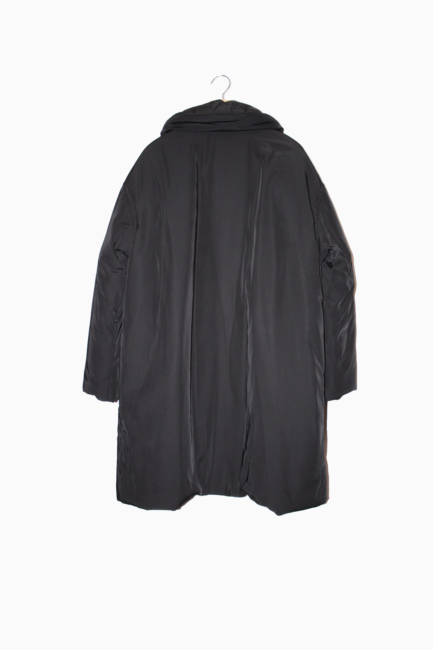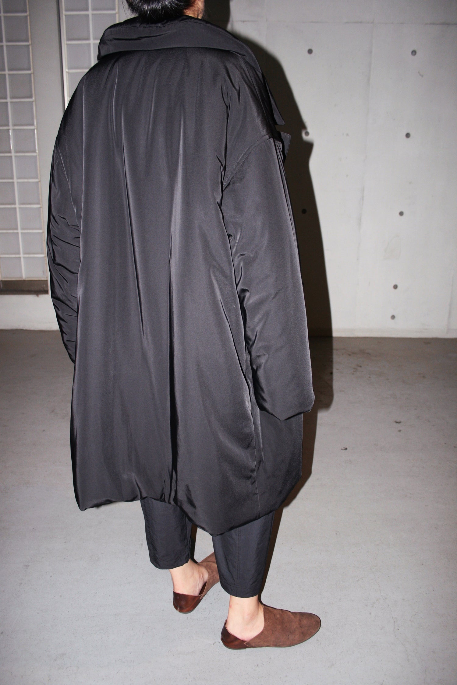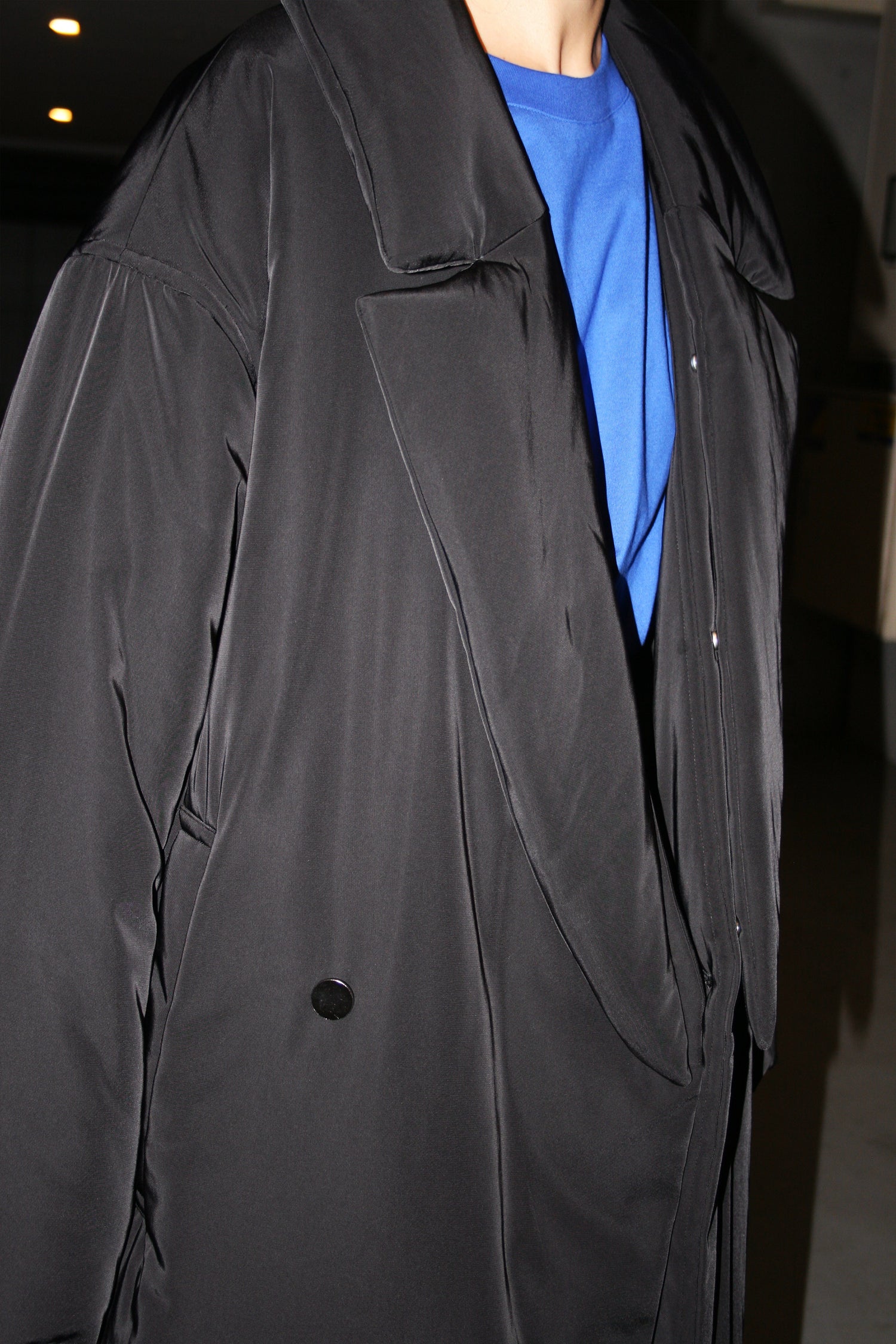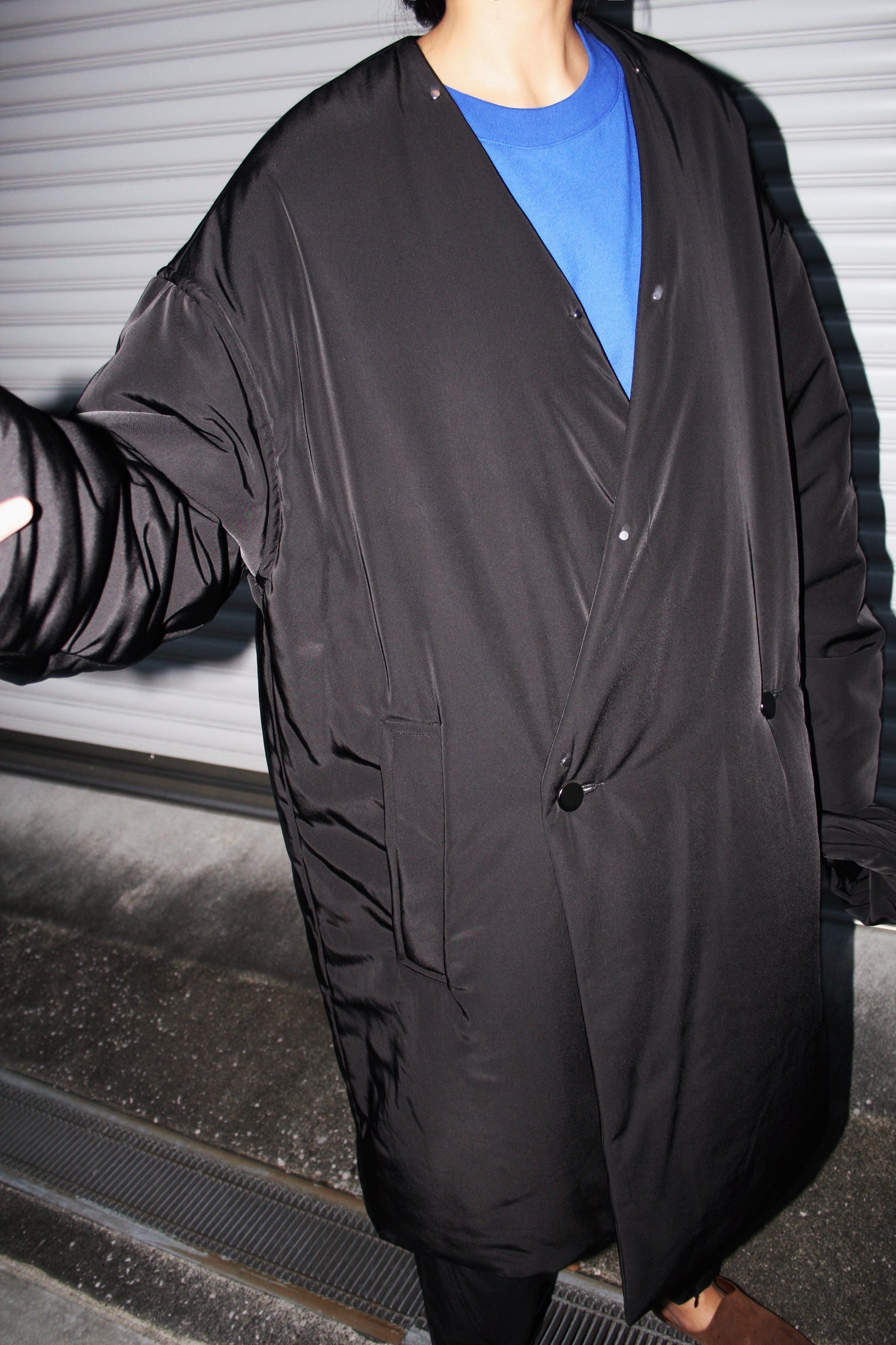 今シーズンを代表するアウター。実用性と保温性抜群の中綿コートになります。通気性が良くストレスフリーな着心地ながら、イージーケアで快適な素材なのが特徴です。衿は大きめでミニマルな中にアクセントを感じるデザイン。衿を取り外してノーカラーにすることも可能。取った衿は首にまくなどアクセサリーとして提案。両側にはポケット、中間にはエレガントなボタンを採用して細かなディテールがアクセントに。シルエットは長くて幅が広いので、ボタンを少しあけてシャツやパンツを合わせればおしゃれレイヤードスタイルが楽しめます。暖かく感じるコートをお探しの方には是非ともお勧めのコートとなっております。