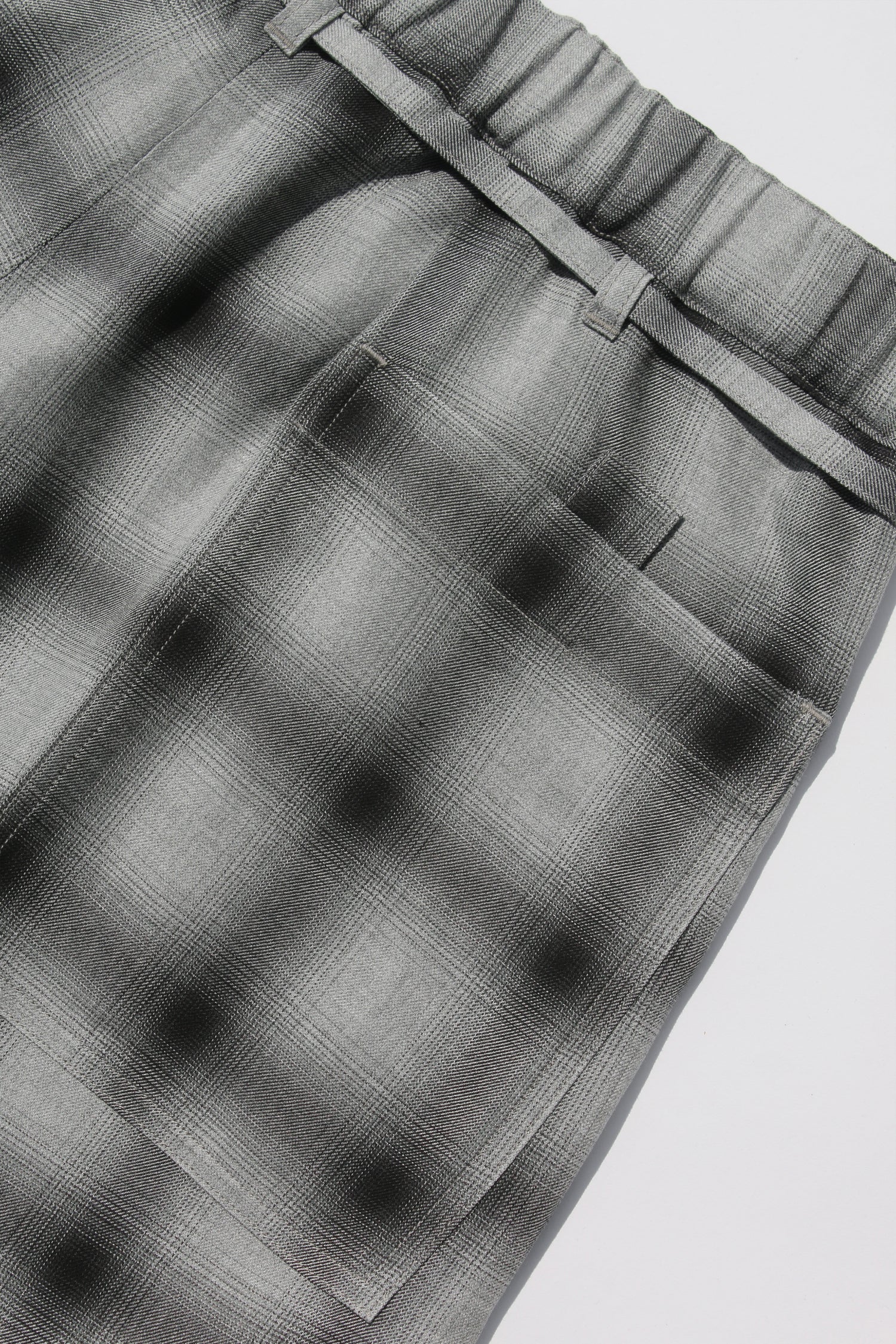 Ombre checks shorts of rayon twill with their gentle drape, shadowed and so soft. Three pleats and a slender belt at the waist. Mid-leg shape and loose fit.