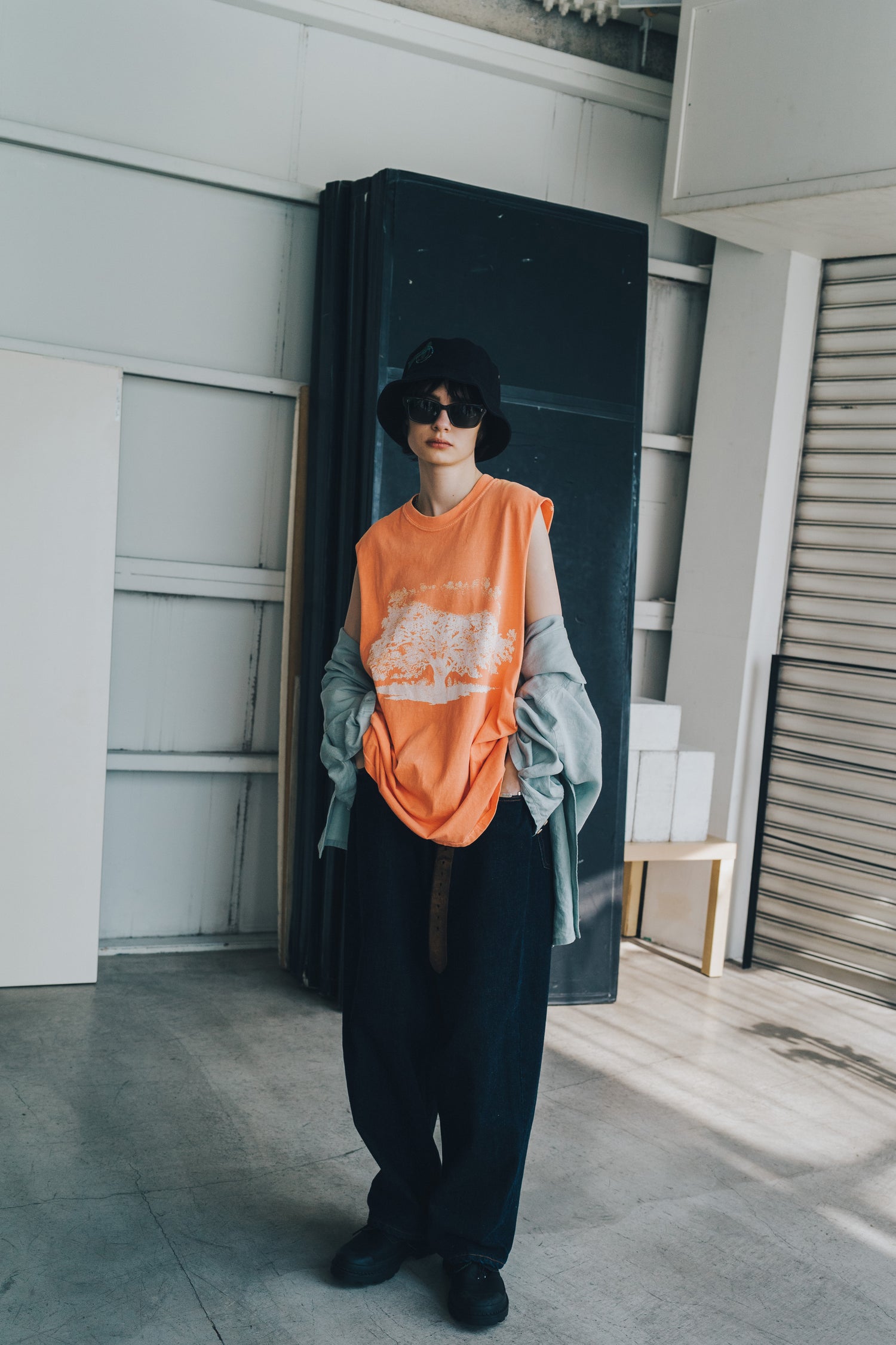 ESSAYの定番バギータックジーンズ - バギーテーパード。13oz綿100%デニムを使用。バイオウォッシュ加工を施しヴィンテージライクな表情を表現。90年代のスケーターデニムをインスピレーションにデザイン。左右非対称なデザインとなっており、片側だけに施されたタックが特徴あるアシンメトリーなドレープを生む。ストリート・モードの調和に優れたデザインバギージーンズ。主張性が強過ぎず好印象なヘビーロテーションアイテム。フロントポケットのオリジナル織りネームタグも好きです。フォルドカラーデニムジャケット・シネマコートとセットアップ対応可能。