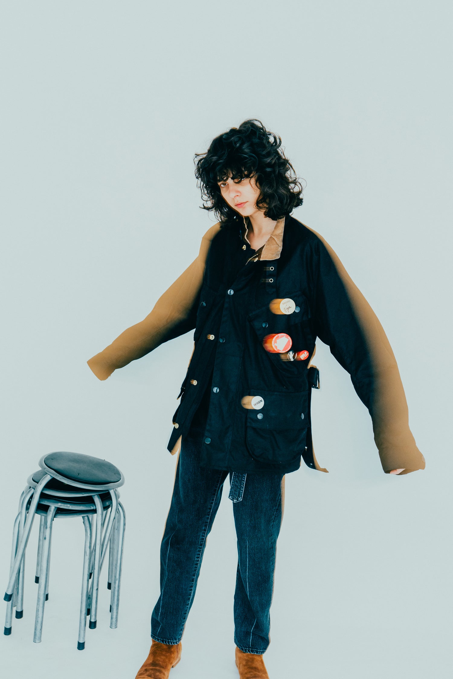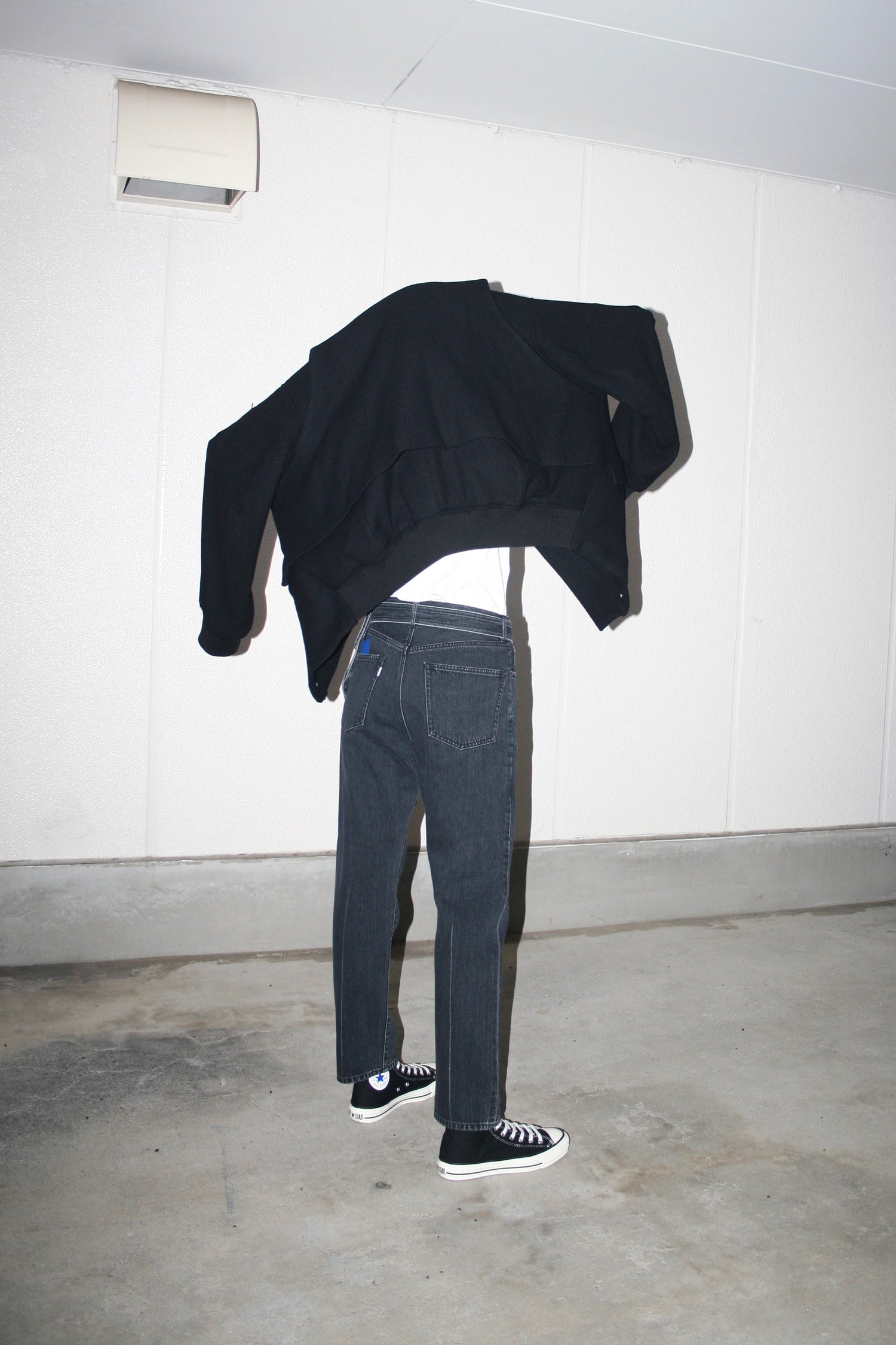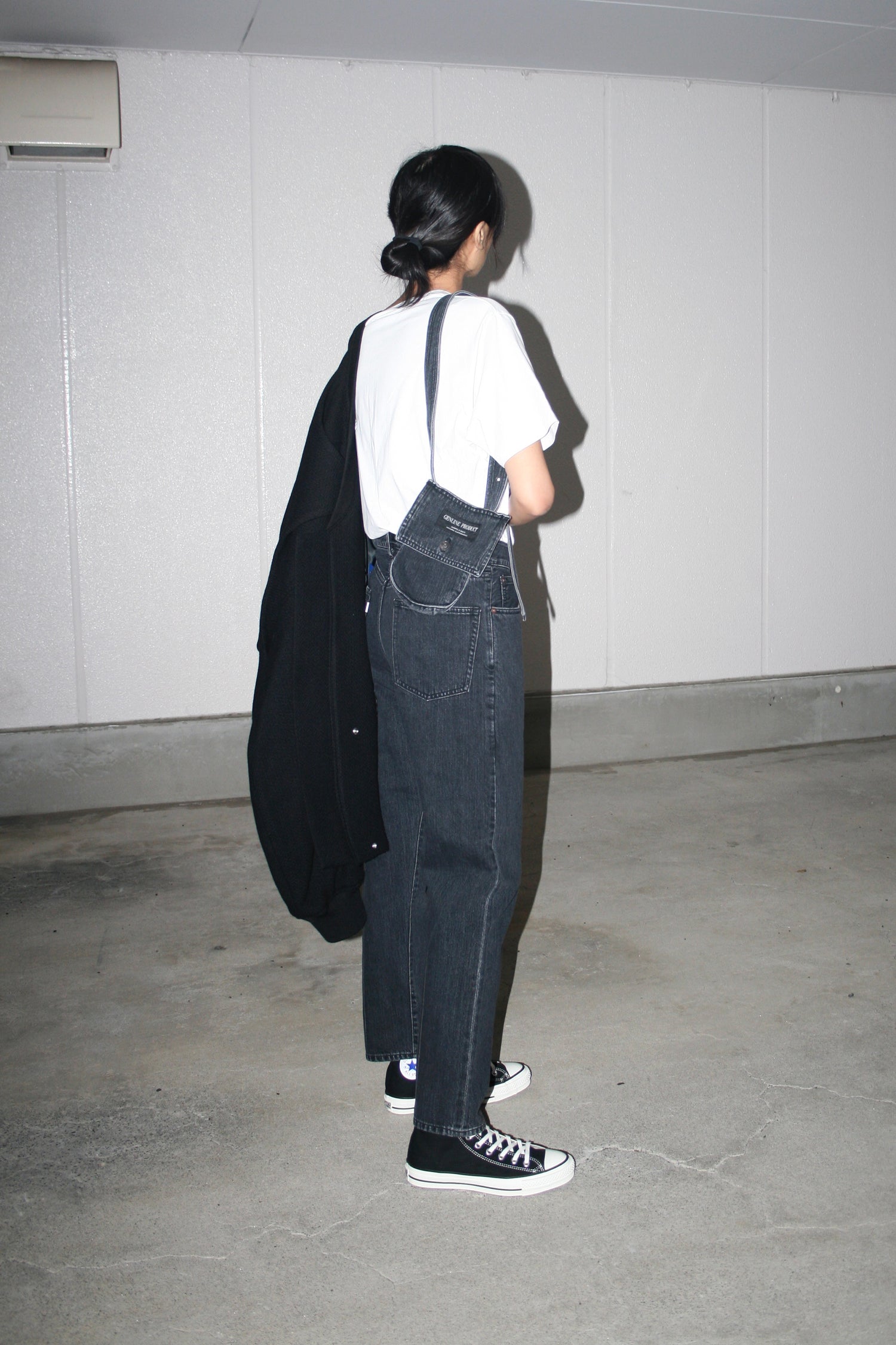 ESSAY’s tapered denim pants in black, a certain pattern of slim pants communicates something other than itself, than its form. The juxtaposition between Japanese studious trousers and European feel-cool-vibes vintages always works. The waist is encircled a belt with a bag that combines adventure and exchange. The attached pocket with belt is removable and it could be a versatile accessory on other pants or garments. This pants is made by soft 12oz selvedge denim (stone bio washed for a naturally fading feel).