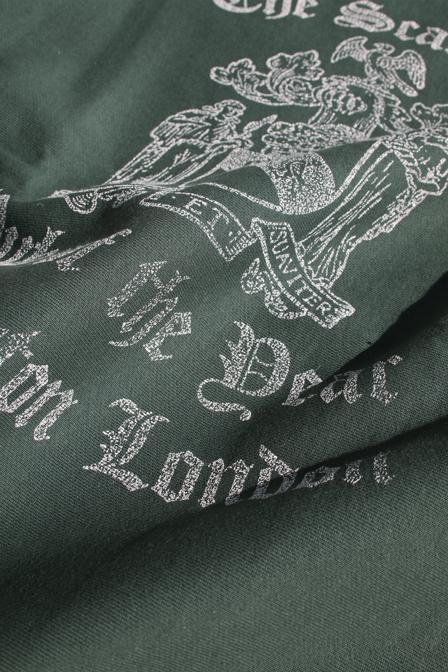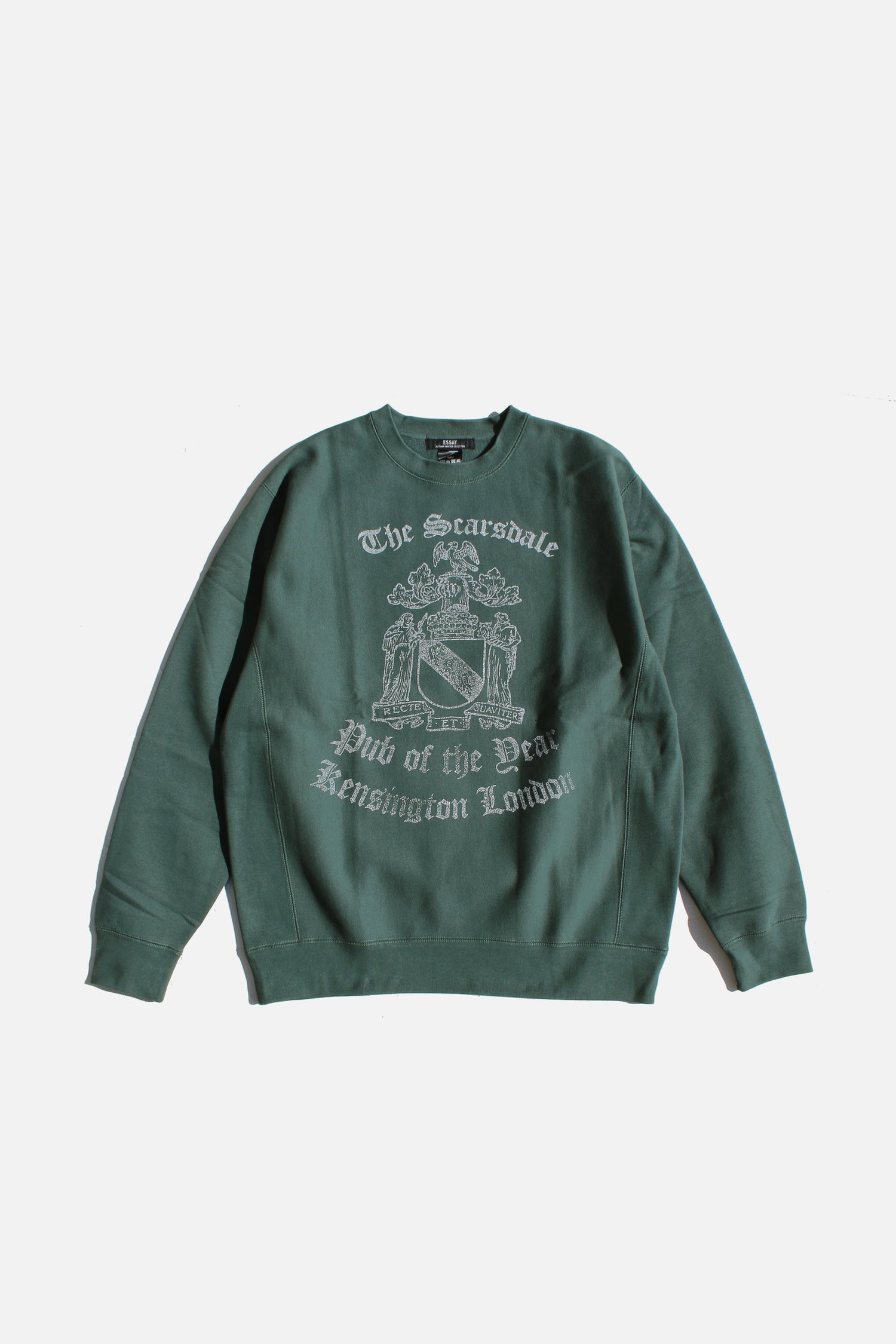 イギリス・ロンドンに実在したローカルパブ(大衆酒場)のスーベニアスウェットをデザインソースにヴィンテージ調に仕上げたグラフィック。オールドイングリッシュの書体が実にイギリスらしい。シルクスクリーンプリントの風合いは個体によって若干の変化があります。