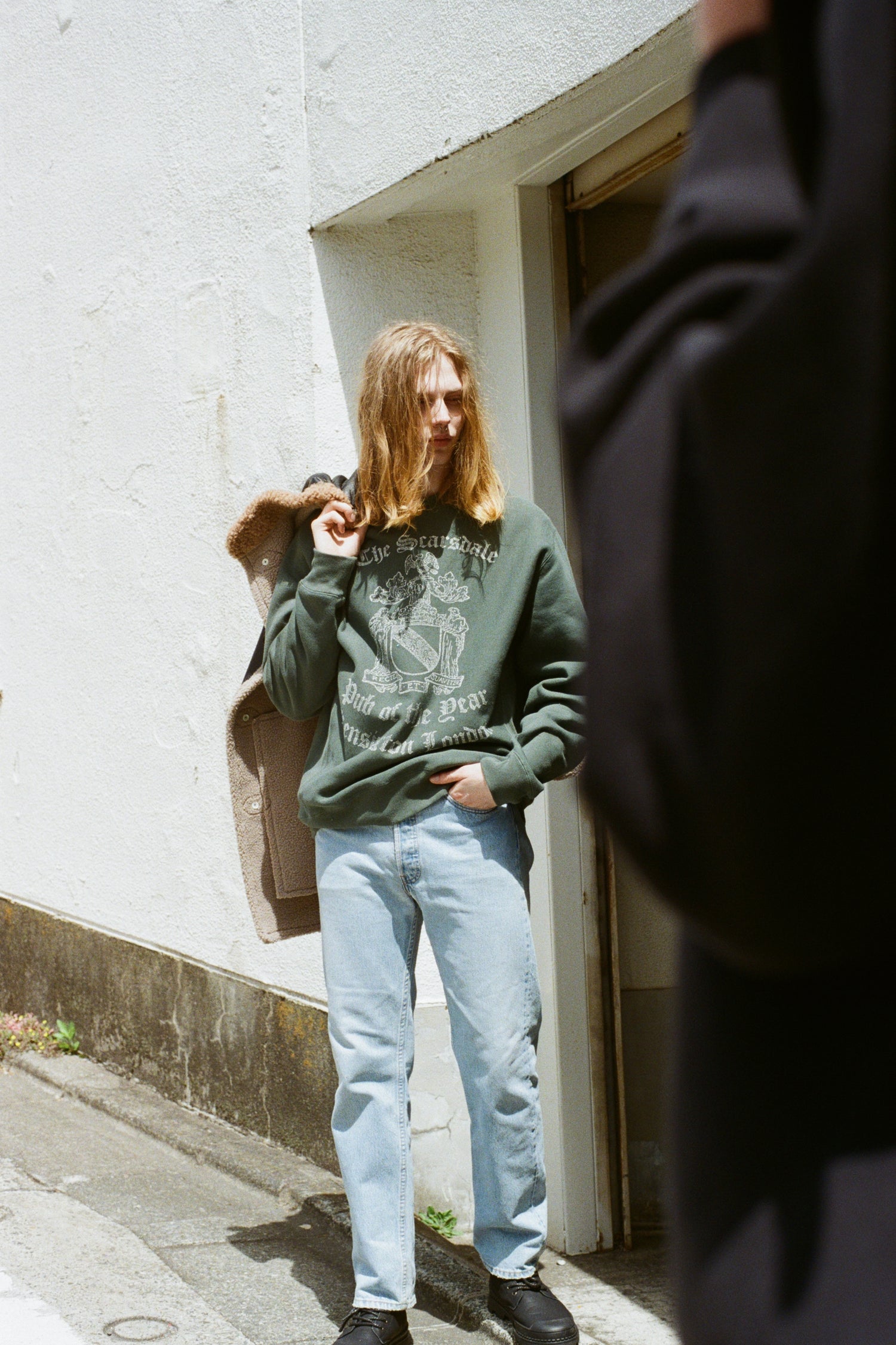 ヘビーウェイトコットン13.5ozのクロスグレインスウェット。オーバーサイズ。クロスグレイン製法による横使いされた生地により洗濯時の縦縮みを軽減し、両脇のサイドリブパネルは着用時のストレッチ性を向上させる。柔らかさとヴィンテージ感を作るために独特のプリントUSED加工を施しています。