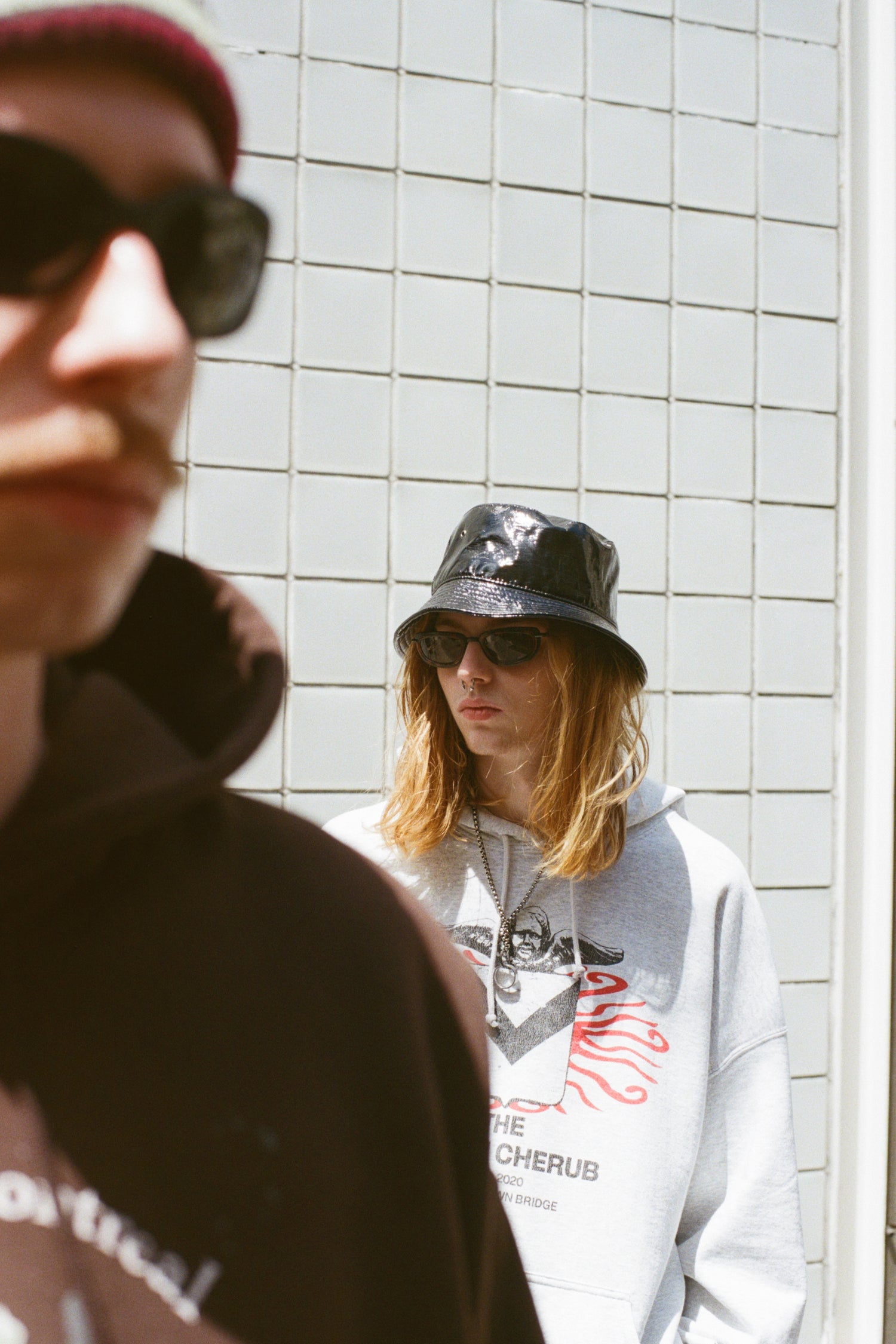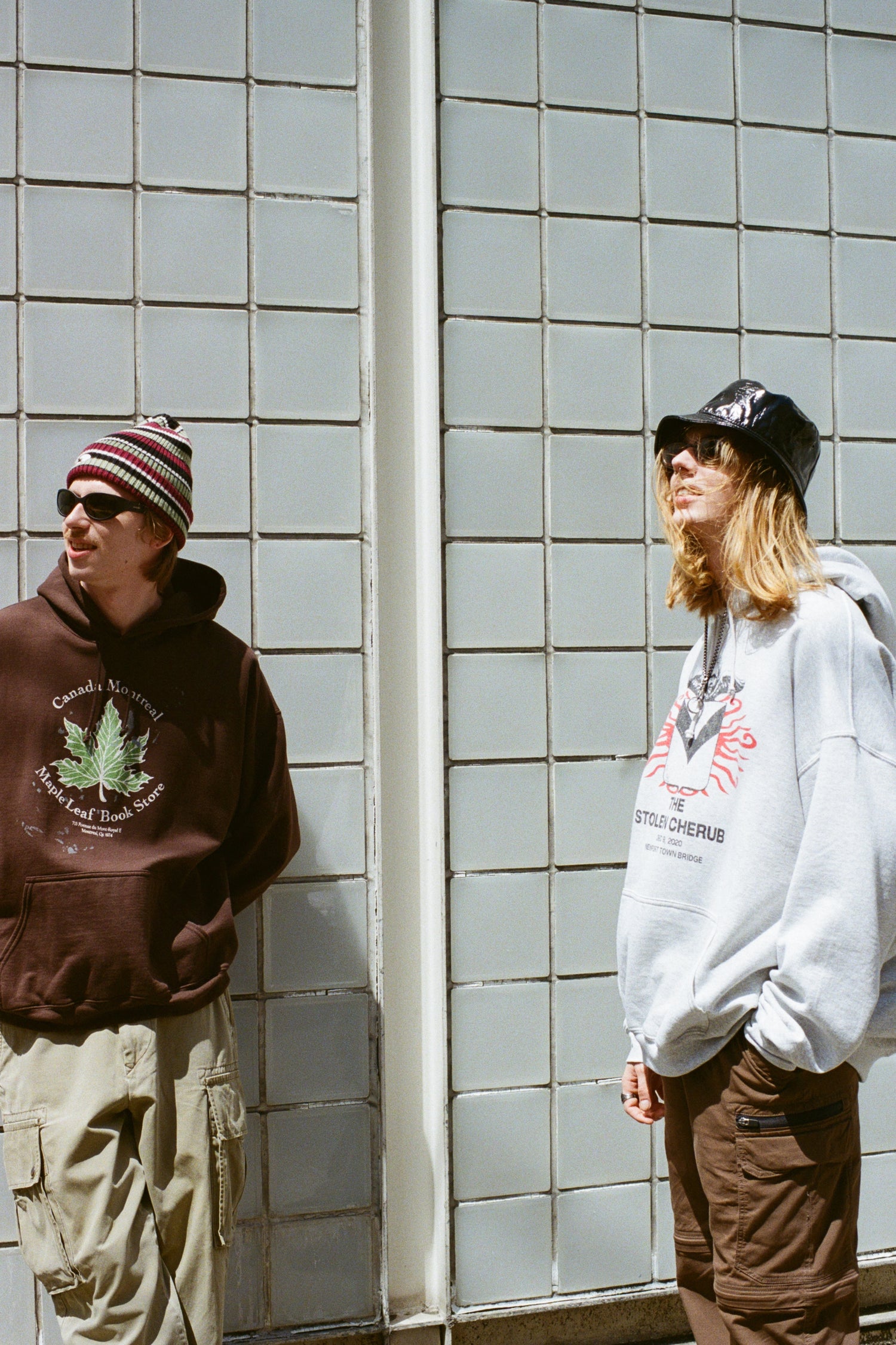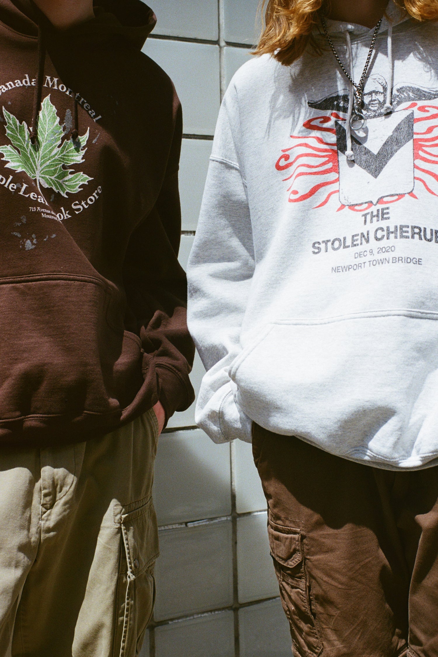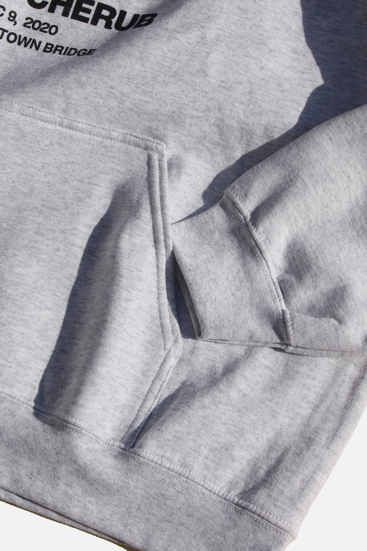 Screen printed drop shoulder hoodie. The STOLEN CHERUB design is based out of a sculpture theft incident on the Newport Bridge, and the cover of "Love Spreads”, a single from The Stone Roses. Each printing is a state in itself. Unisex.
