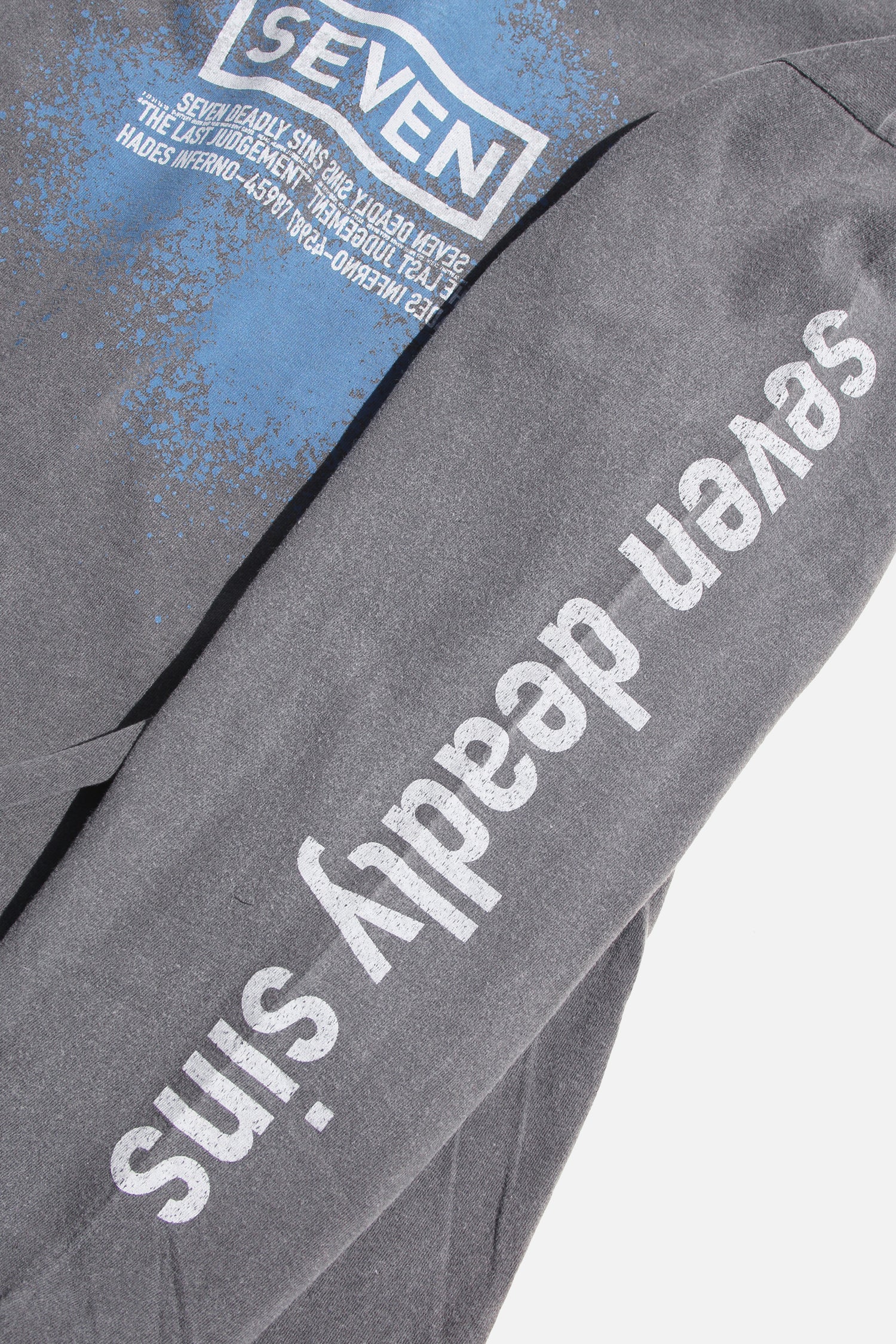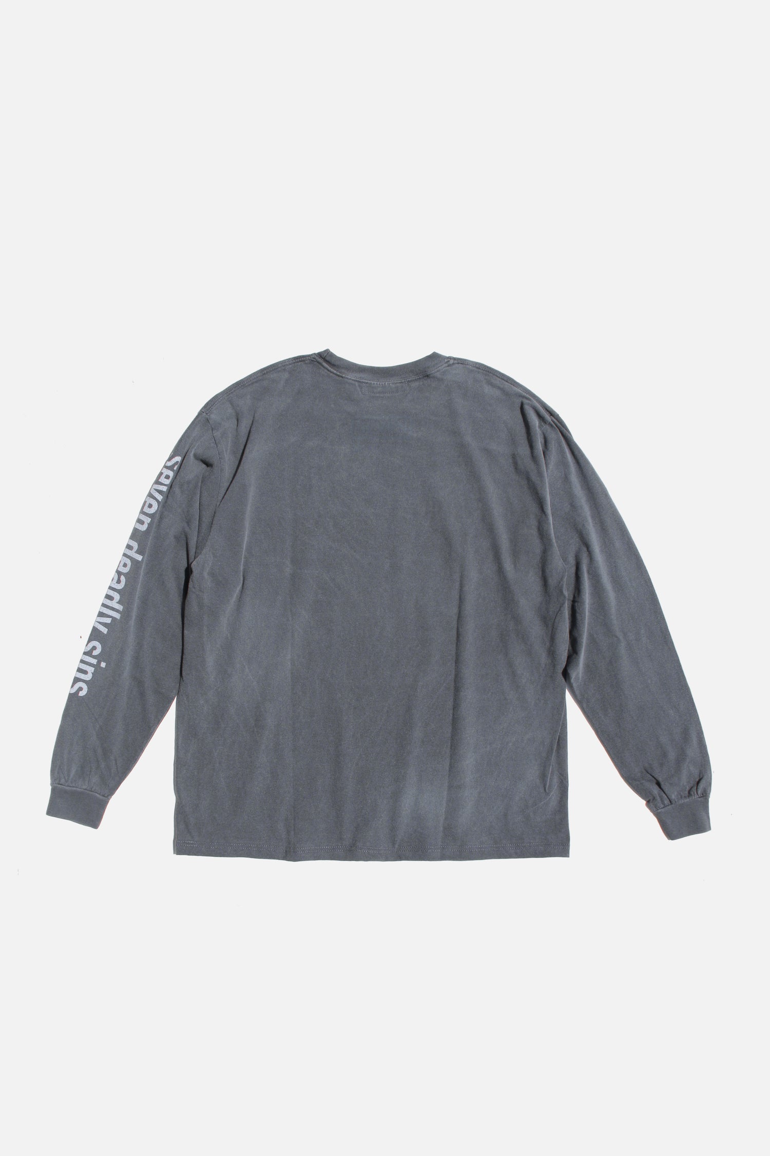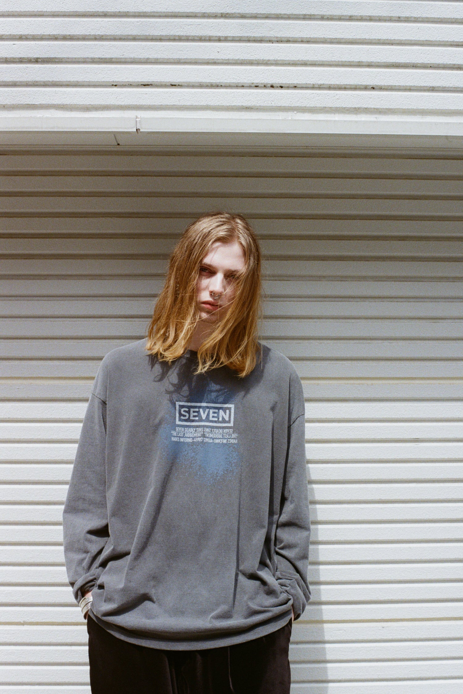 ESSAY 24AWコレクションのフェードXLロングTシャツ。ガーメントダイ・リングスパン6.1oz天竺 / リング糸(リングスパン)を使用することにより、洗い重ねる度に肌触り良い滑らかな風合いへと変化する。 製品染めにるヴィンテージライクな表情が特徴。職人手作業によるサンフェード加工 / 柔らかさとヴィンテージ感を作るために独特のプリントUSED加工を施しています。ウォッシュ&タンブラーの加工を施しドライな質感を表現。SEVEN (セブン) デビット・フィンチャー1995年 映画"セブン" 7つの大罪、 Nine Inch Nails "Closer"からインスパイア。スクリーンプリント(及びフェード加工)の風合いは個体によって若干の変化があります。