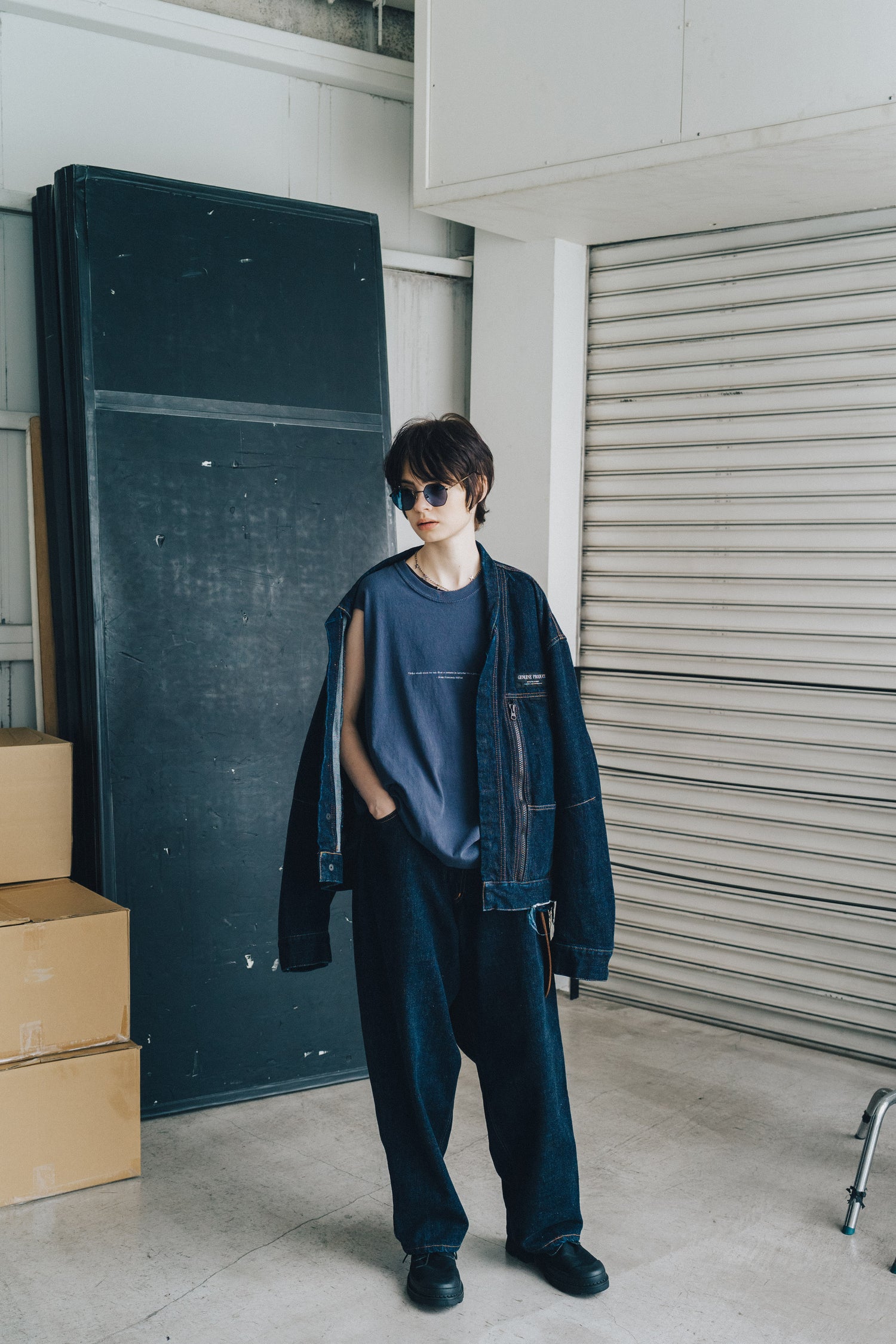 One of our favorite releases by that fine label: a strong, almost hermetic fold-collar denim jacket with deeper 90s sense and insightful European details, as a jacket from ESSAY 2016SS has repeatedly shown. The indigo denim is also central, refined by means of a meticulous process of washing and drying, creating a very soft feel. One size (oversize) helps shape our experience of surroundings beyond our physical self.