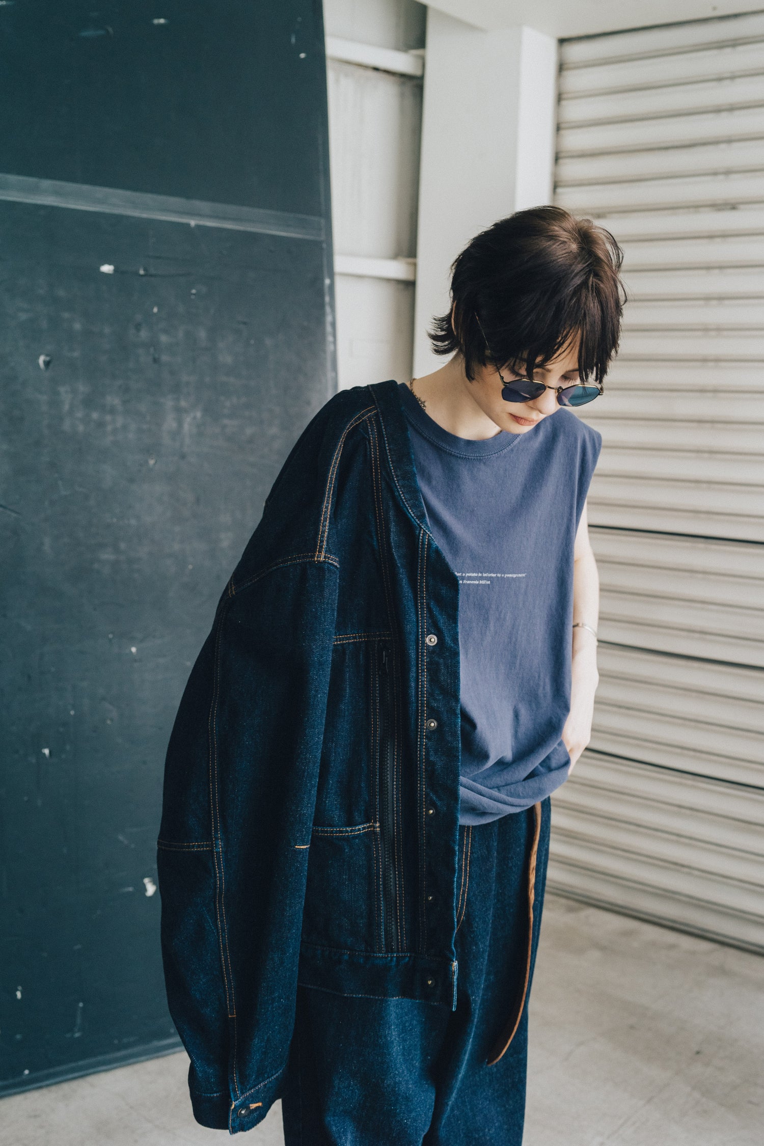 DETAILSOne of our favorite releases by that fine label: a strong, almost hermetic fold-collar denim jacket with deeper 90s sense and insightful European details, as a jacket from ESSAY 2016SS has repeatedly shown. The indigo denim is also central, refined by means of a meticulous process of washing and drying, creating a very soft feel. One size (oversize) helps shape our experience of surroundings beyond our physical self.