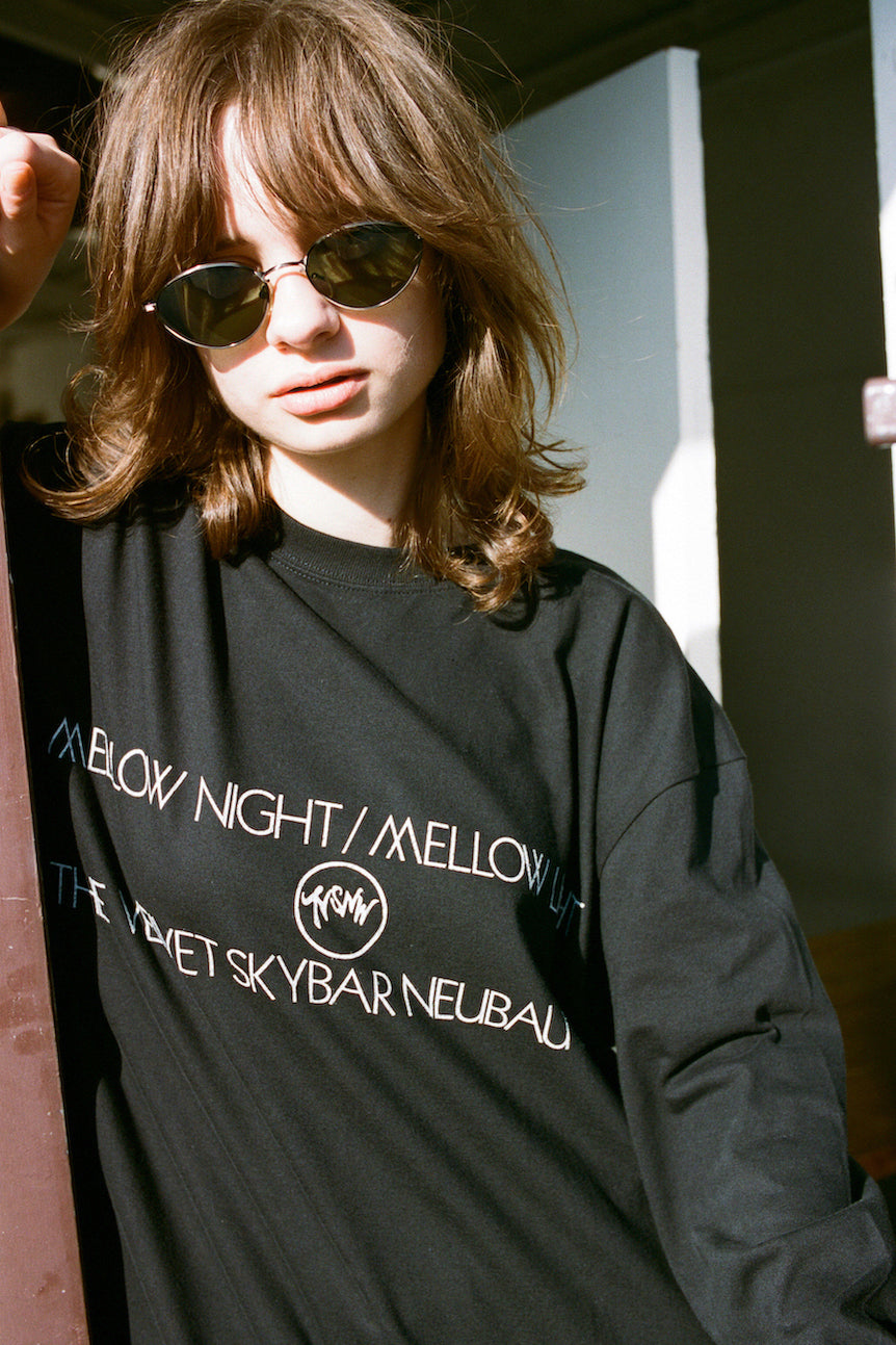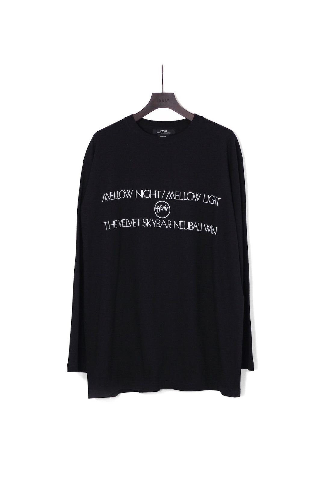 ESSAYの新型ロングスリーブ Tシャツ。セミオーバーサイズ。5.6ozリングスパンコットン天竺 / リング糸(リングスパン)を使用することにより、洗い重ねる度に肌触り良い滑らかな風合いへと変化する上質素材。ヴィンテージスーベニアTシャツを元にグラフィックデザイン, オーストリアはウィーンに存在したバーの名前が記されている。 グラフィックはVELVET UNDERGROUND(バンド)の"WHITE LIGHT / WHITE HEAT"(アルバム)がソース元となる。スクリーンプリントの風合いは個体によって若干の変化があります。