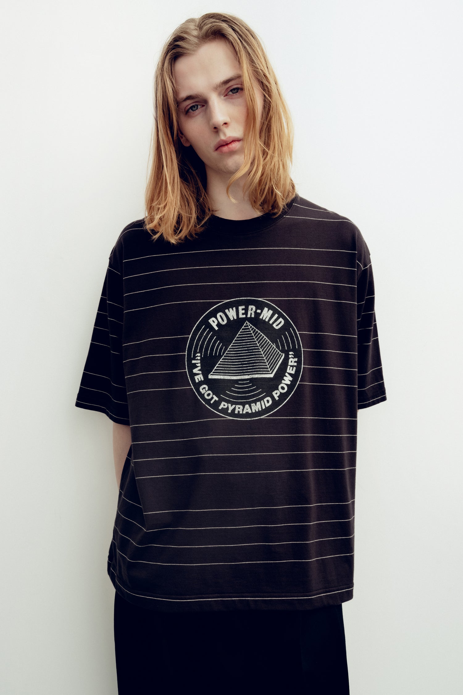 A t-shirt of quiet strength, in organic cotton, soft and smooth through every wash. Influenced by a pyramid graphic found on vintage T-shirts, where "Pyramid Power" and radiating lines suggest a mysterious force.