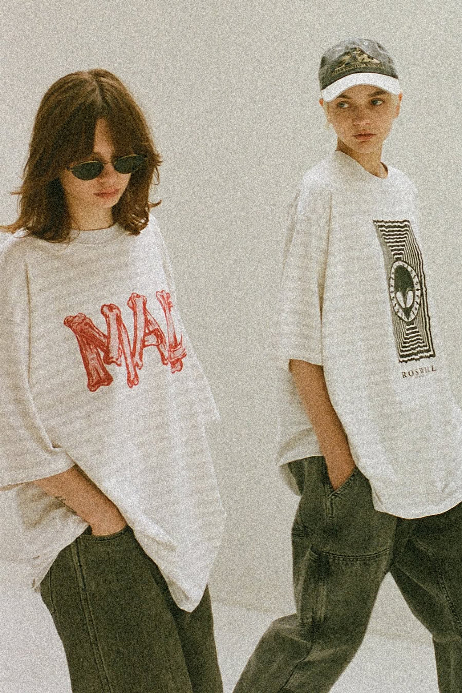 スタンダードなオーバーサイズシルエットを追求し、デイリーユースに活躍するシンプルなTシャツをESSAYオリジナルでデザイン。清涼感あるシャドーボーダー素材とESSAY特徴的なグラフィックプリントの融合を楽しんで頂きたい1着。