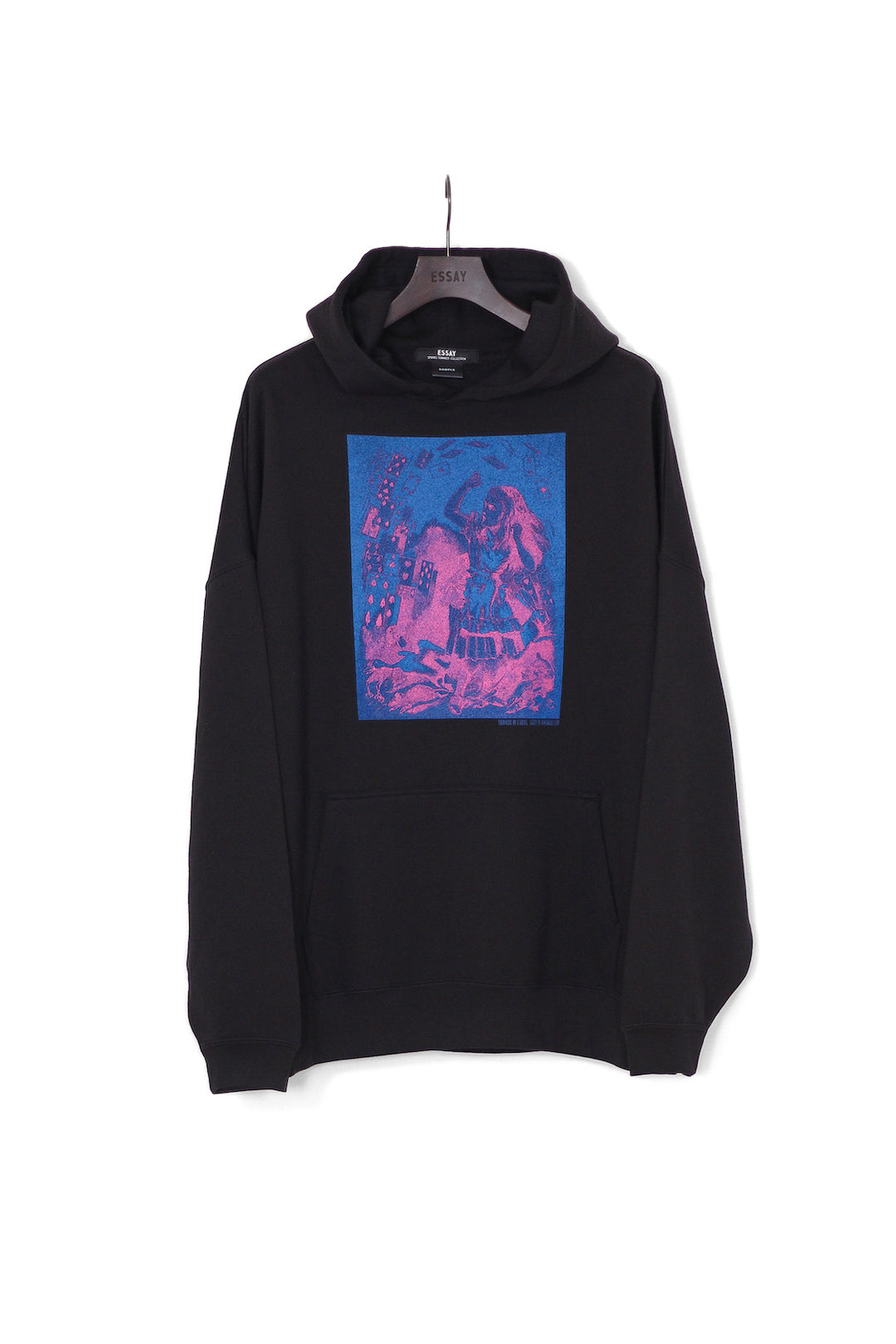 ESSAYの新型セミオーバーサイズプリントパーカー。