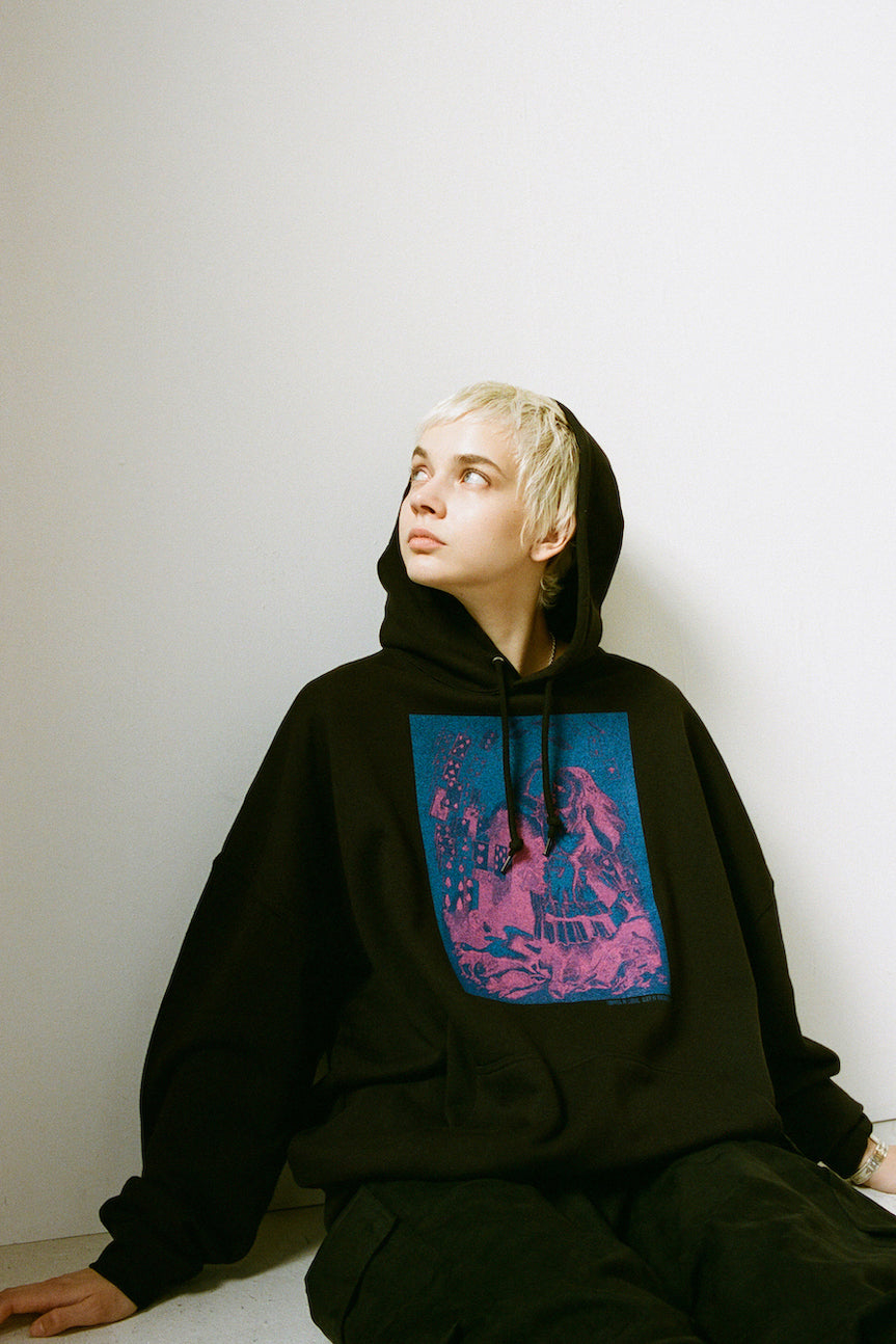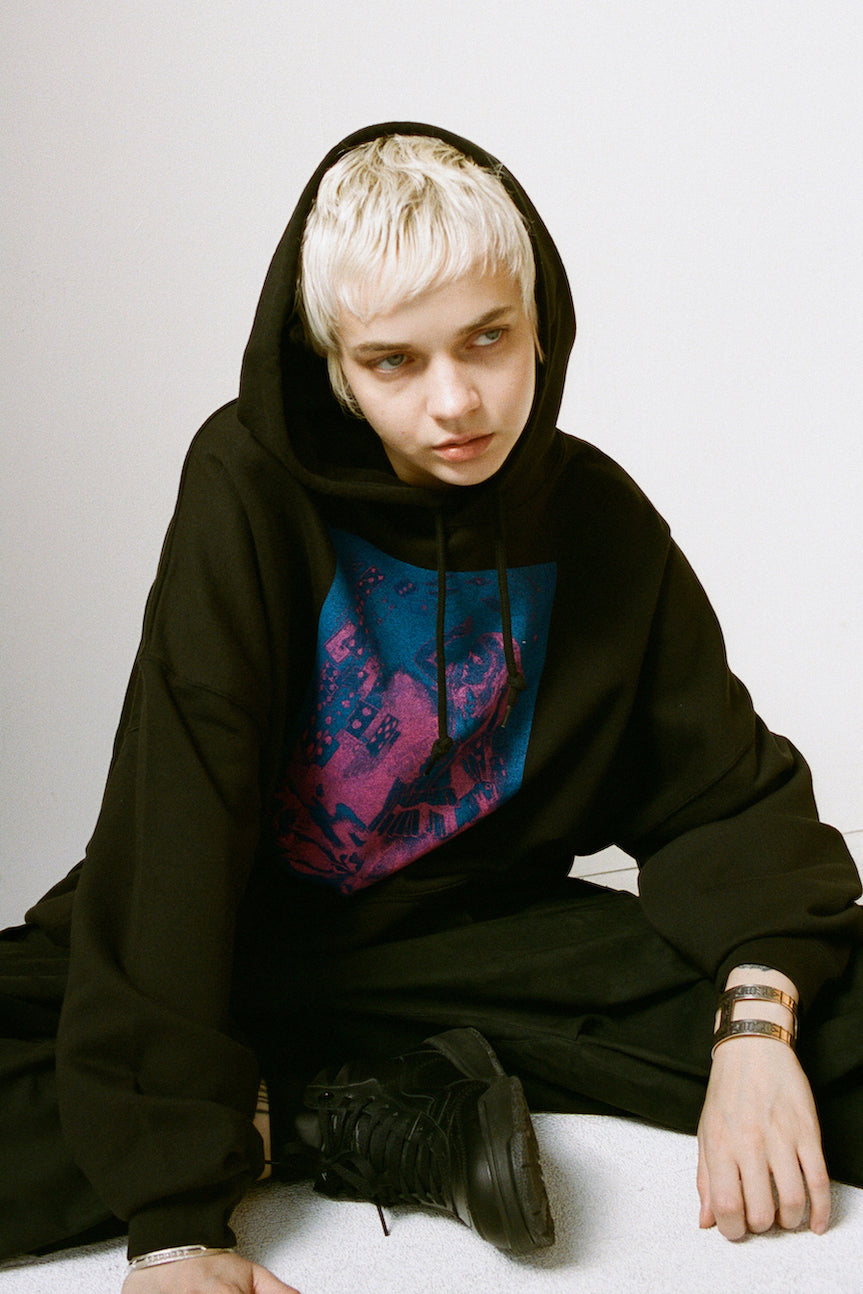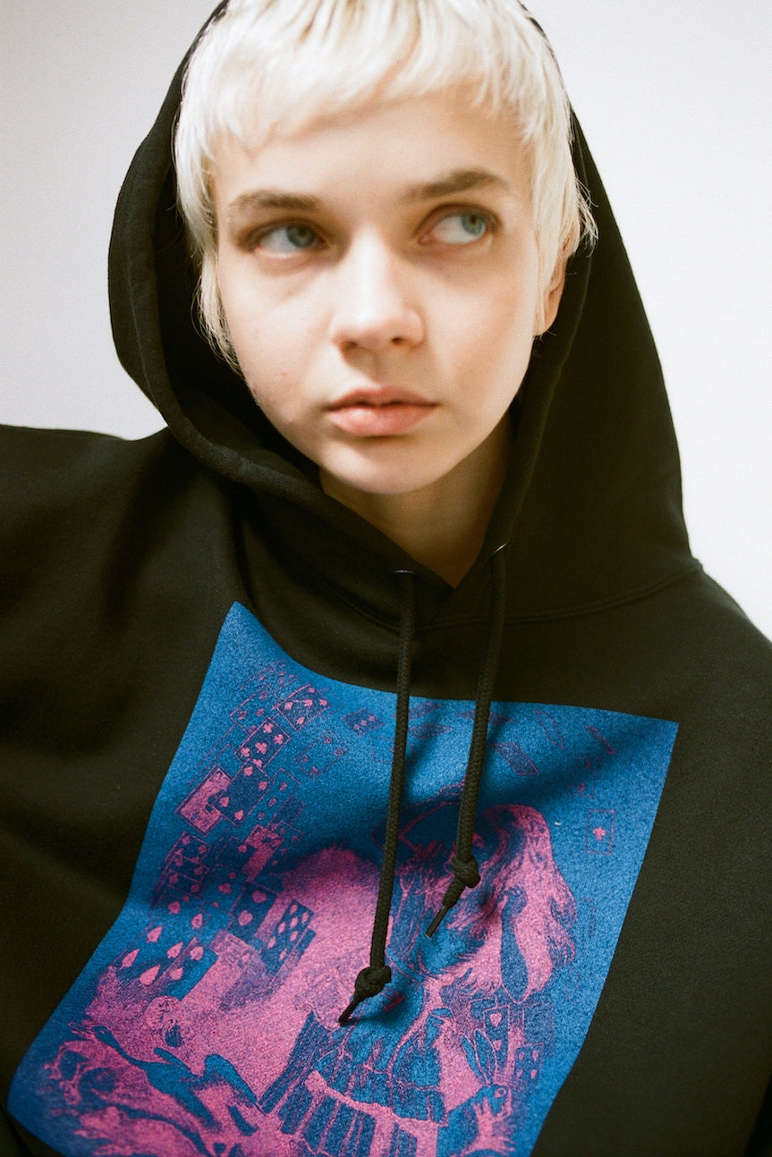 ESSAY OVERSIZED PRINT HOODIE - SHOWER OF CARDS
