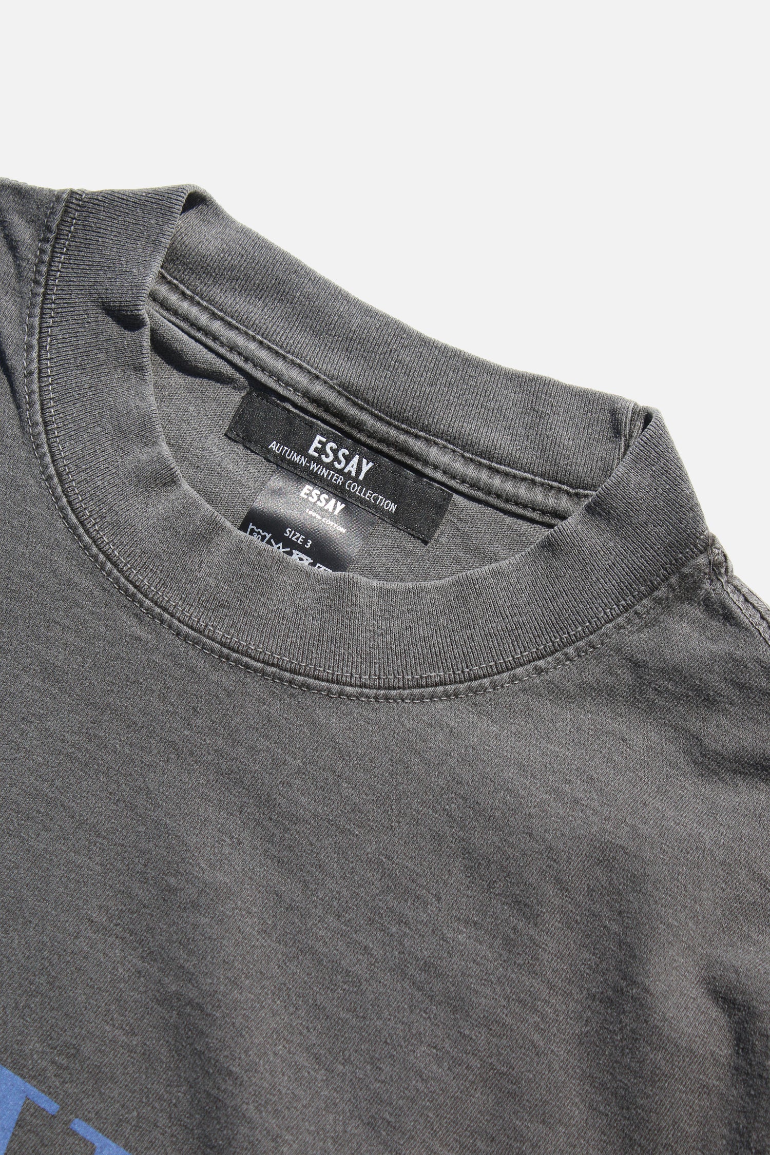 ESSAYの新型ピグメントドロップショルダーロングスリーブTシャツ。セミオーバーサイズ。7.5ozヘビーウェイト天竺 / ピグメント(顔料)染料を使用した製品染めにより 洗い重ねる度に退色し雰囲気の増す生地感が特徴。アラスカを目指す青年のノンフィクション作品、2007年アメリカ映画『INTO THE WILD』ショーンペン監督と1966年「荒野へ」ジョン・クラカワー著からインスパイアされたグラフィックデザイン。フロントプリントのHOWL(ハウル)は遠吠えの意味でアラスカのオ オカミがモチーフで、バックプリントにはALASKAの文字。