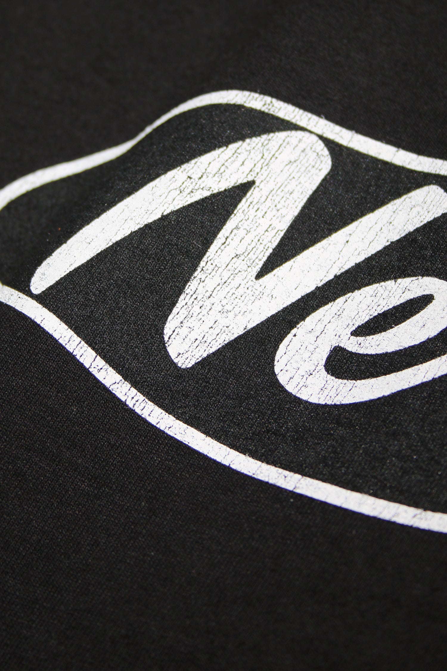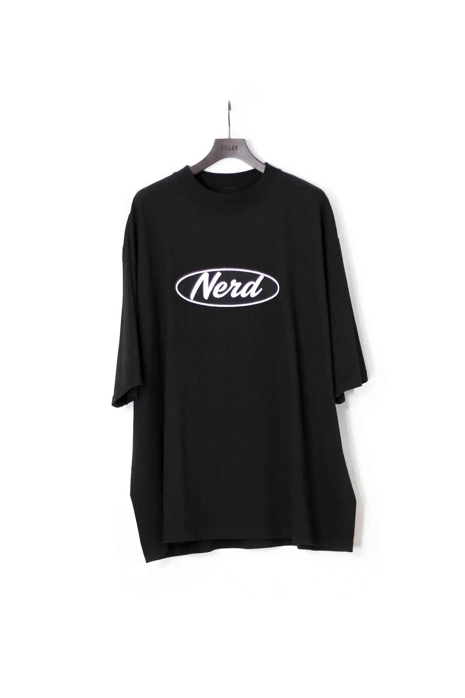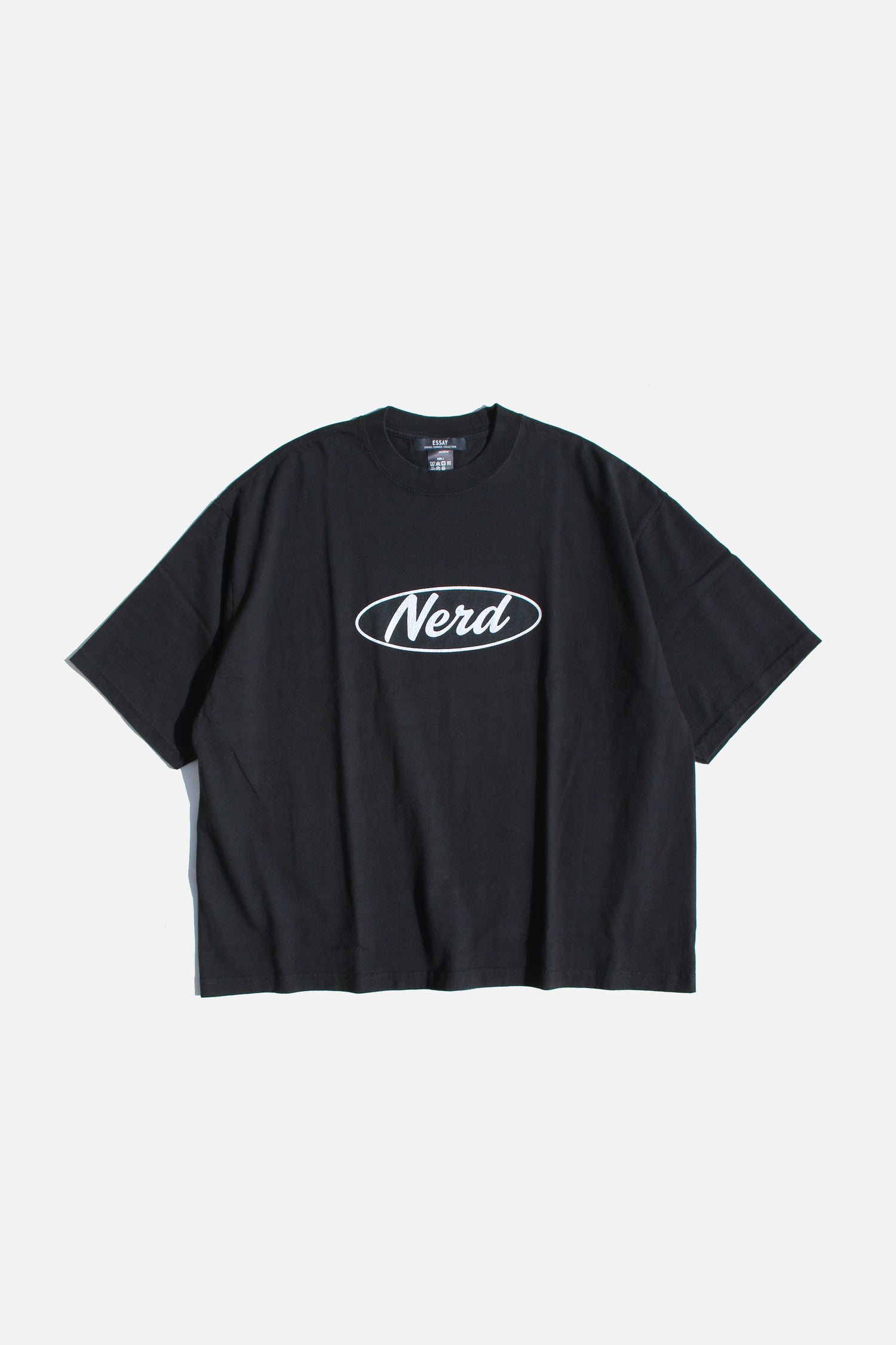 ESSAYの新型オーバーサイズピグメントドロップショルダーTシャツ。7.5ozヘビーウェイト天竺 / ピグメント(顔料)染料を使用した製品染めにより洗い重ねる度に退色し雰囲気の増す生地感が特徴。ウォッシュ&タンブラーの加工を施しドライな質感を表現。アメリカ大手自動車メーカー "FORD" の企業ロゴがソース元となり、90年代にストリートファッションで多用されたFORDのパロディーロゴをインスピレーションにモダンなグラフィックへと昇華。 "NERD"とは “オタク”という意。スクリーンプリントの風合いは個体によって若干の変化があります。