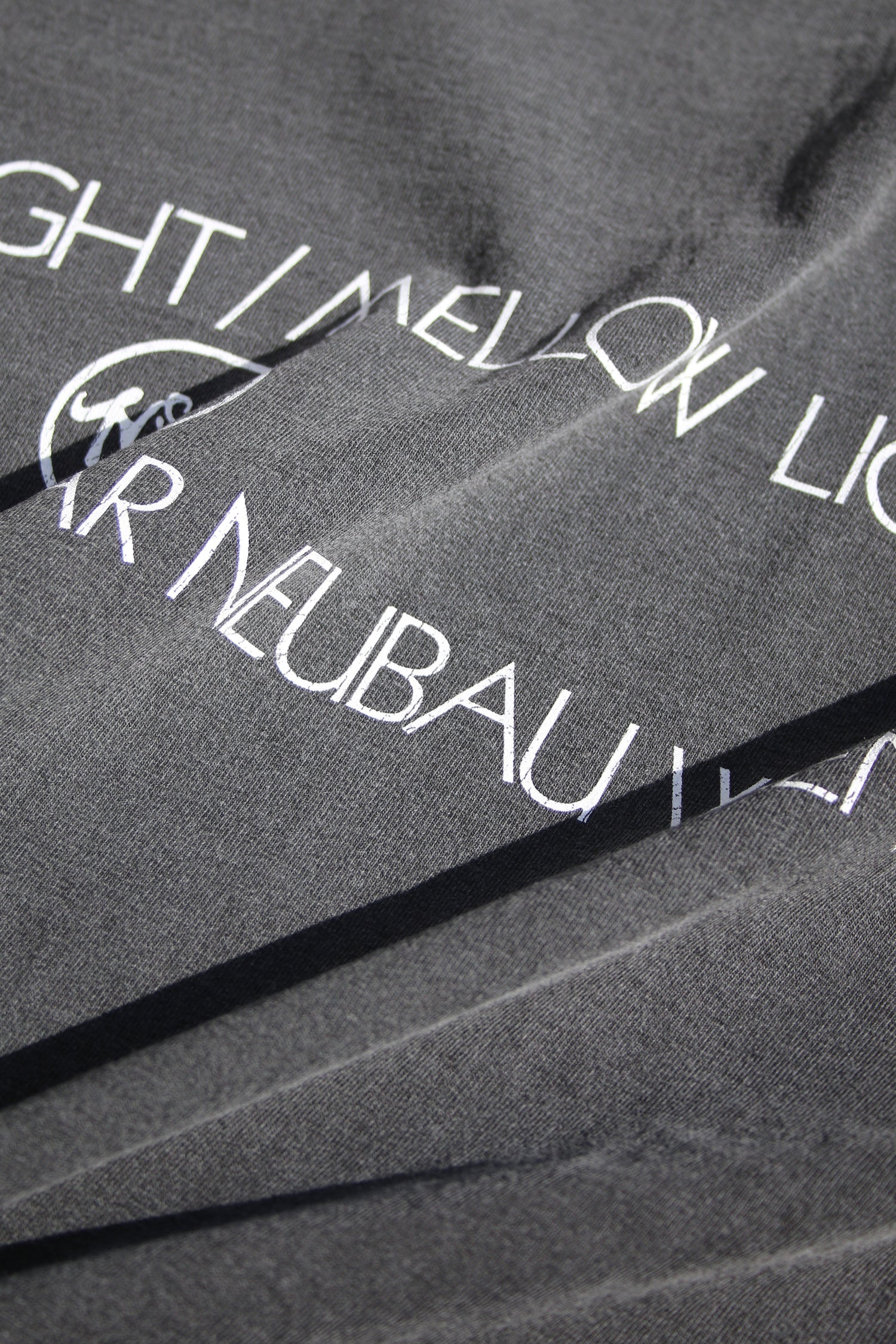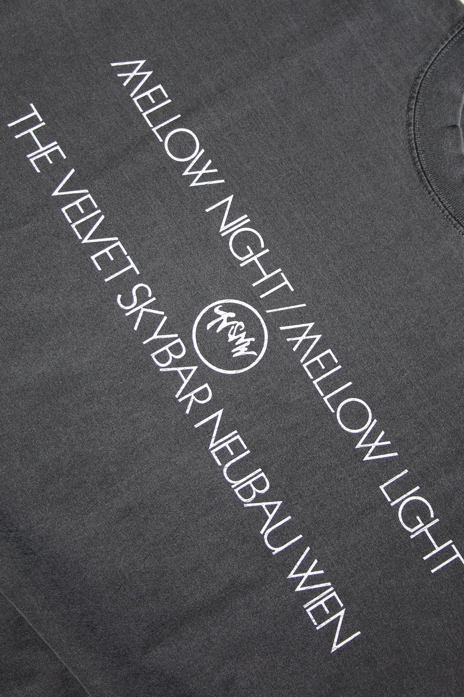 DETAILSOversized pigment t-shirt has alphabet printing inspired by White Light/White Heat of the Velvet Underground and a vintage souvenir T-shirt, with the name of a bar that existed in Vienna, Austria. Made using heavyweight pigment cotton. Unisex.