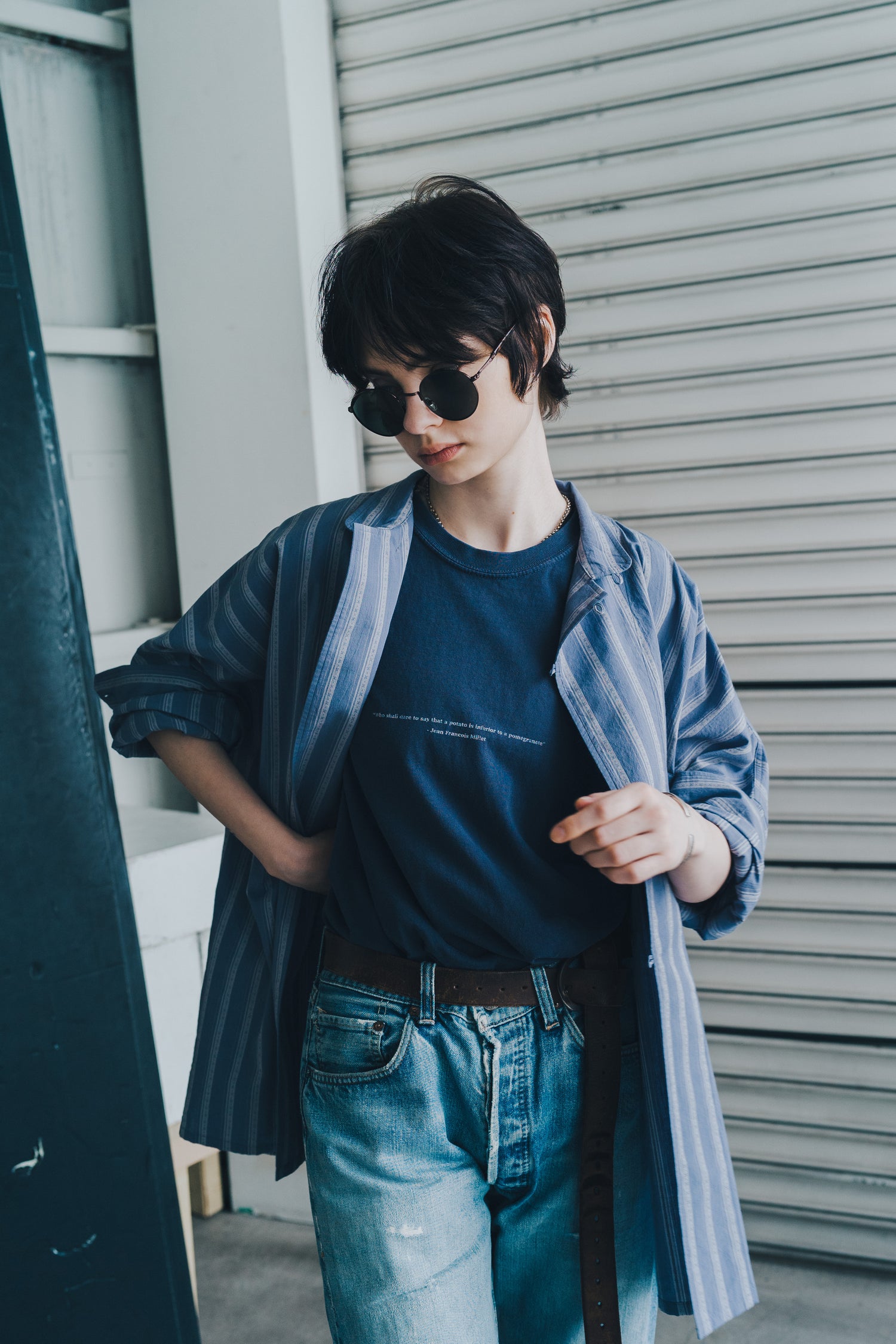 DETAILSOversized pigment t-shirt has Jean-François Millet’s words screenprinted in contrasting white. Made from dry-fit pigment cotton, for comfort and neoclassical simplicty. Reframe, add color, head to the beach.