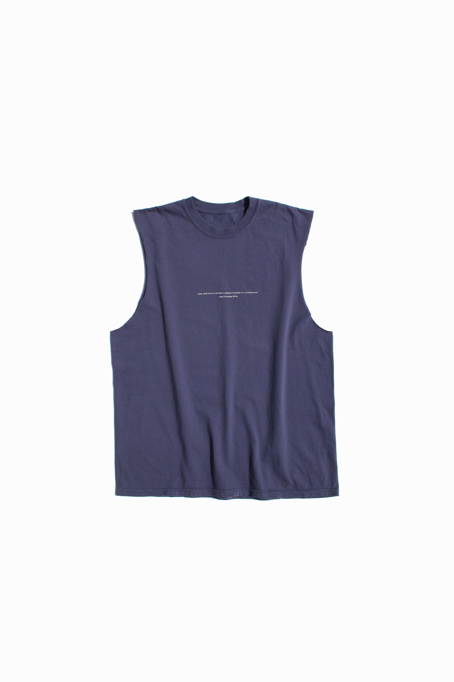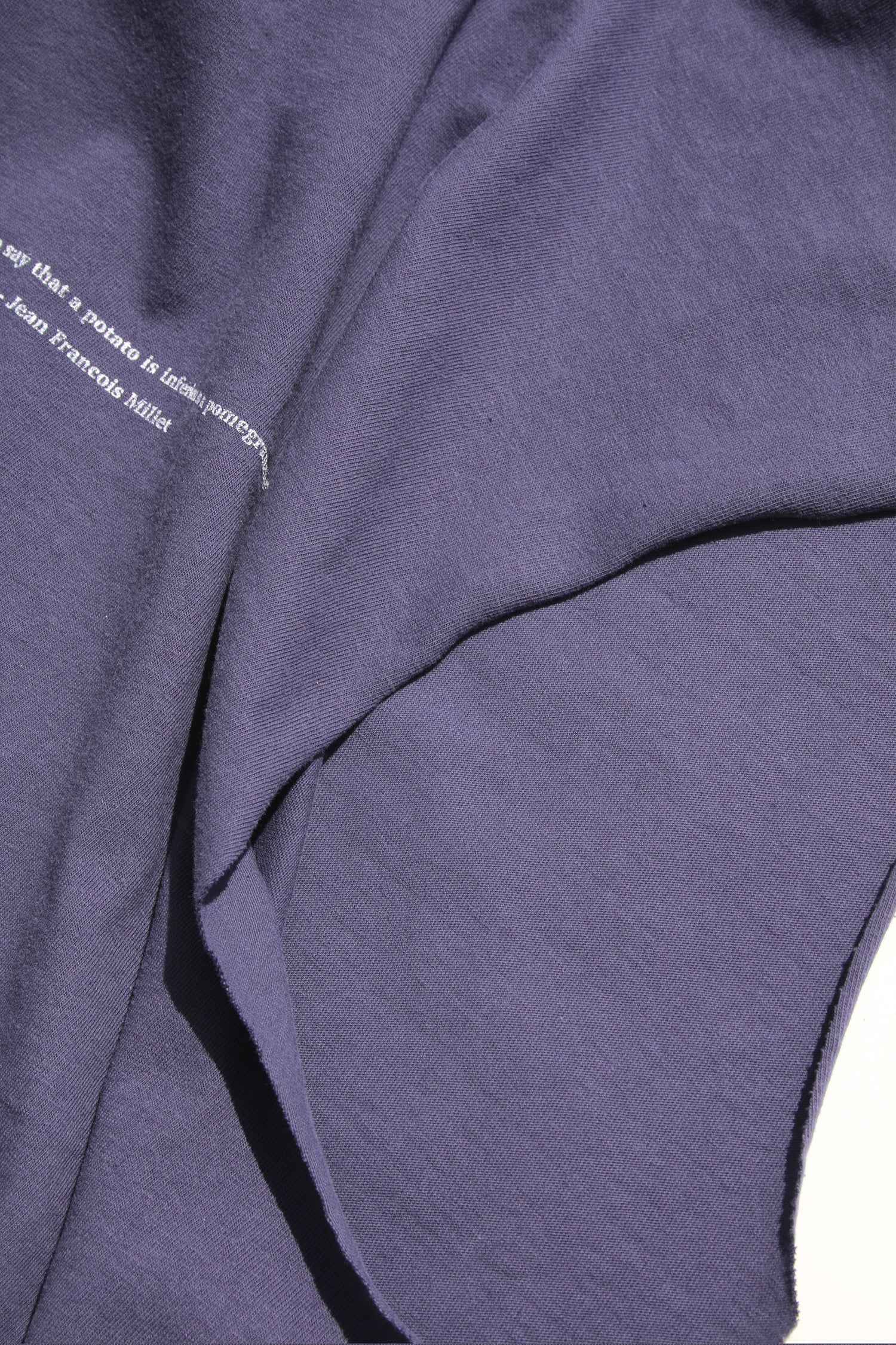 Oversized pigment t-shirt has Jean-François Millet’s words screenprinted in contrasting white. Made from dry-fit pigment cotton, for comfort and neoclassical simplicty. Reframe, add color, head to the beach.