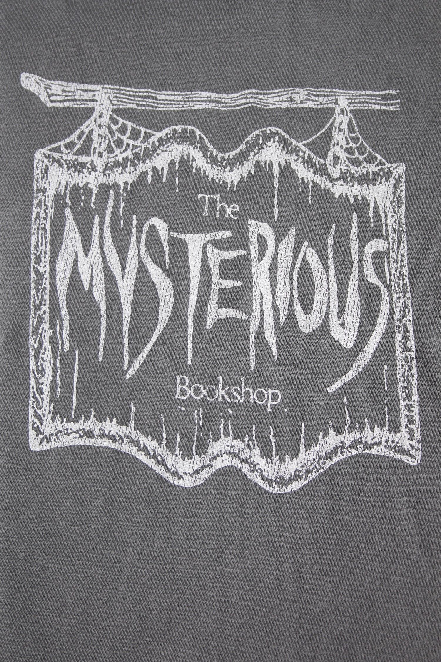 The Bookshop ‘MYSTERIOUS’ graphic print front, inspired by a mysterious bookshop in New York. Oversize, Unisex.