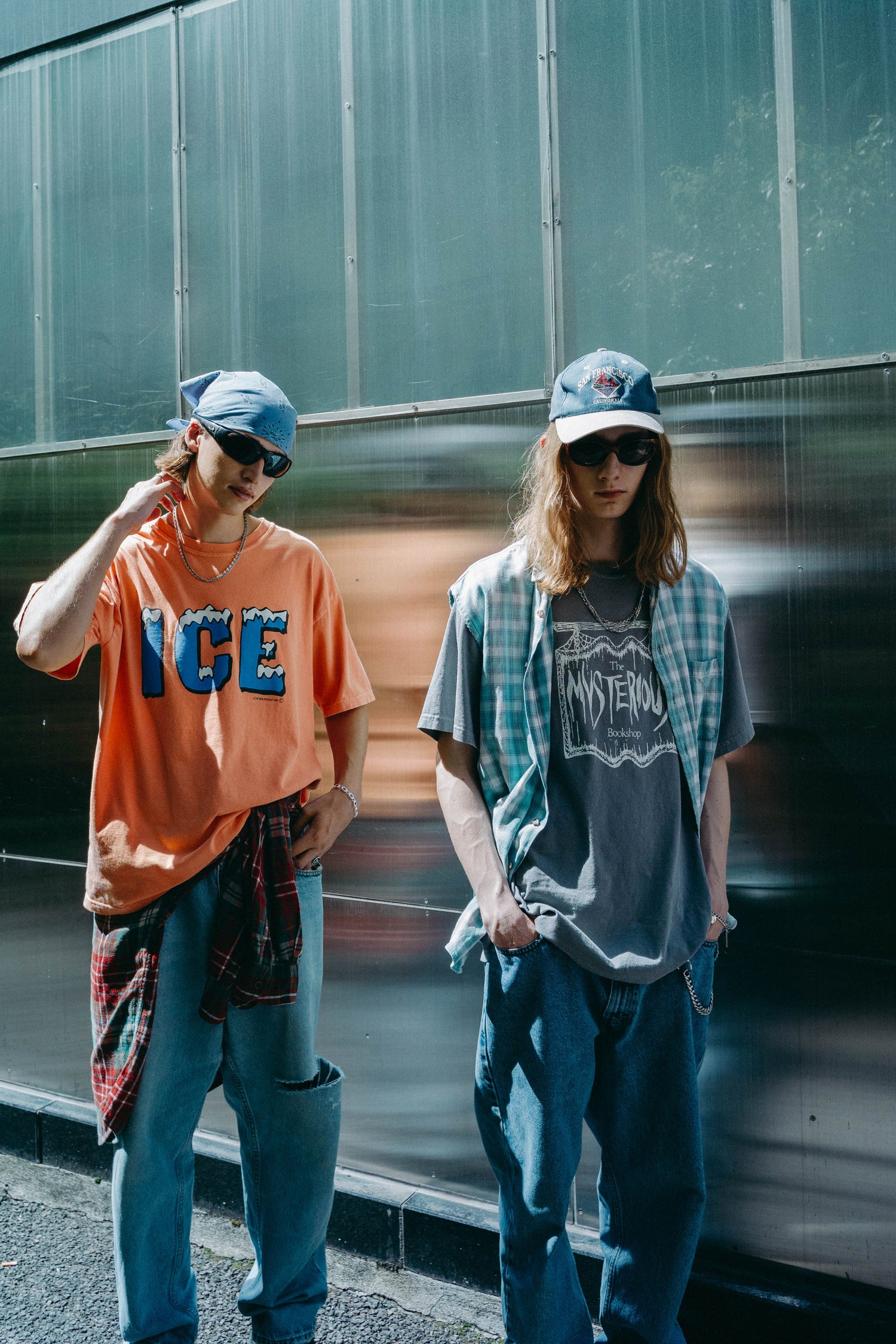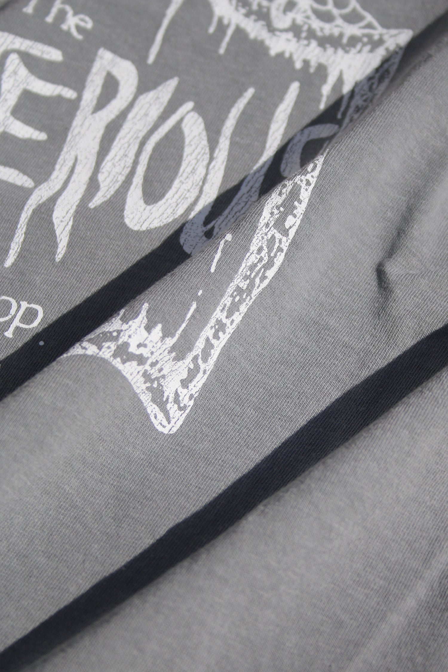 ニューヨークに存在したブックストアのスーベニアTシャツがソース元となり。ホラー調なグラフィックと本屋というギャップが好対照なアメリカらしいデザイン。ひび割れ加工を施し、よりリアルな表情を演出。