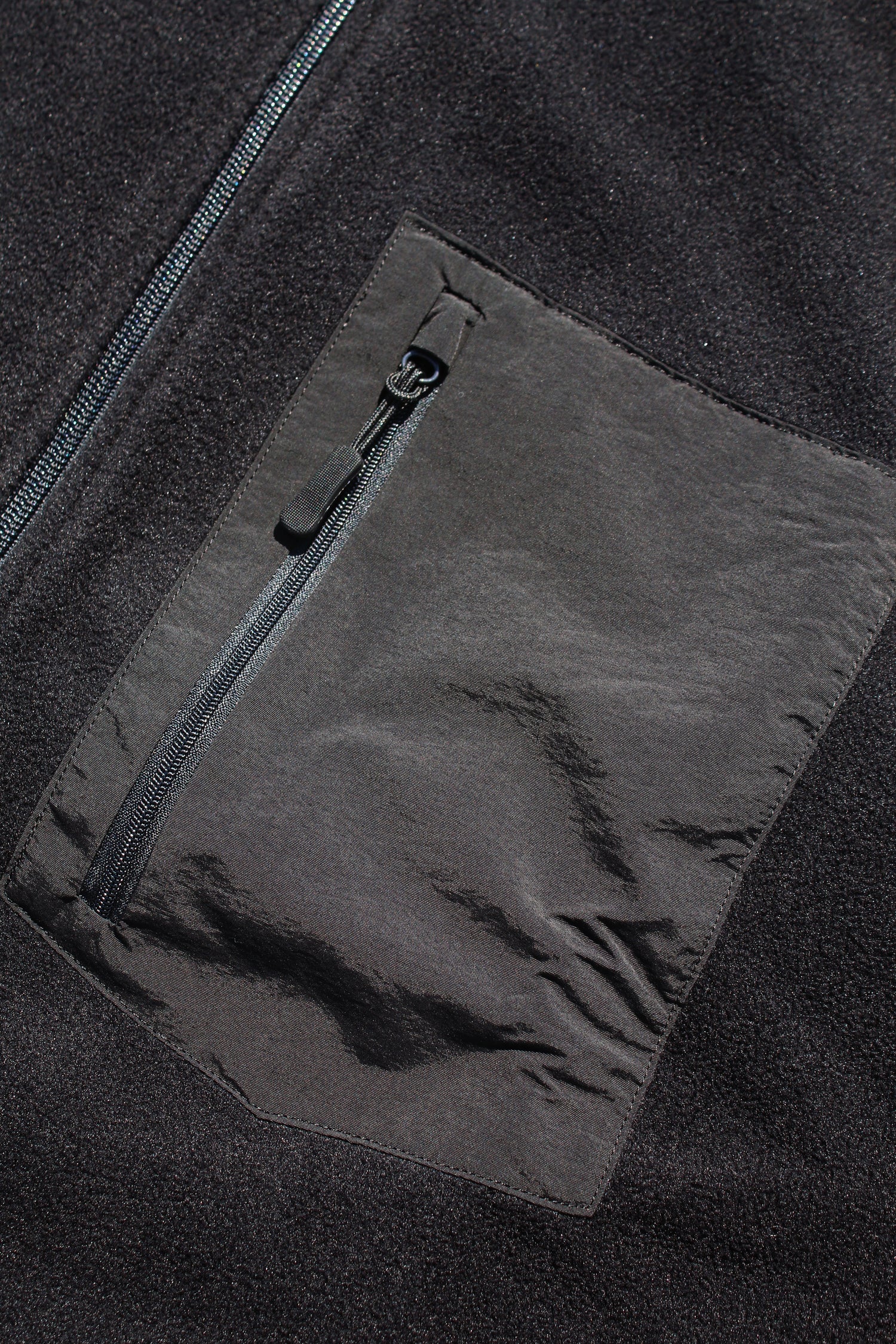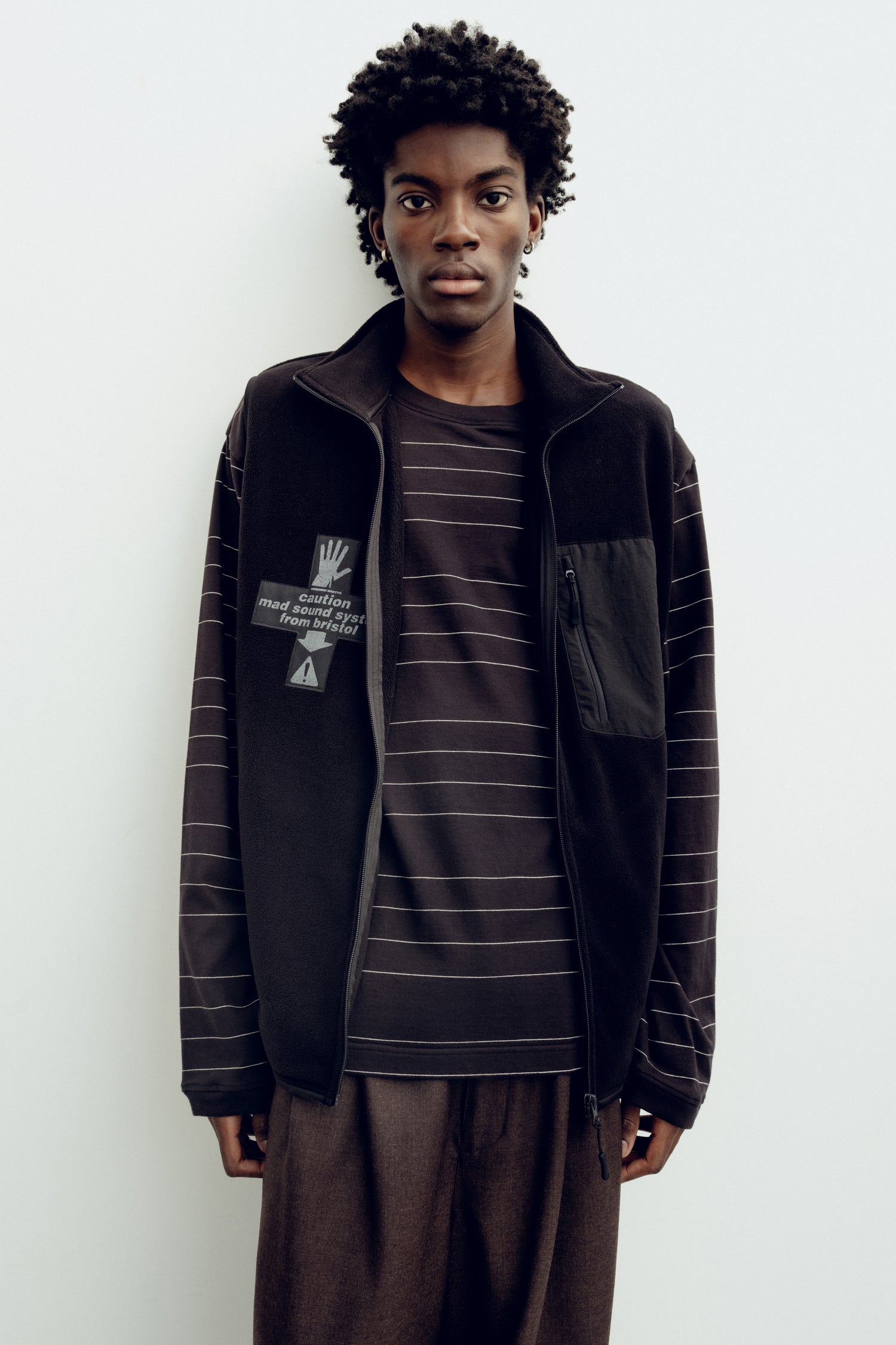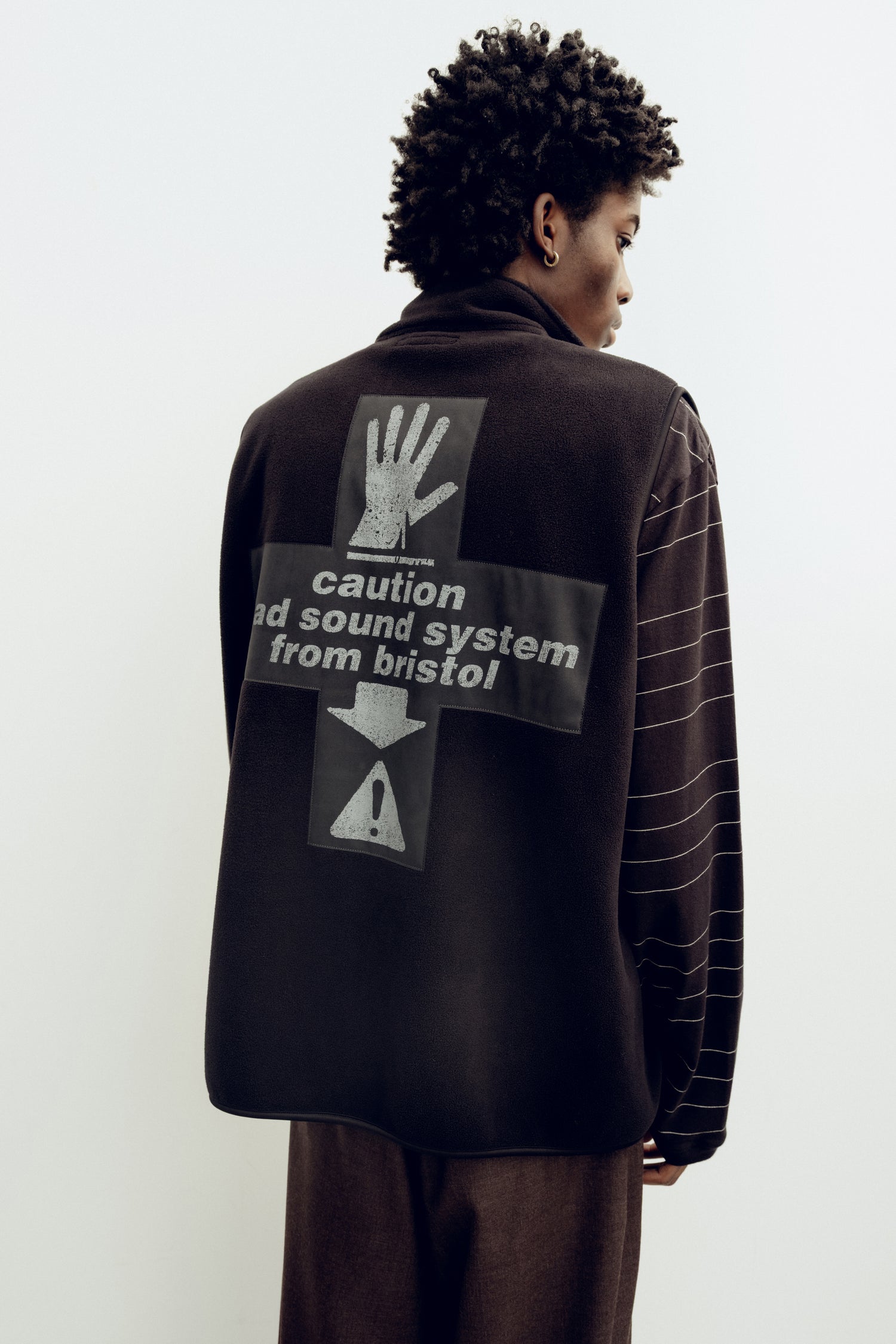 Relaxed-fit vest, with zip fastening, chest and side pockets. Crafted by using lightweight polyester micro fleece. Influenced by the 1990s Bristol scene, where music and street art fused into bold forms.