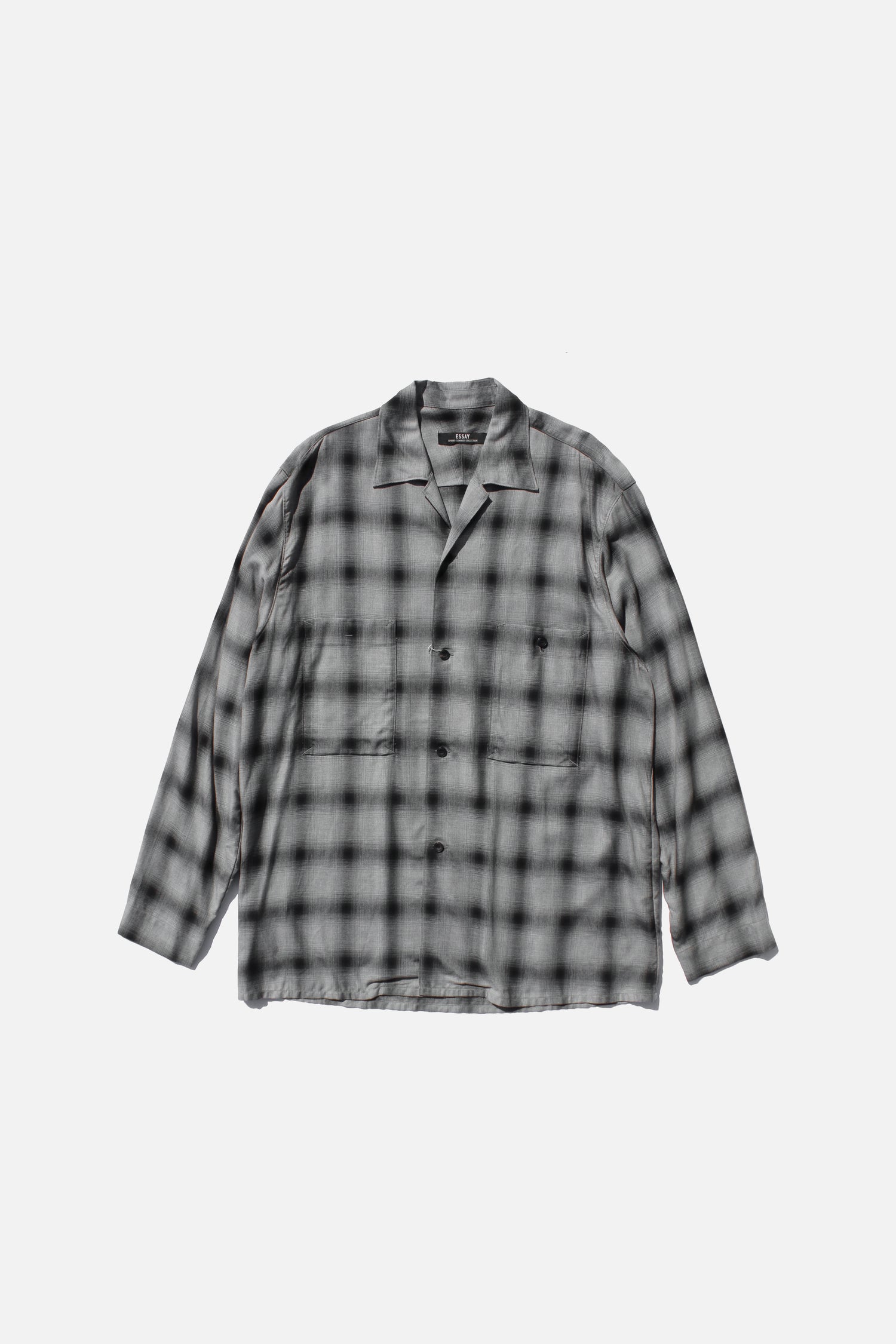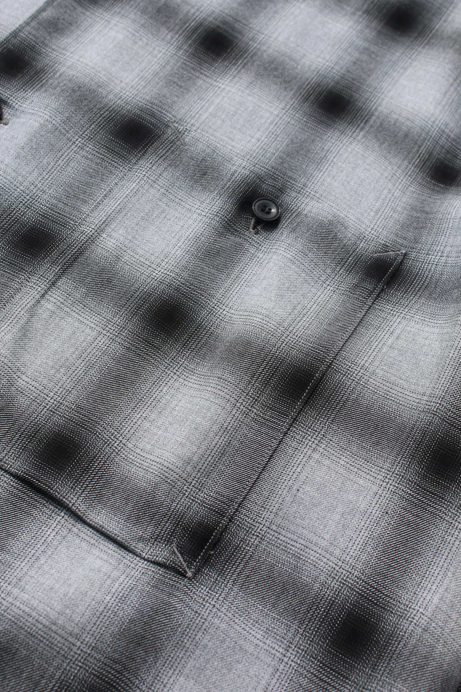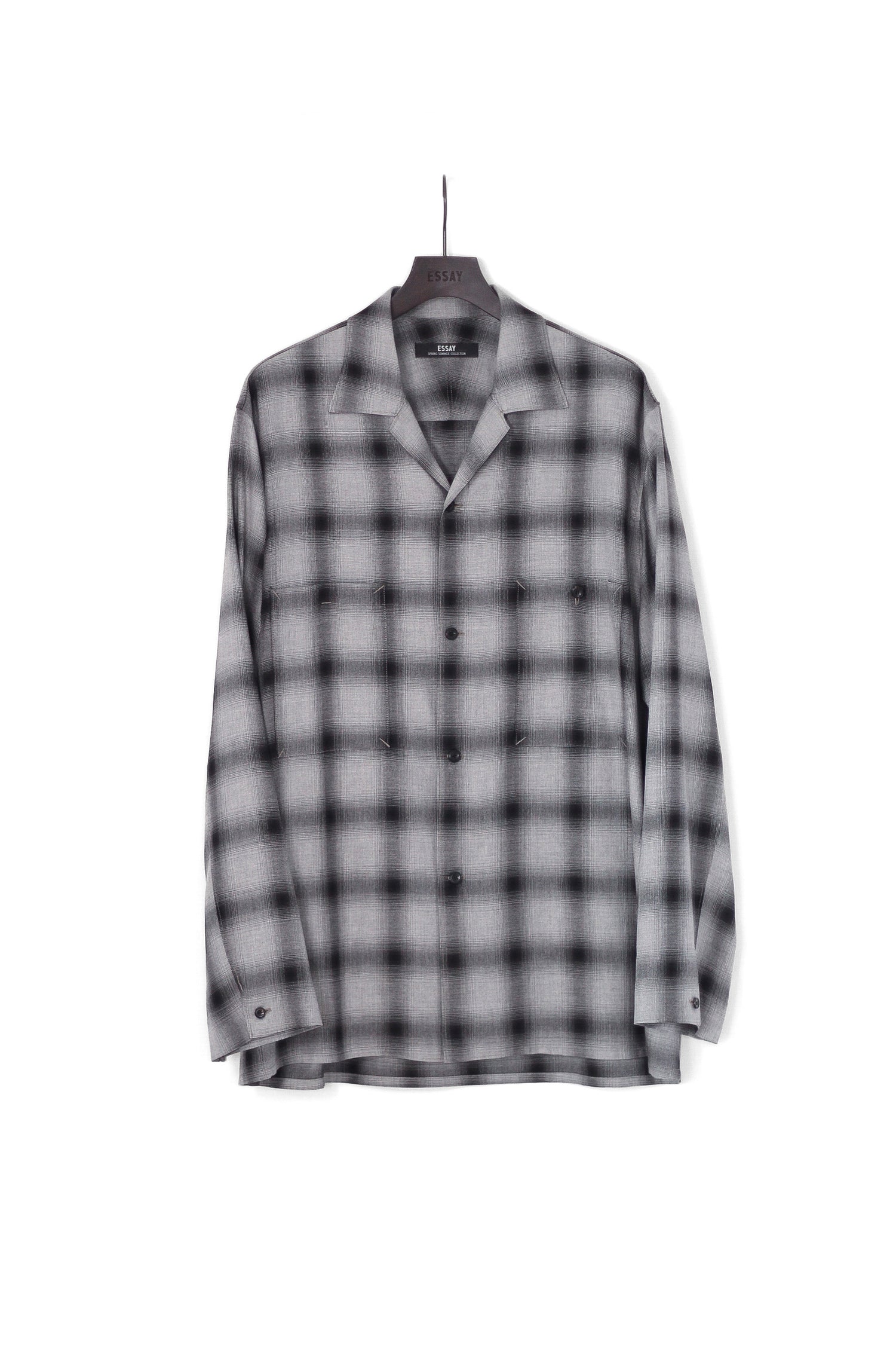 ESSAY SHADOW CHECK OPEN COLLAR SHIRT - GREY CHECK