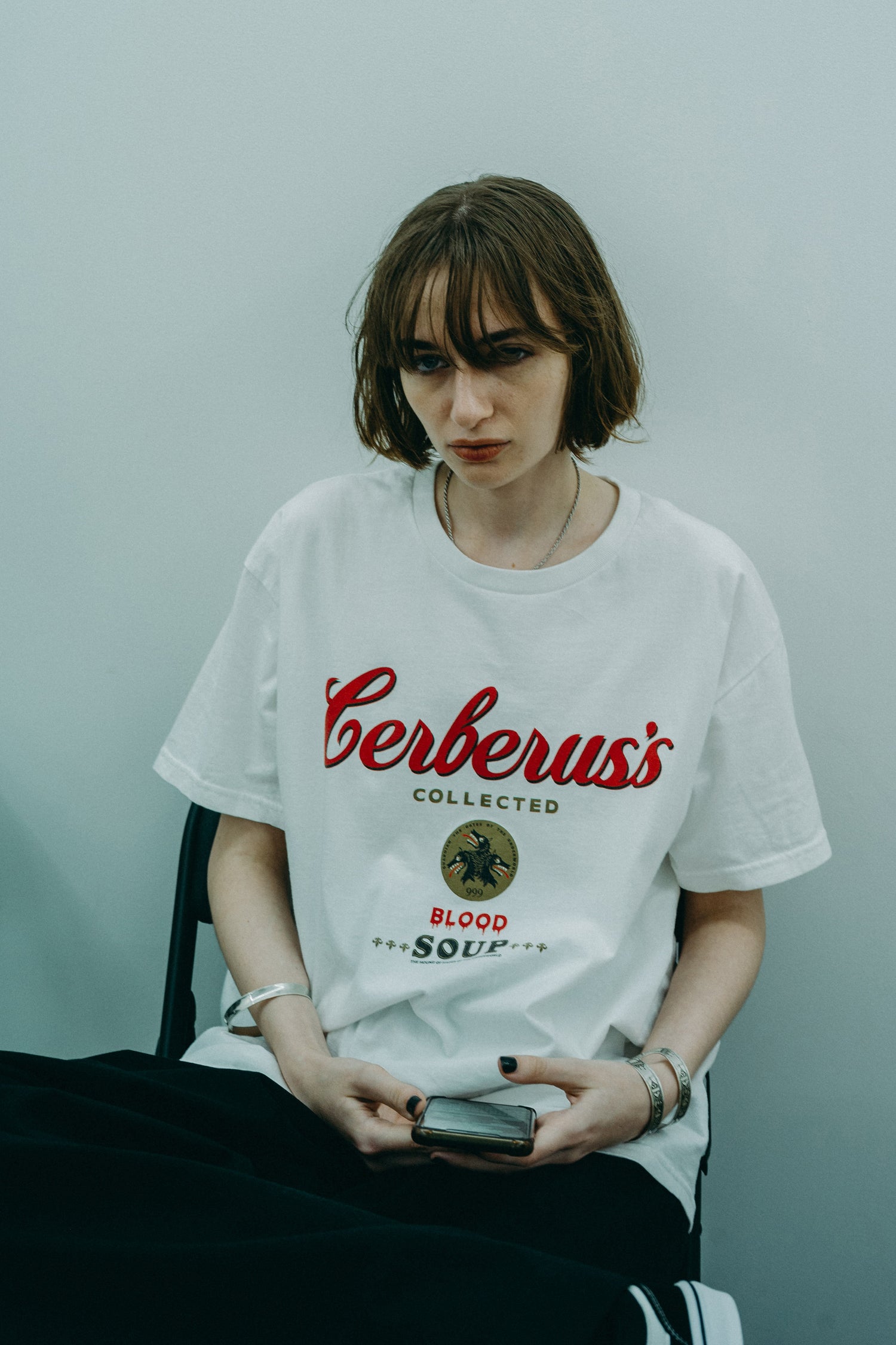 DETAILSOversized white tee with seasonal printing “Cerberus's COLLECTED BLOOD SOUP”. Incredibly soft cotton, opposed tradition, unisex.