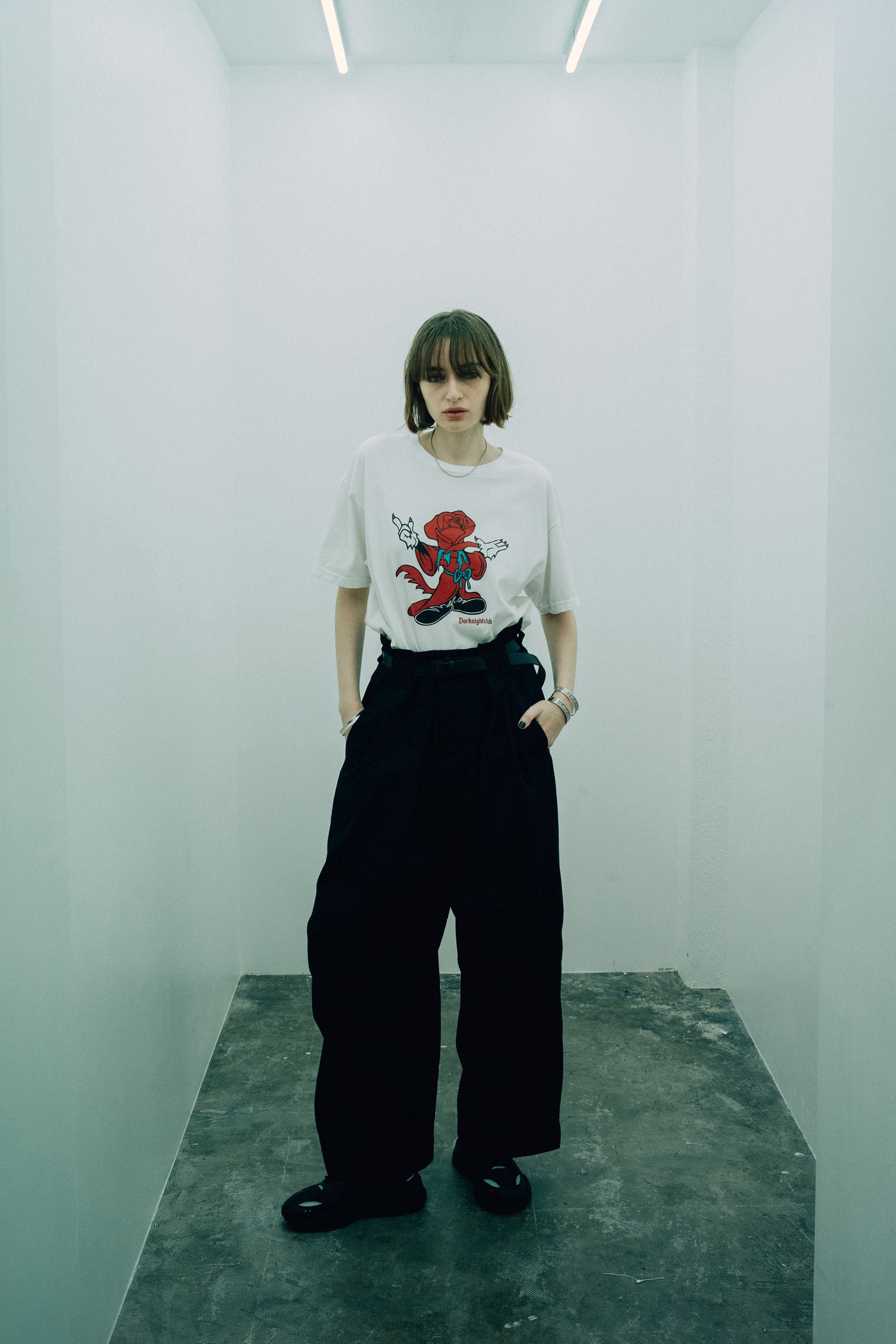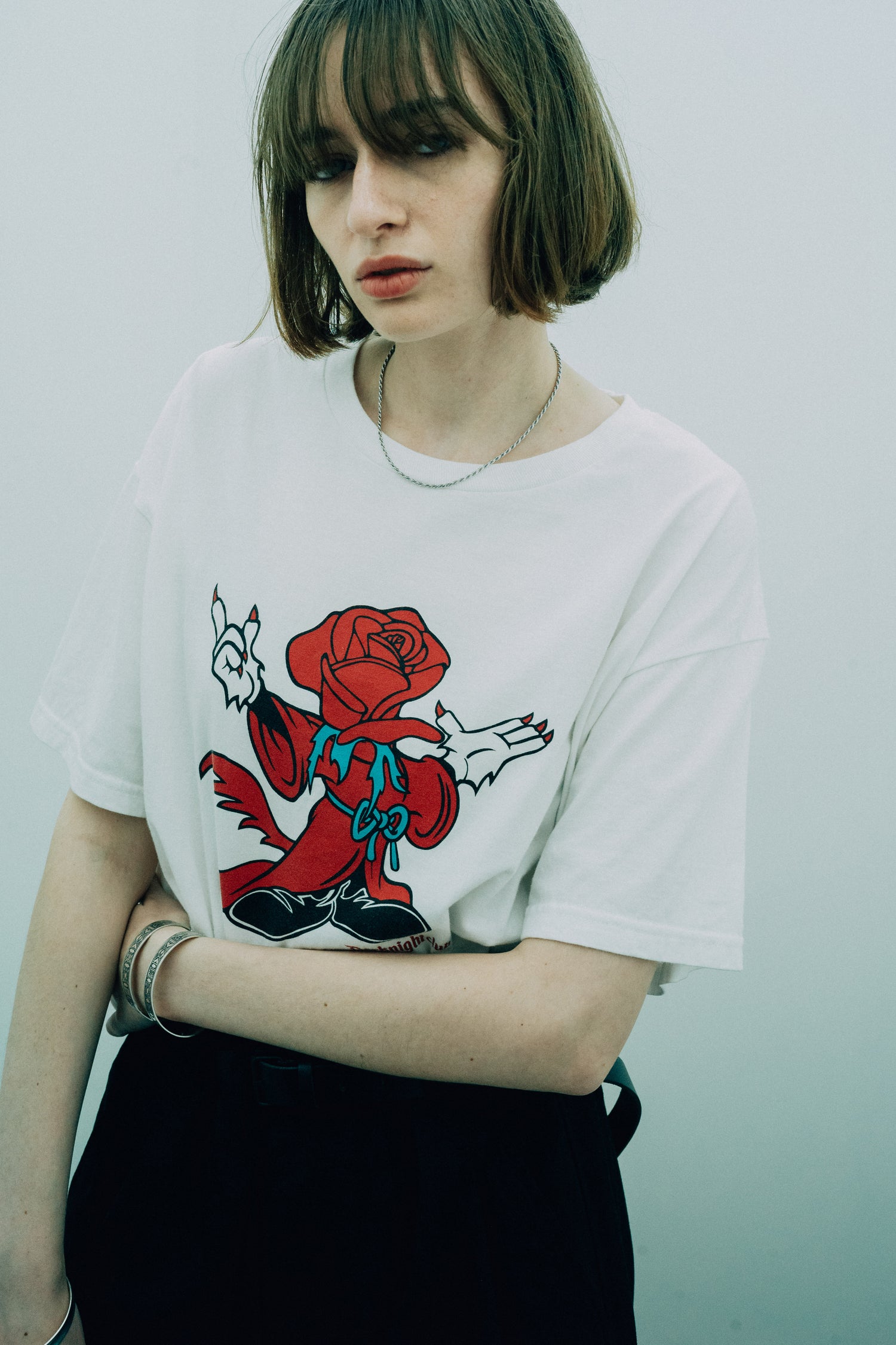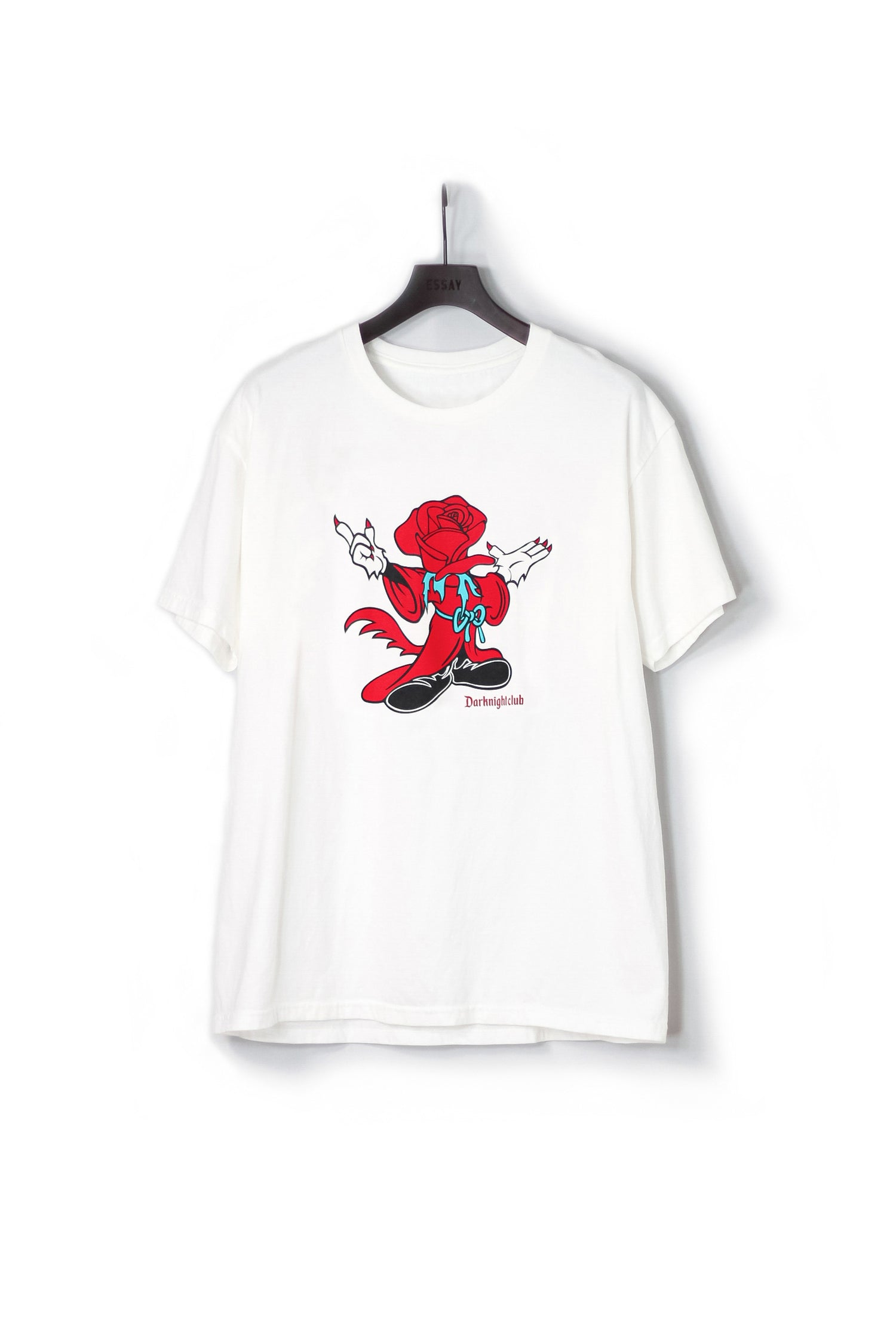 ESSAYのオーバーサイズホワイトプリントTシャツ。リングスパン6.0oz天竺 / リング糸(リングスパン)を使用することにより、洗い重ねる度に肌触り良い滑らかな風合いへと変化することが特徴。ウォッシュ&タンブラーの加工を施しドライな質感を表現。フロントに施された“Darknightclub (ダークナイトクラブ)”プリントが目を引く一着。夜想曲 (Nocturne) がインスピレーション。スクリーンプリントの風合いは個体によって若干の変化があります。