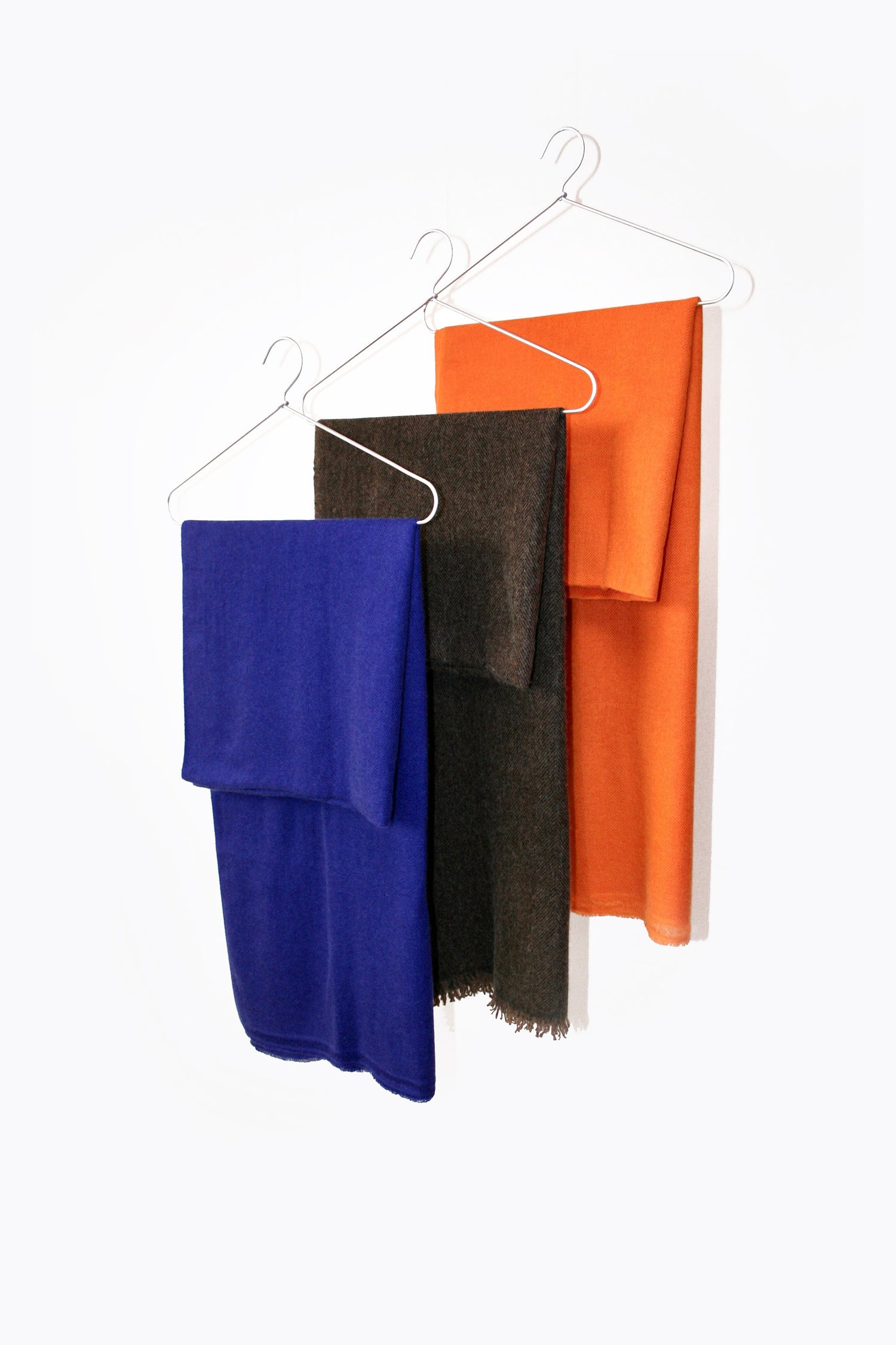 Oversized herringbone scarf composed of breathable wool and cashmere blend. Lightweight and soft to the touch, can be worn as a headscarf, a wrap, or even used as a long blanket for ideal warmth and wrapping. We bring three colors up because they will make your face and outfits rather different and romantic.