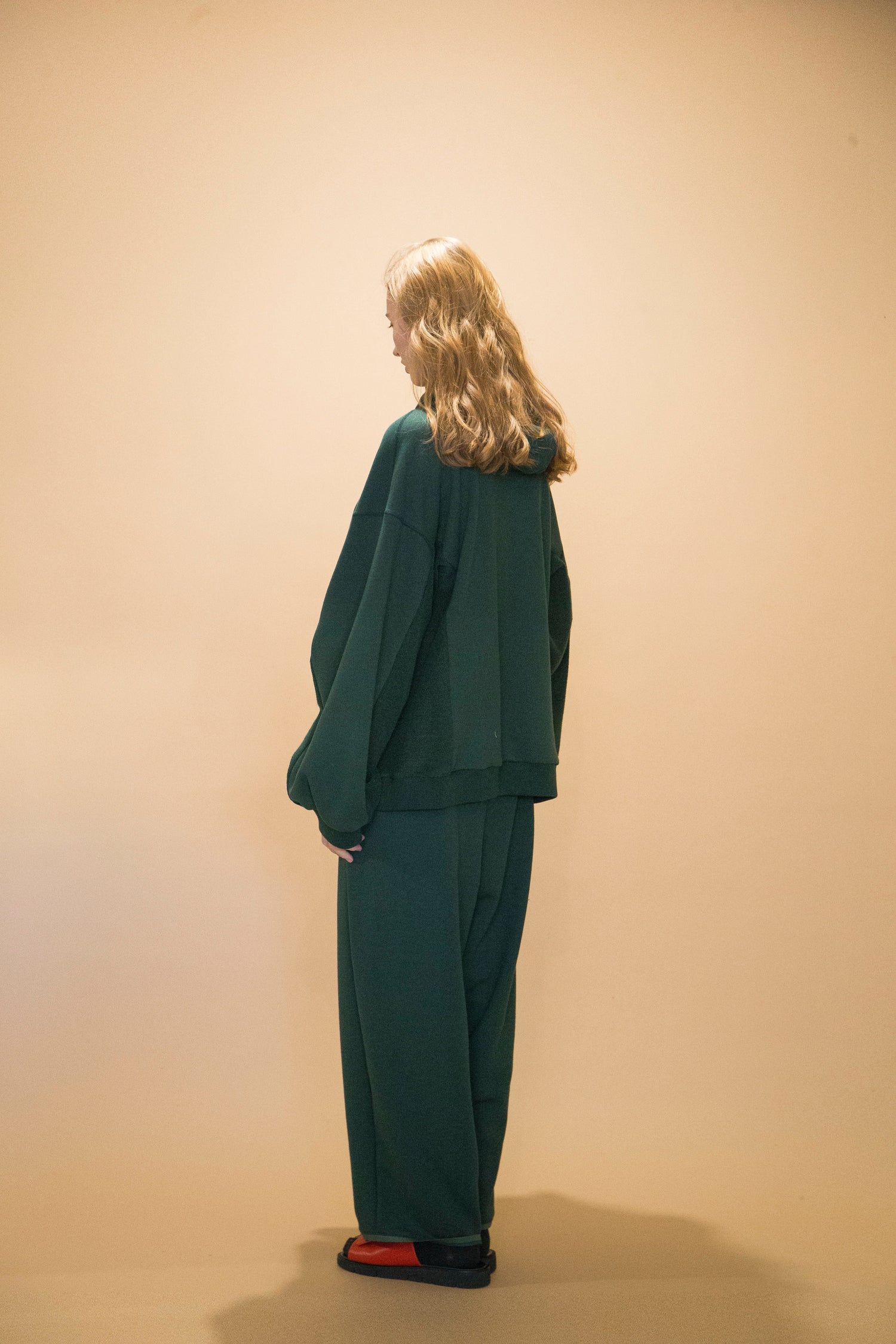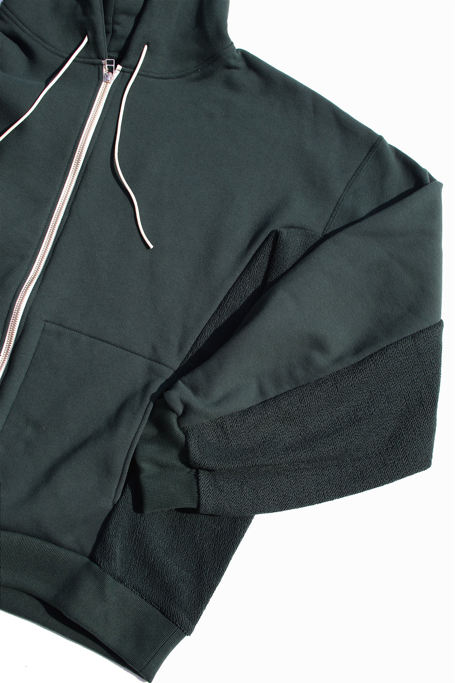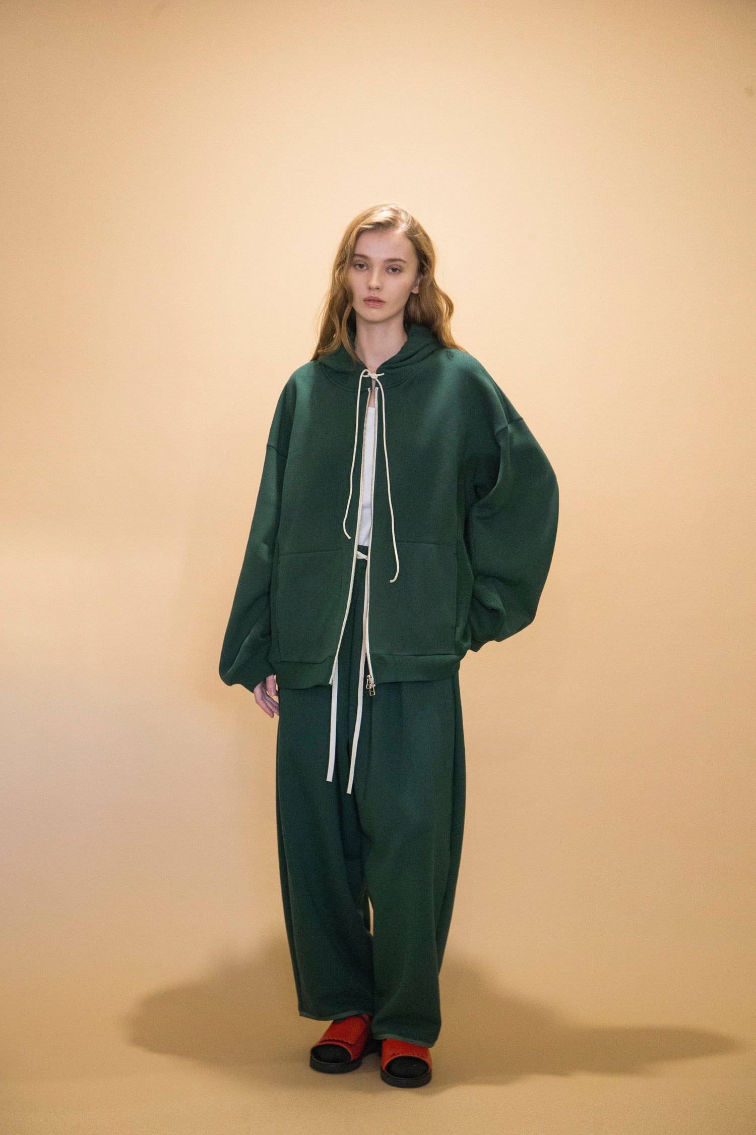 DETAILSRelaxed-fitting two-way-zip hoodie from an organic cotton loopback. Features Osaka green, dropped shoulder, oversized hood with a longer drawstring in white and two hand-pockets.