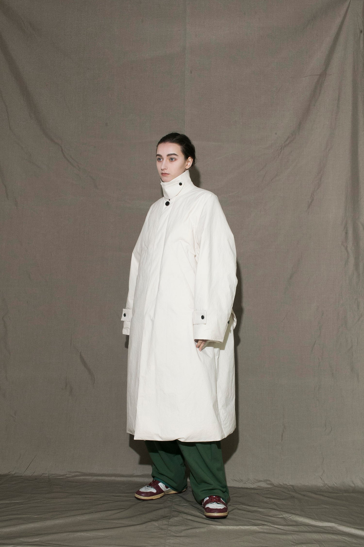 Custom warmest Kawada down feather filled long coat is made of technical soft cotton and which provide breathability and functionality. The esteemed Senshu area (in Osaka) for organic and durable cotton talent fit well to the schematics of MBL. It features a collar adjustable tab helping to keep wind passing through. This down coat should not be looked at but wore even with a mild cold.