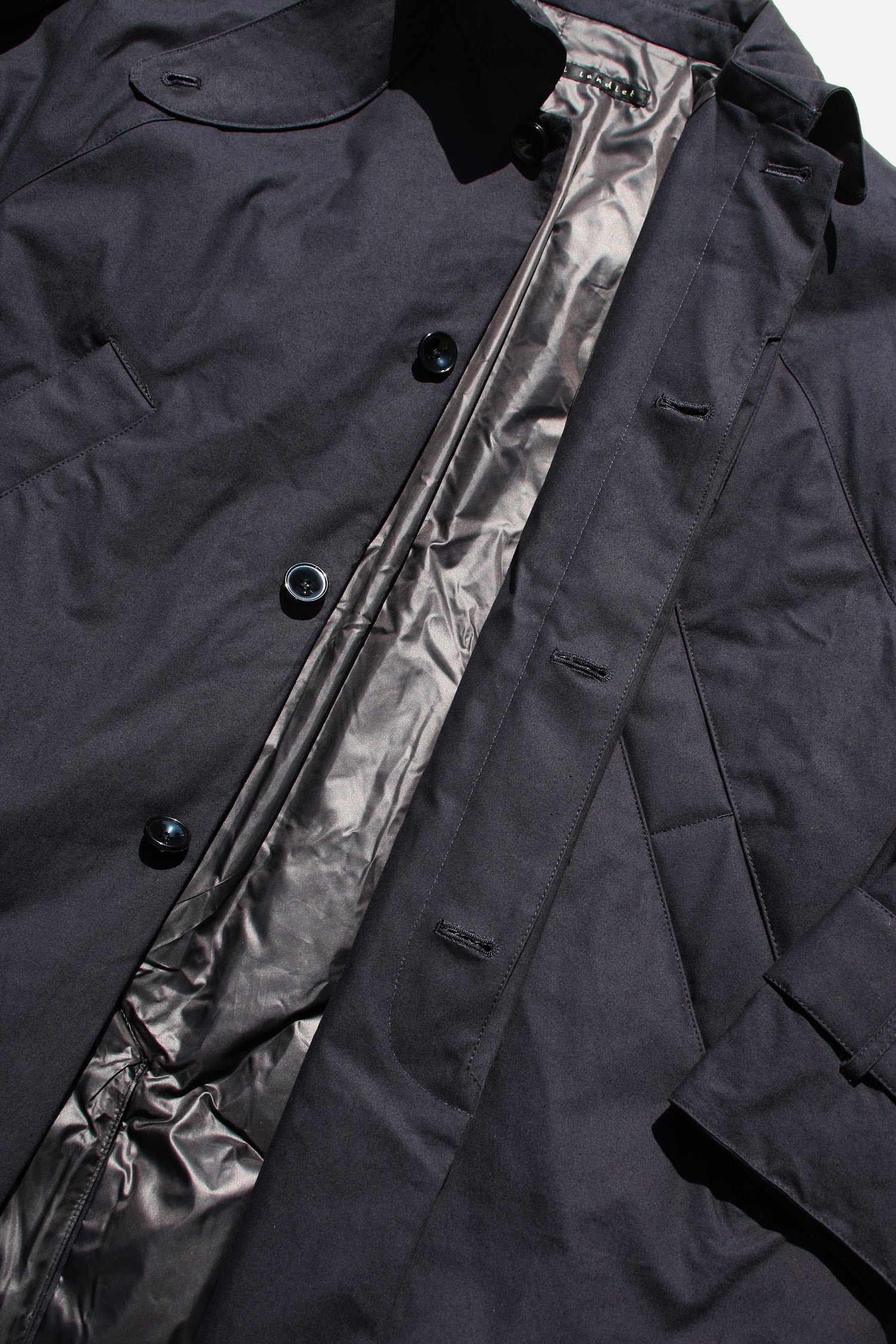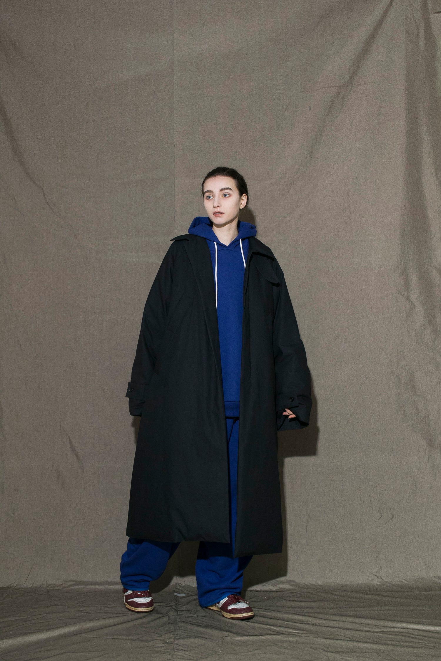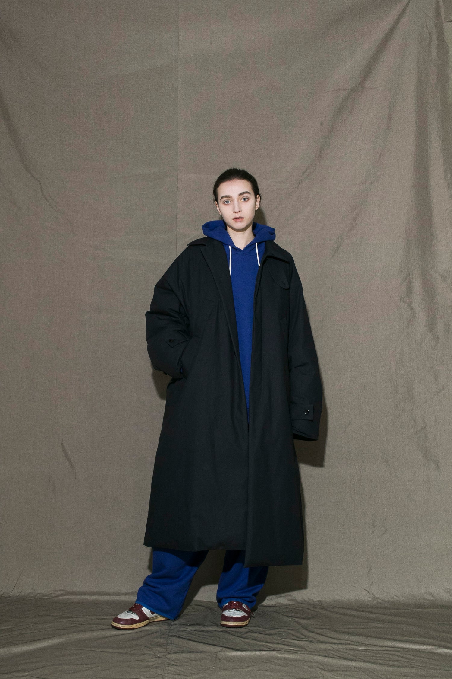 Custom warmest Kawada down feather filled long coat is made of technical soft cotton and which provide breathability and functionality. The esteemed Senshu area (in Osaka) for organic and durable cotton talent fit well to the schematics of MBL. It features a collar adjustable tab helping to keep wind passing through. This down coat should not be looked at but wore even with a mild cold.