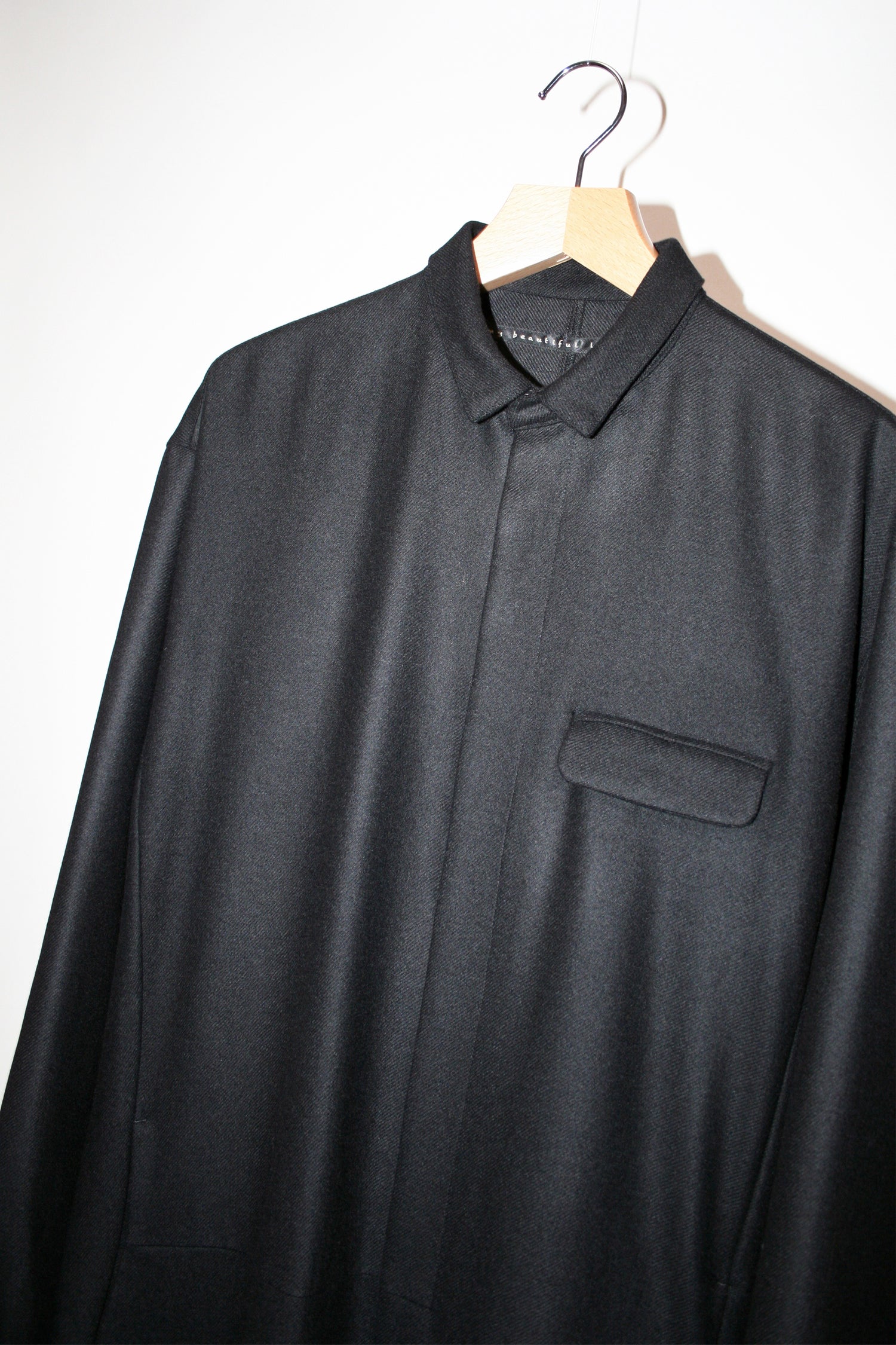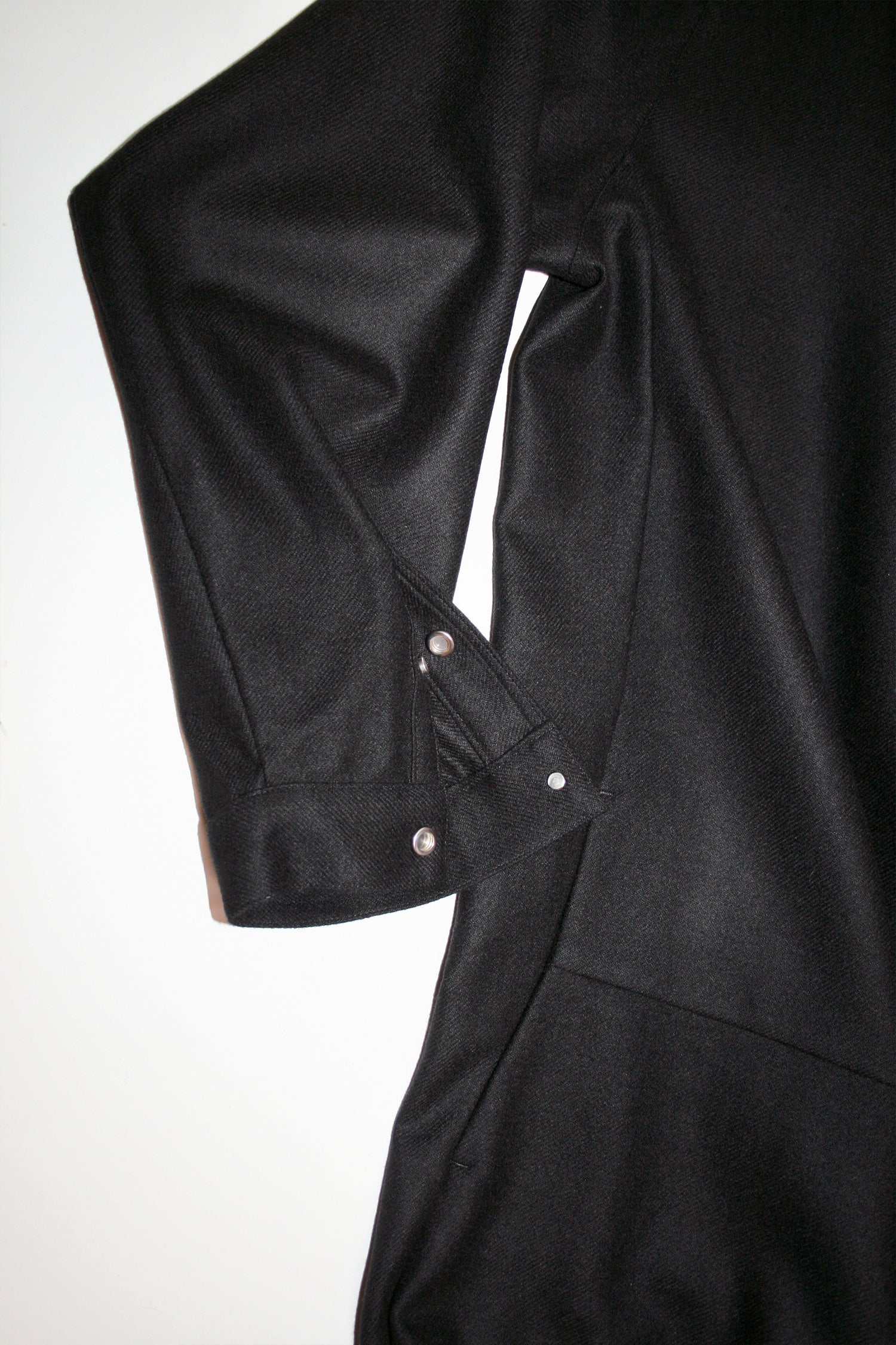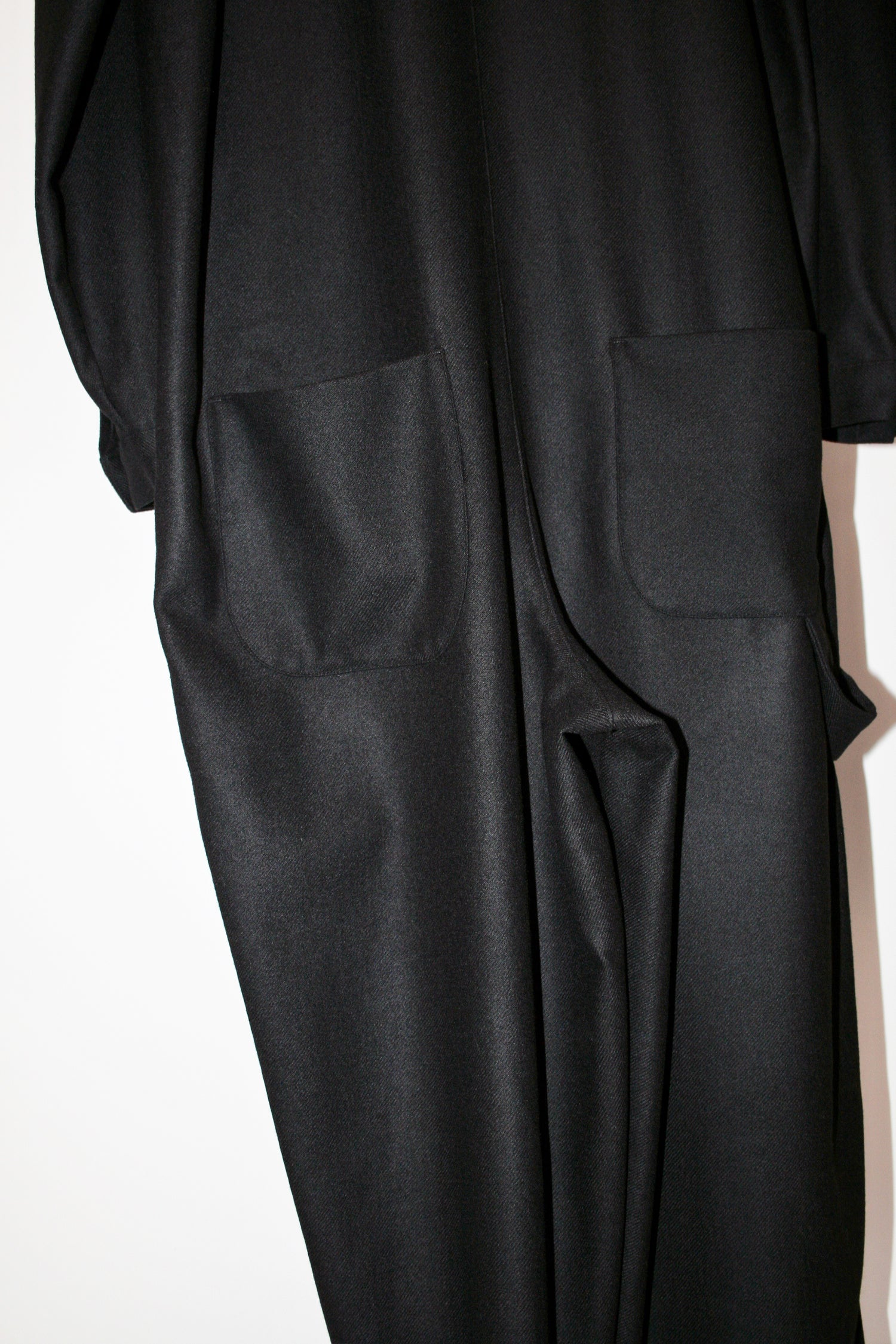 永久定番のジャンプスーツ。従来のフラノの素材にはない縮絨工程を経て、ソフトなフラノに仕上げた生地。
