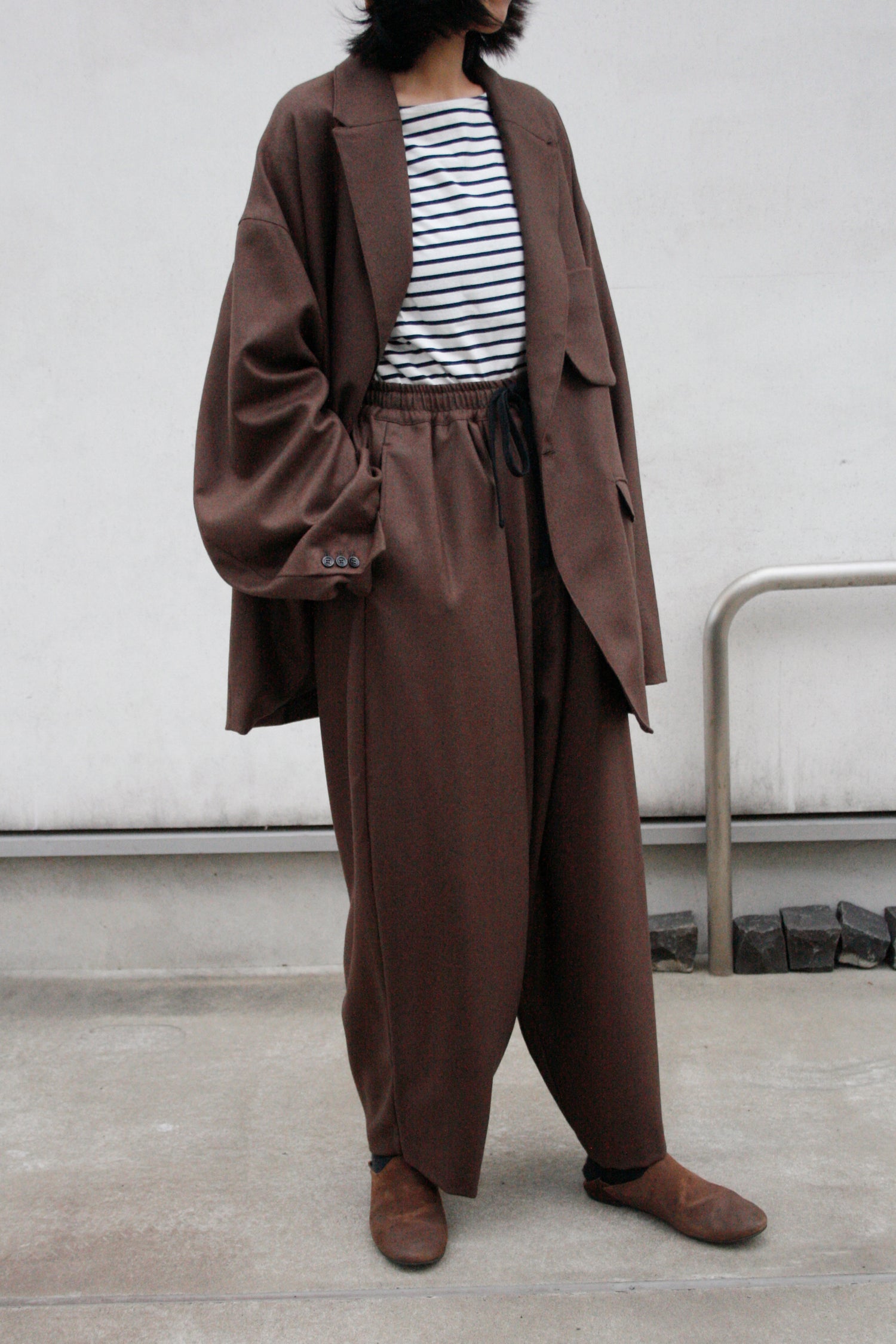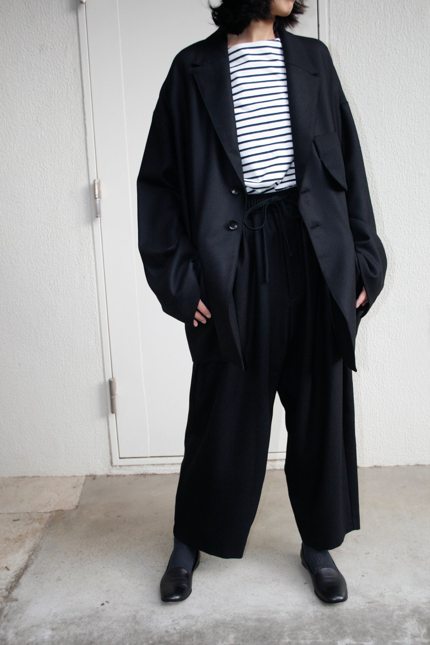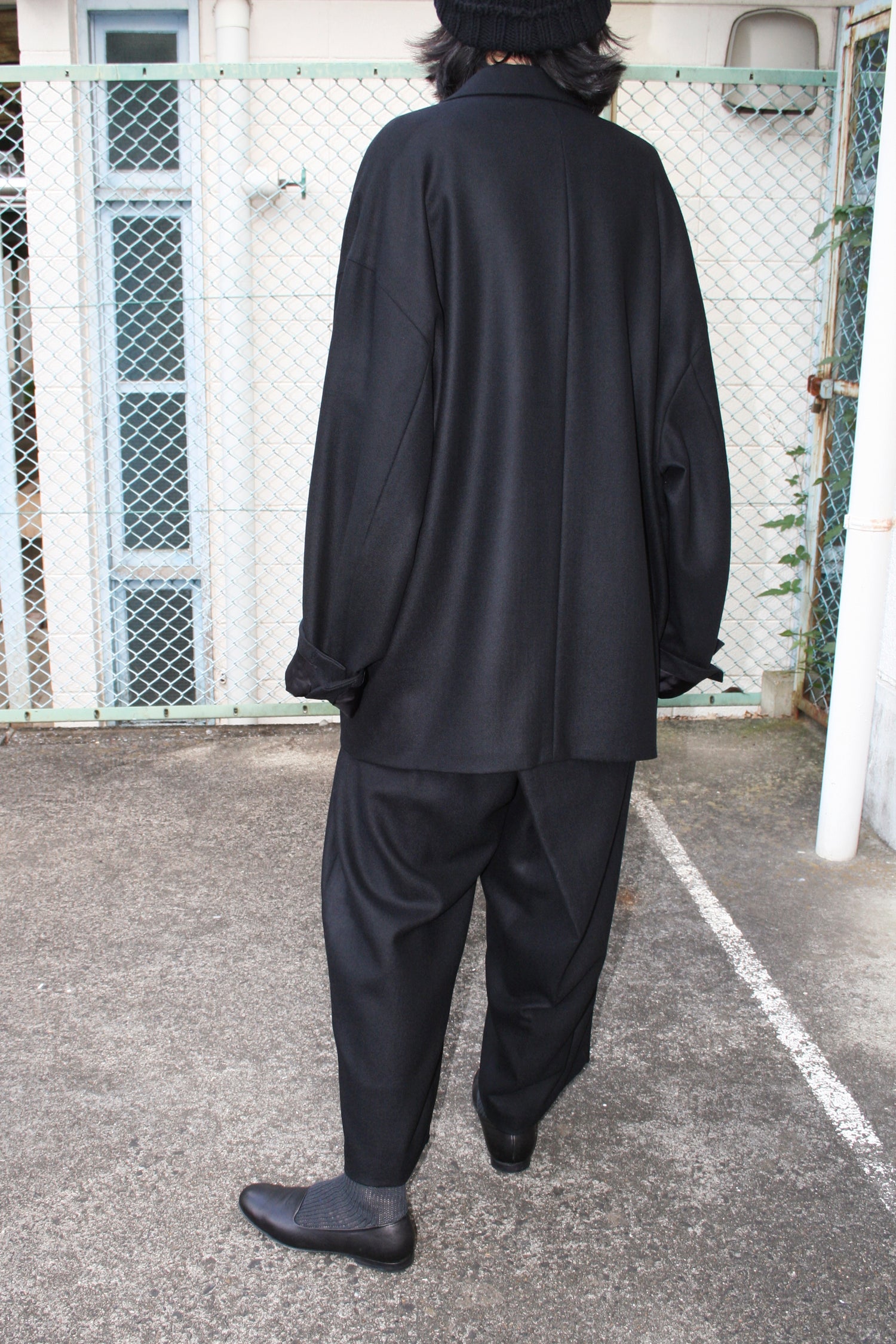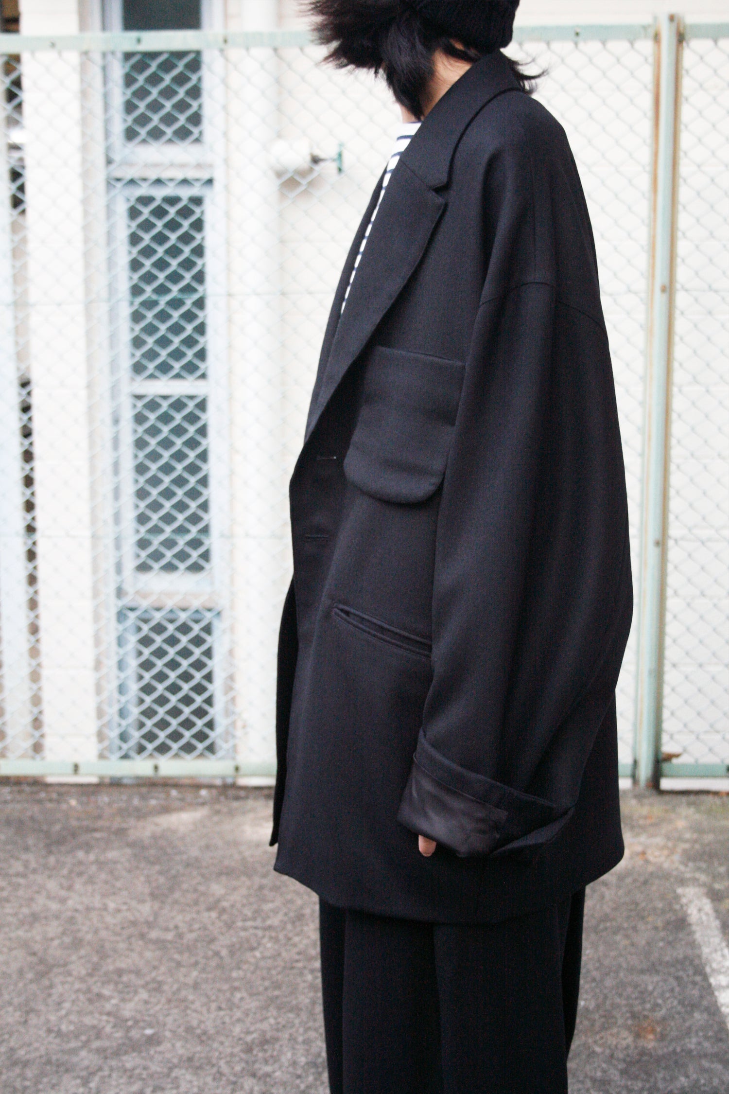 2釦ワイドドロップショルダーテーラードJK。立体的につけられた胸ポケットがアクセントになった一着。従来のフラノの素材にはない縮絨工程を経て、ソフトなフラノに仕上げた生地。身体から綺麗に離れる立体感あるシルエットのジャケット。ゆったりとしたシルエットでオーバーサイズを楽しめます。同素材のワイドイージーパンツとのセットアップもオススメです。