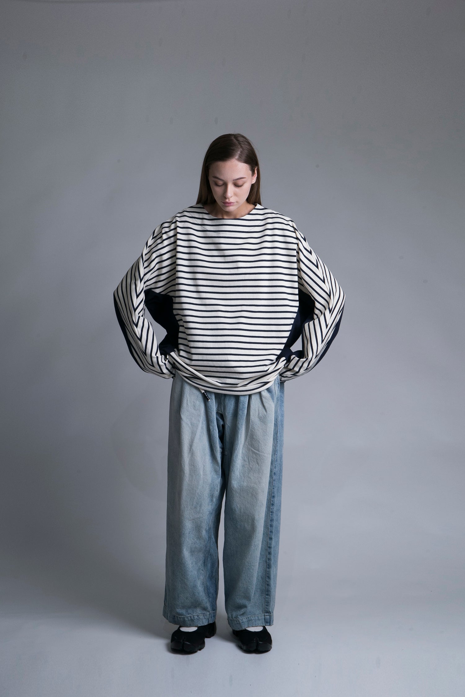 DETAILSA contemporary long-sleeve tee is characterized by the use of fresh and clear basque borders with some wild undertones. It’s made specially (and very carefully) by super-soft organic cotton. Relaxed fit in dolman sleeves with lower armholes.