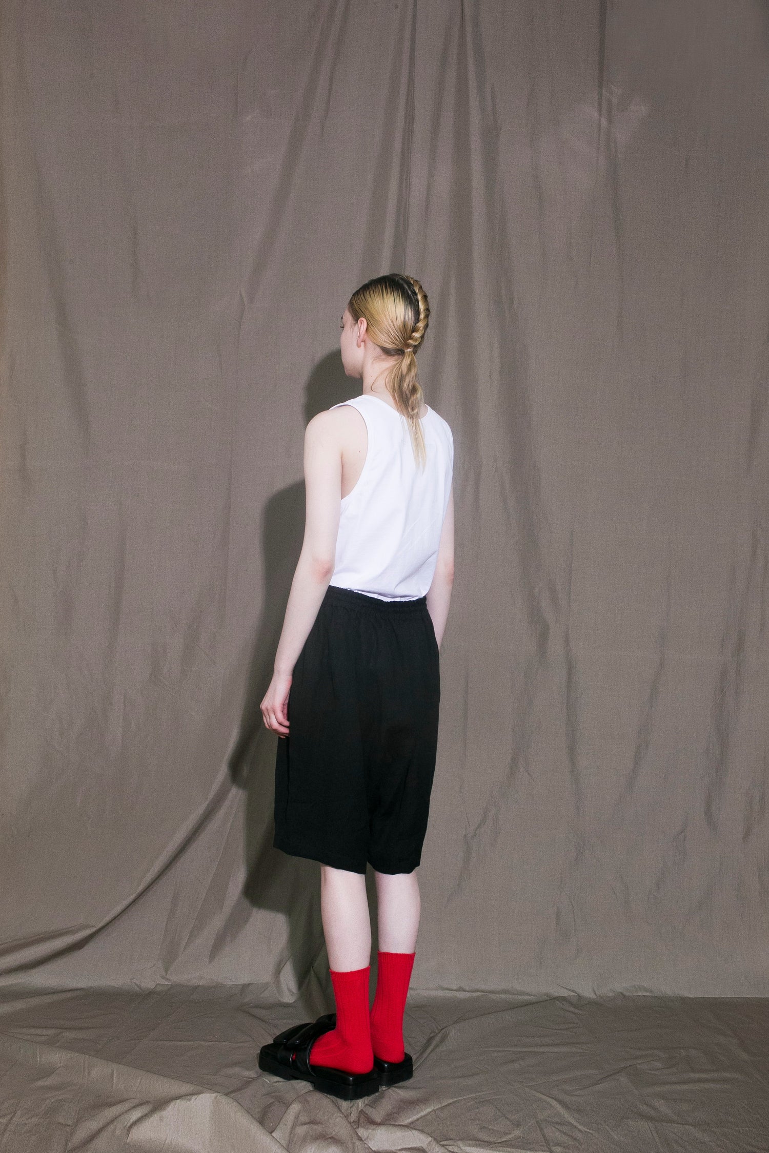 For Spring Summer 2022, MBL teamed up Bishu (textile production center based in Japan) partners again, ‘Bishu Japan Linen’, turning the latest mostly dull markets into a bold navigation. Knee length shorts in black looks minimal and functional with bigger volume and rubber band waist with a drawstring for flexibility. Two slanted pockets are built in. Nicer materials and oversized-setting-up-vibes are best of the best for everyone.