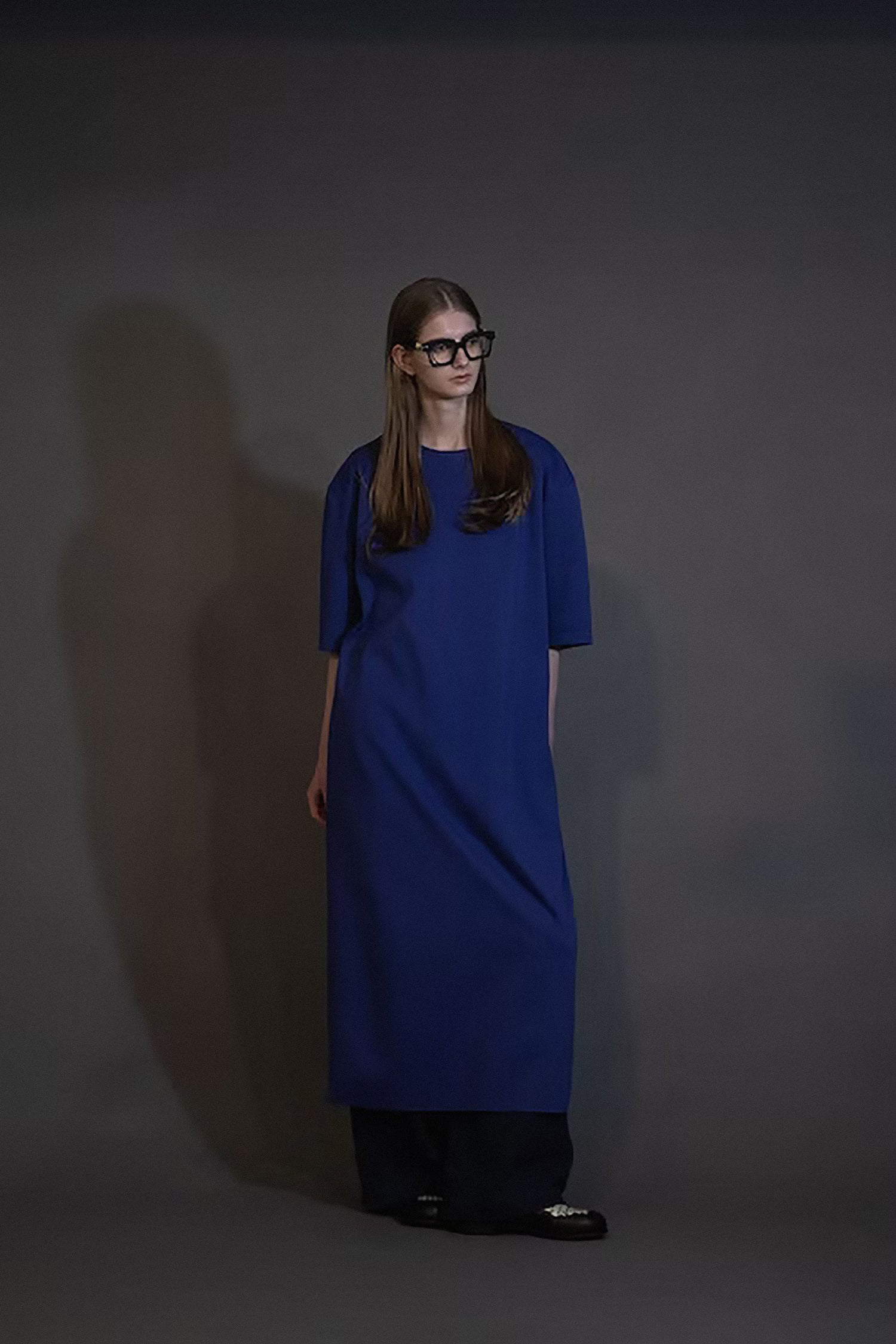 ゆったりとした身頃が特徴のワンピース。柔らかい表情のコットンポリエステルの生地を使用。ドライタッチのマイルドコットンを両面機でハイゲージに編み立てた薄手のポンチ素材です。オールシーズンご着用頂けます。
