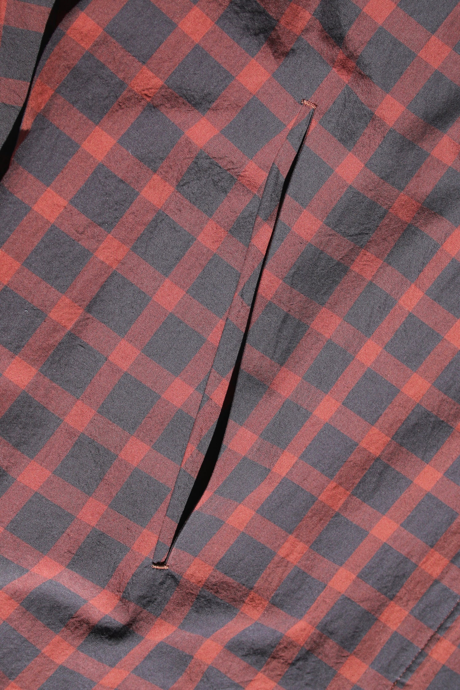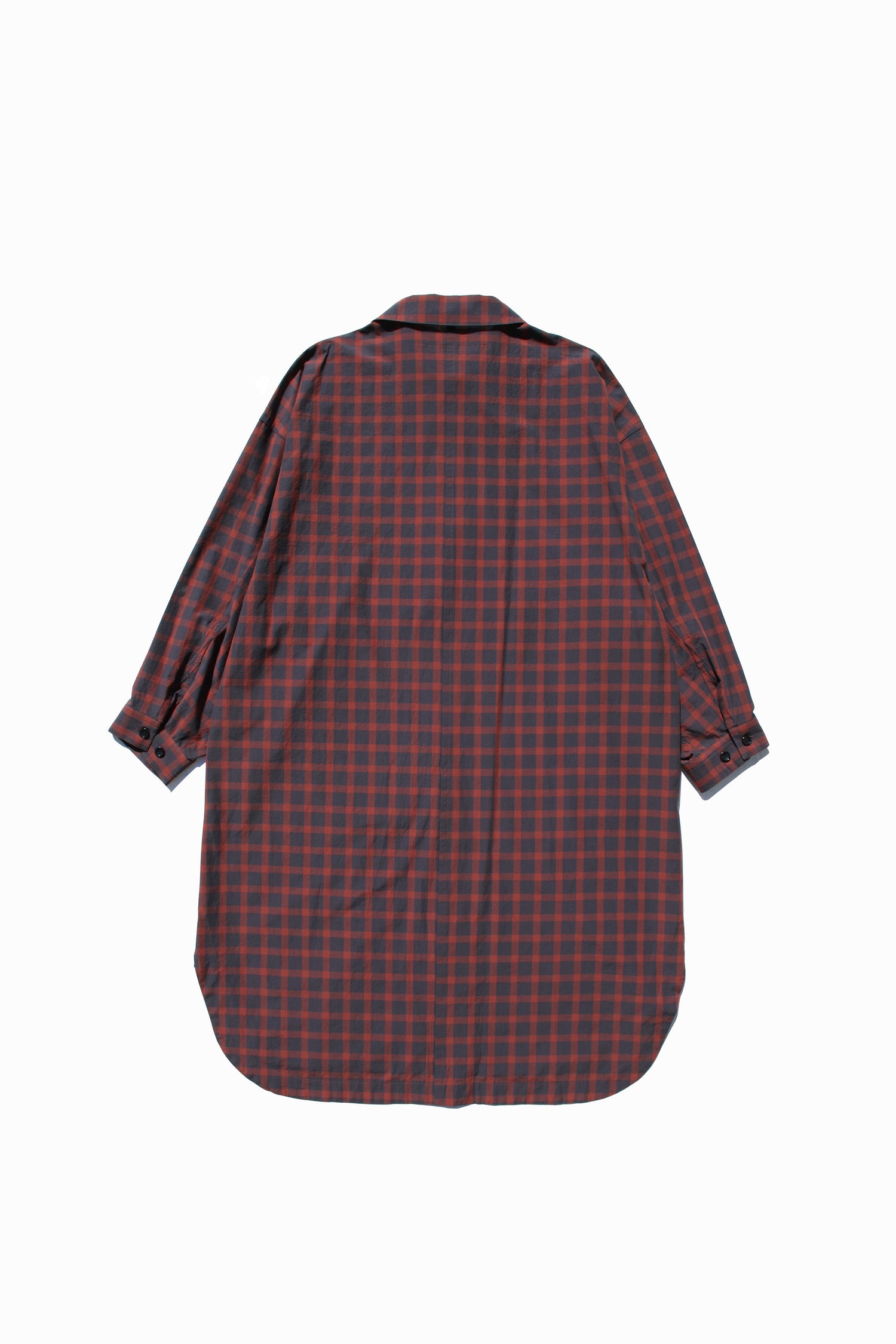 コートを羽織るイメージで作成したチェックシャツコート。コットン100%のタイプライターを使用。生地の段階で洗いをかけ、表面が擦れて化繊の様なドライタッチに仕上がりになっております。ゆとりのあるサイズで楽な着心地。 シャツシルエットで、たっぷりとしたボリュームのあるビッグシルエット、ゆったりとした袖が特徴のデザインコート。大きな両サイドポケットがあり、機能性も抜群です。合わせるインナー次第で、春先から初冬にかけて活躍してくれますよ。ユニセックスでお使いいただけます。