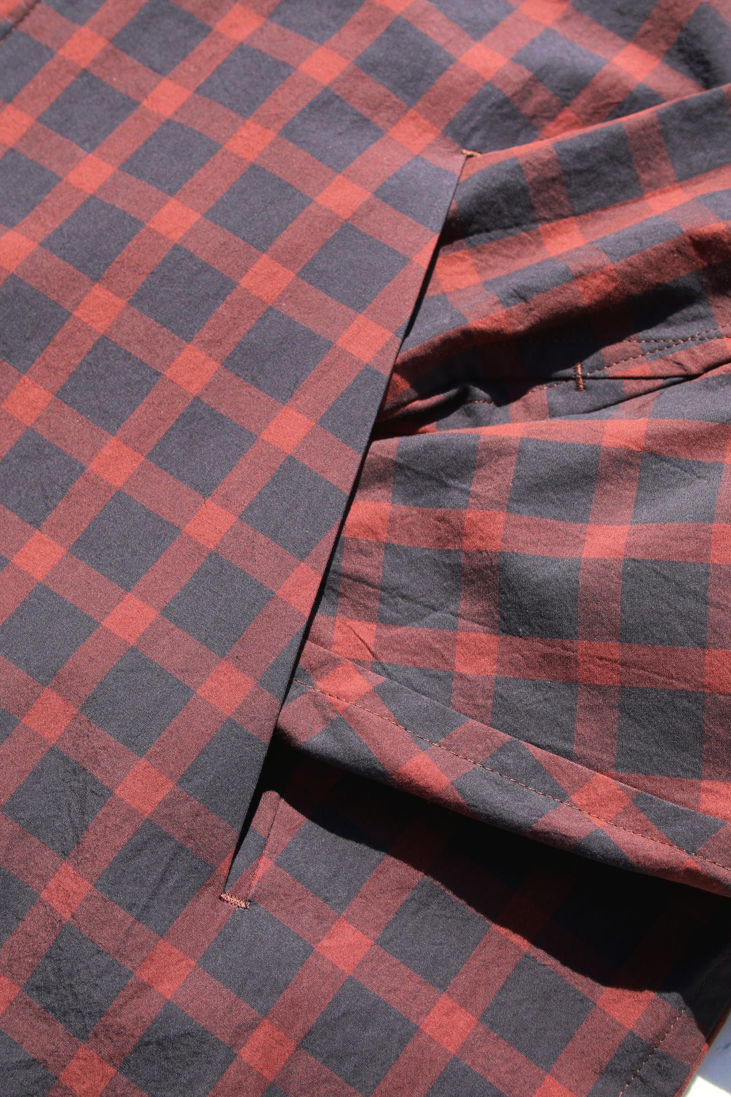 DETAILSThe most intriguing expressive garments of today. Solid vibe going throughout the loose shirt coat. Made in a dense organic cotton. Here seen in red check. Dropped shoulder and side-pockets included. Essential one-piece for all season makes you move, touch and surprise.