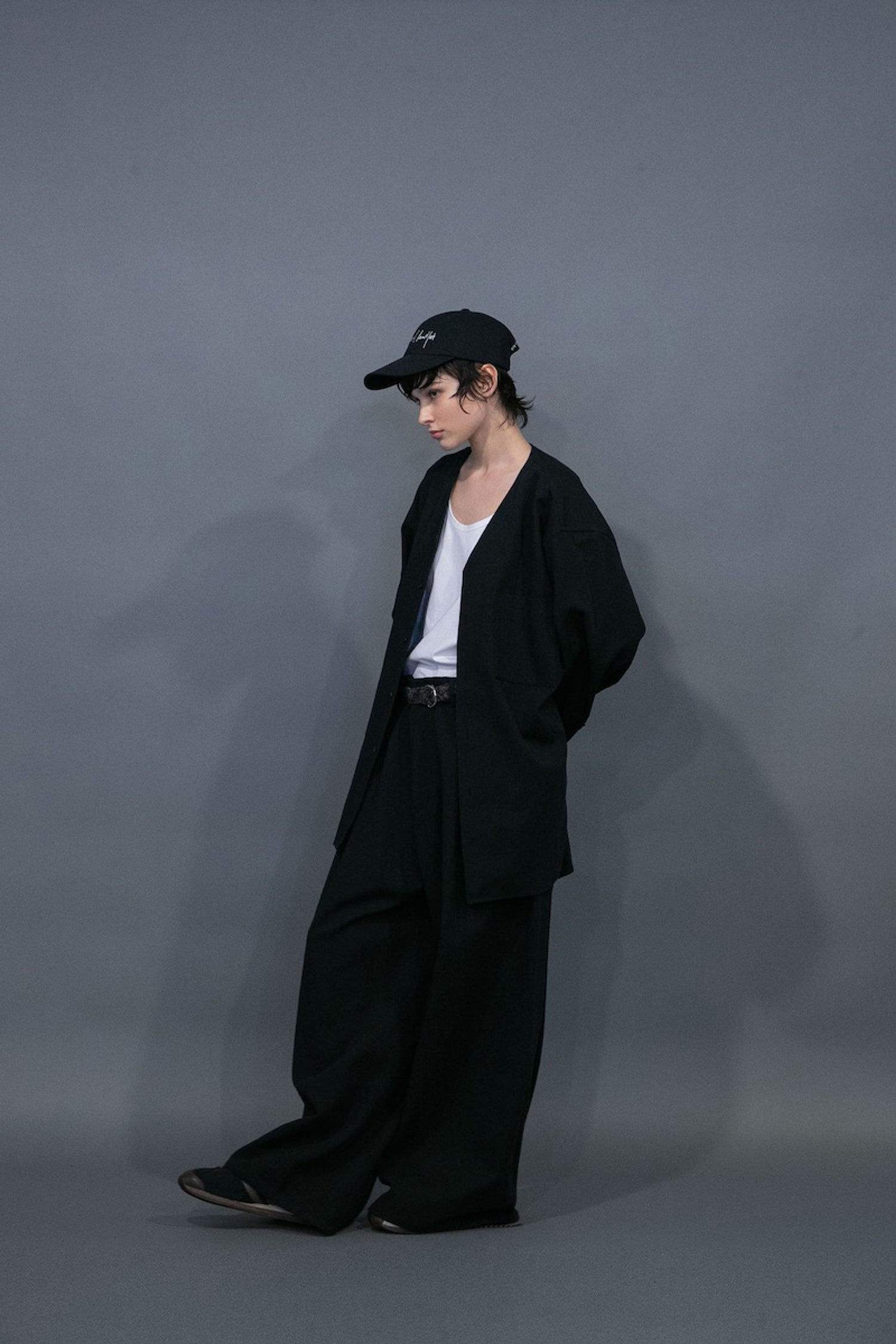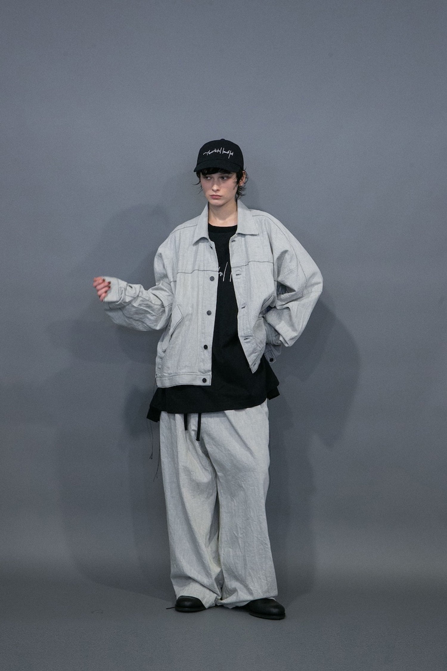 経年変化の風合いが楽しめる特殊染料を使用したリュードバック加工を施した素材です。製品後、水洗いしてるので、一部当たり線などが発生しております。特殊染料を用いている為、生地の特性上、移染しやすい生地となりますので、お取り扱いにご注意ください。