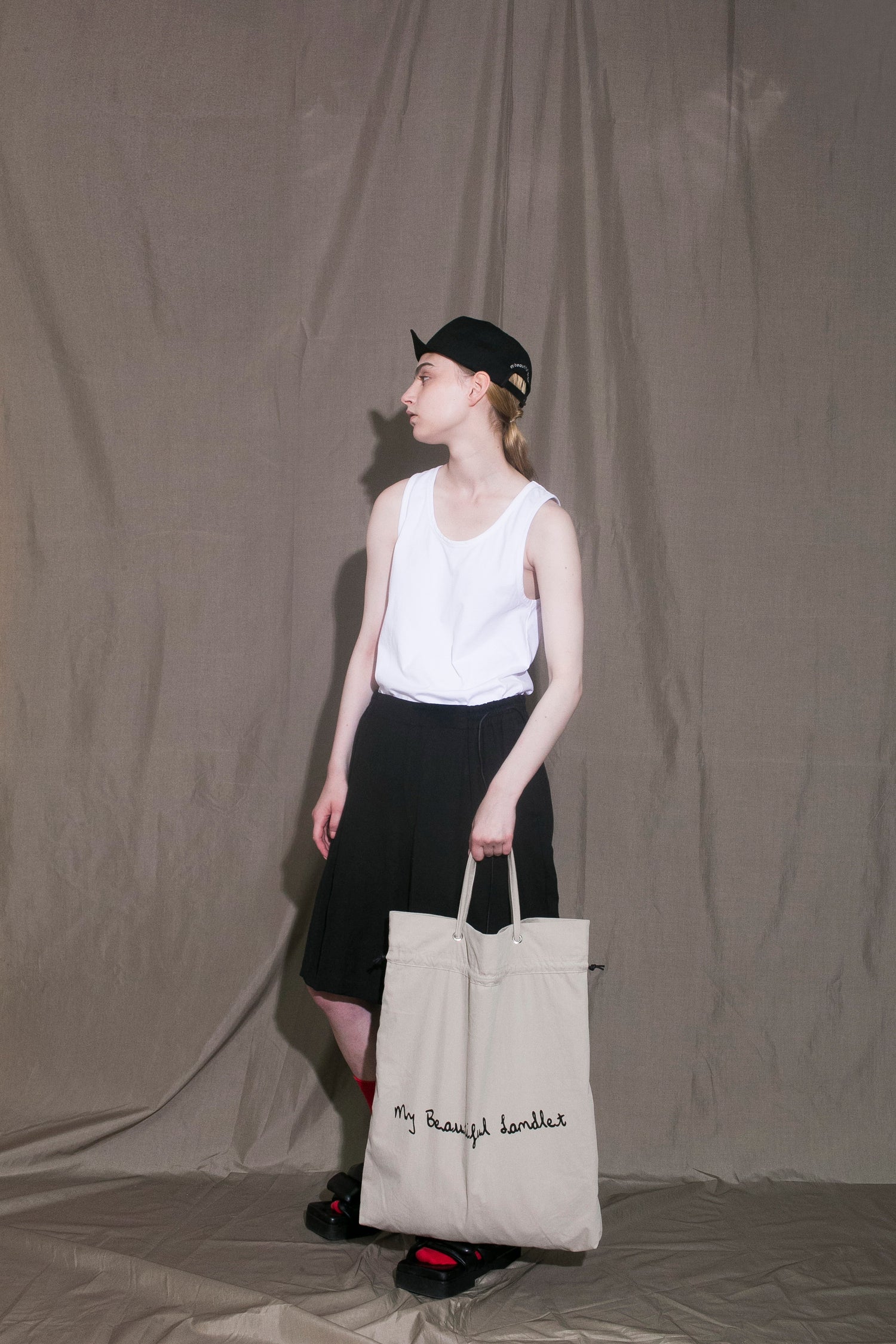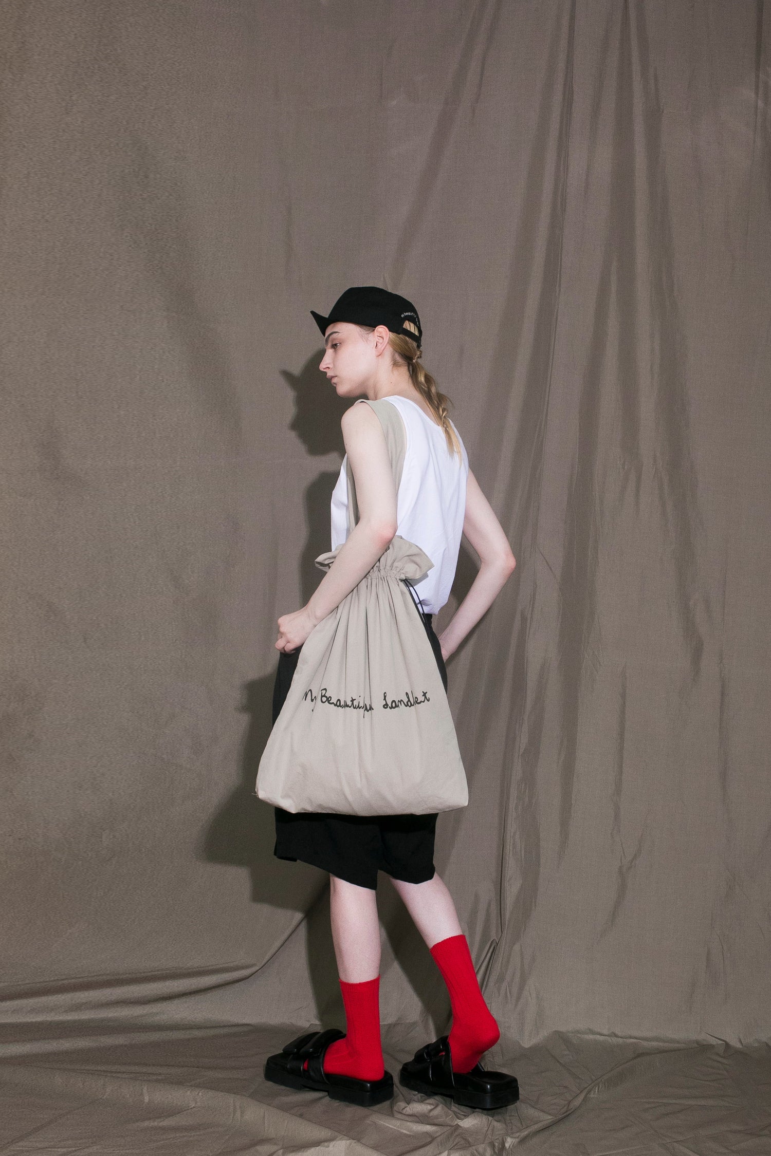 今季はmy beautiful landletロゴプリントを配したトートバッグシリーズ。ドローコードで口を絞ることができ、ストラップも内側で結んで長さ調節が可能です。バイオ加工を施し、表面を微起毛させることでソフトな風合いに仕上げた生地を使用。小物は6パネルリネンキャップやトートバッグ(ベージュ、ブラック)なども相性抜群。季節を問わず使える素材感も魅力的な一品。