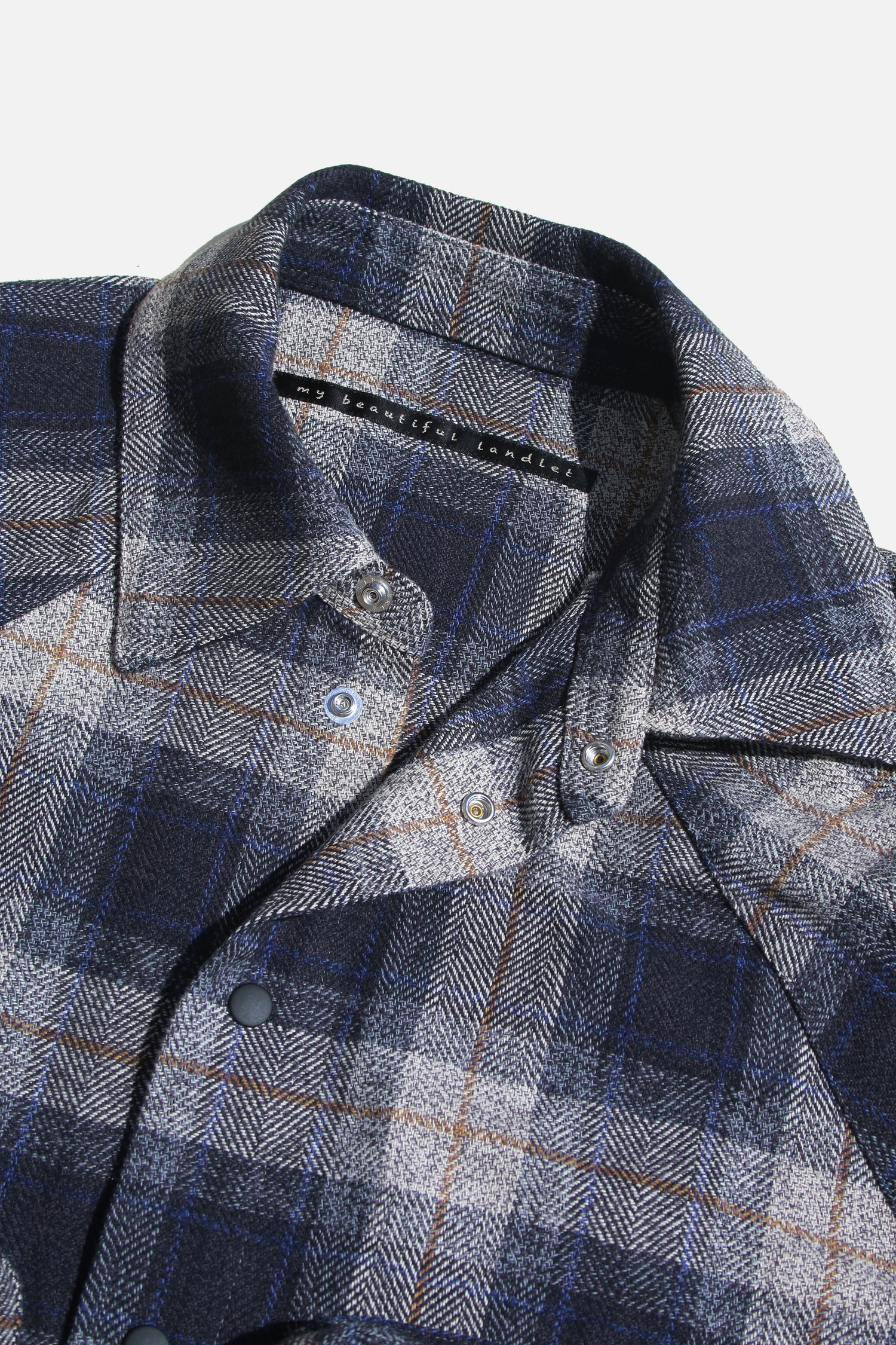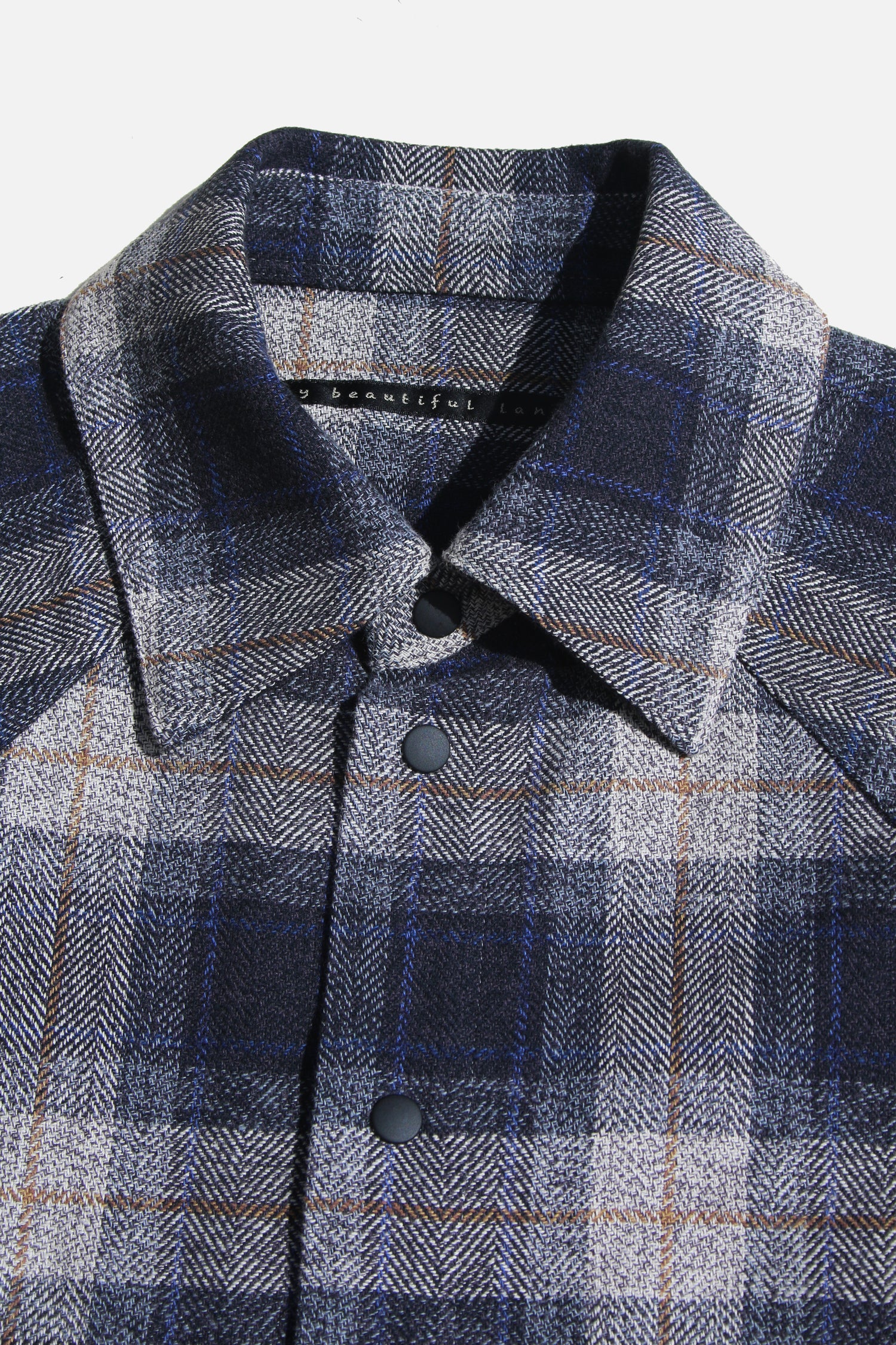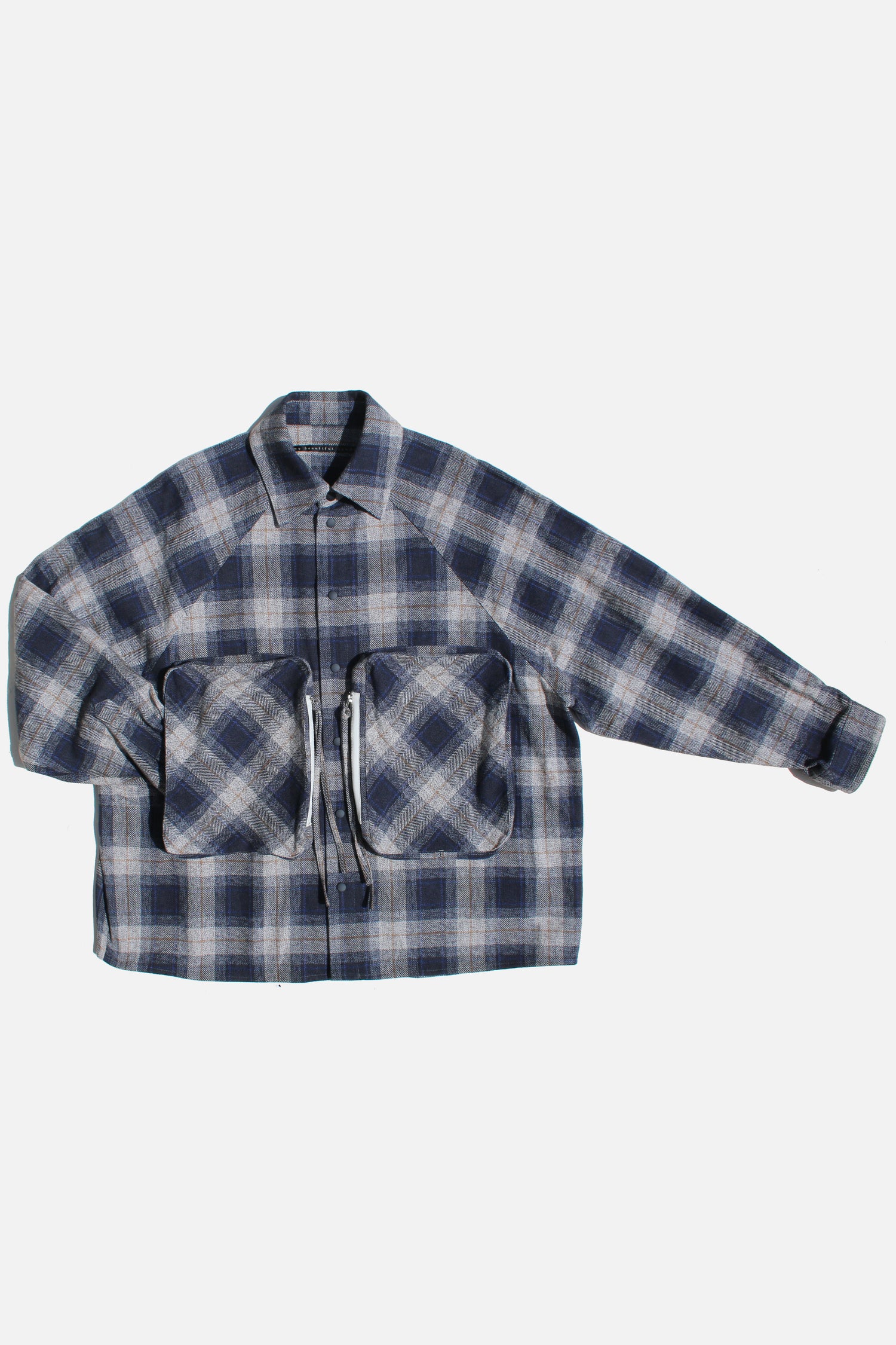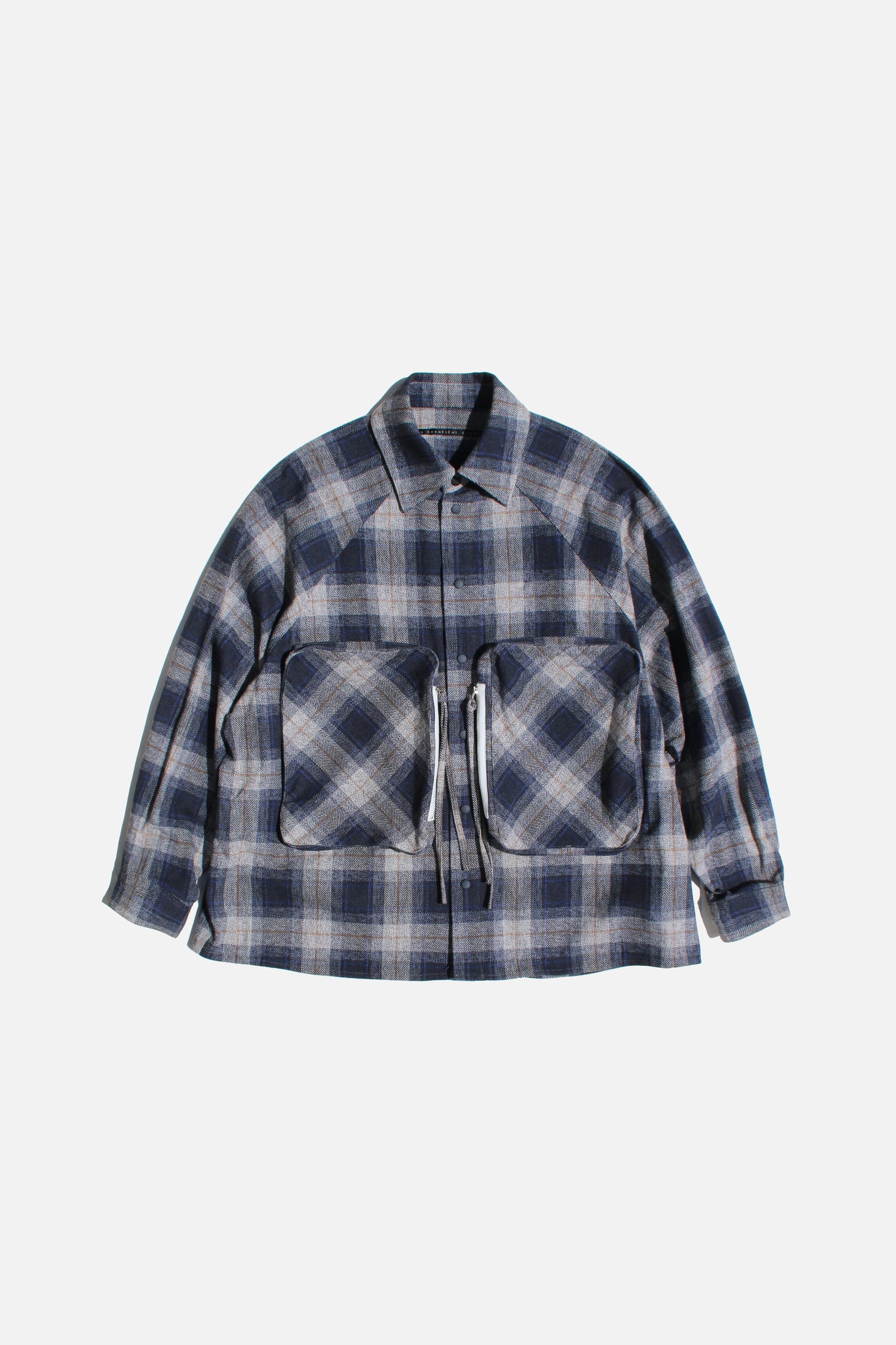 Oversized shirt made by using a Scottish check fabric from Niigata craftsman. The pockets are interesting because they are very useful. They are able to carry your Contax T2, cigarette and extra cash.