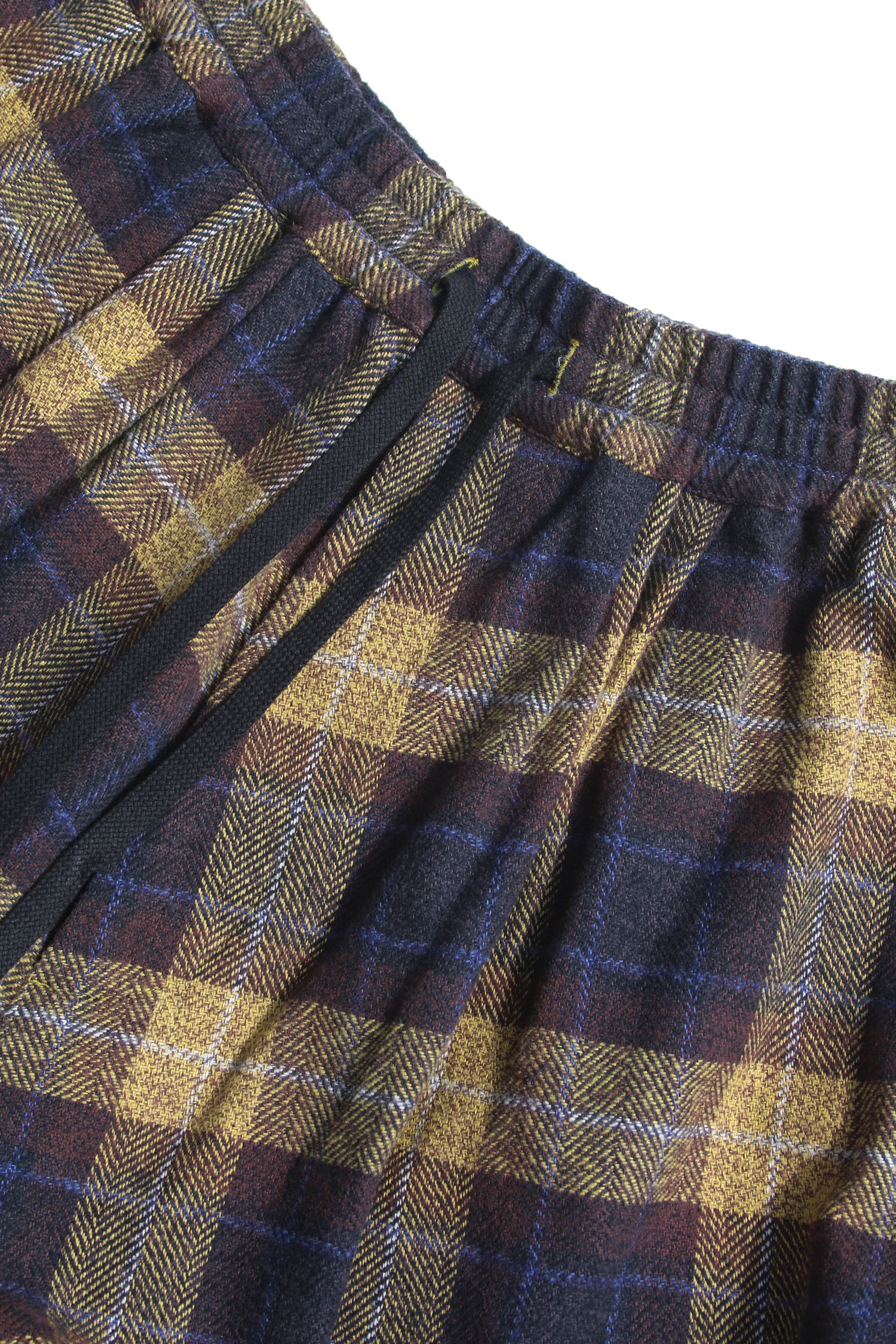 ボリューム感のあるシルエットが魅力のワイドイージーパンツ。20番手の太い糸を三子織りと呼ばれる、糸を3本撚って1本の糸にしています。生地を織った際にまだらな模様が表面に浮かび上がるように、新潟の職人技術をもって時間をかけて作られています。 股上が深く、ヒップと腿がたっぷりしたルーズカット。ウエストはゴムが入り、ドローコードで調節が可能。両サイドには便利なスラッシュポケットも付いています。