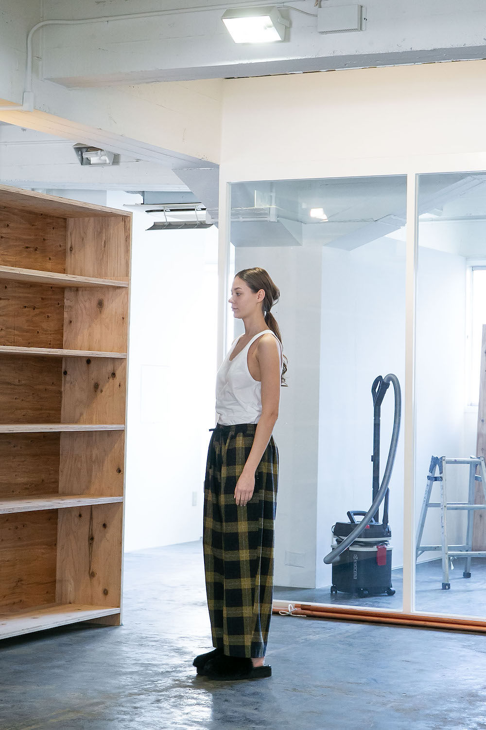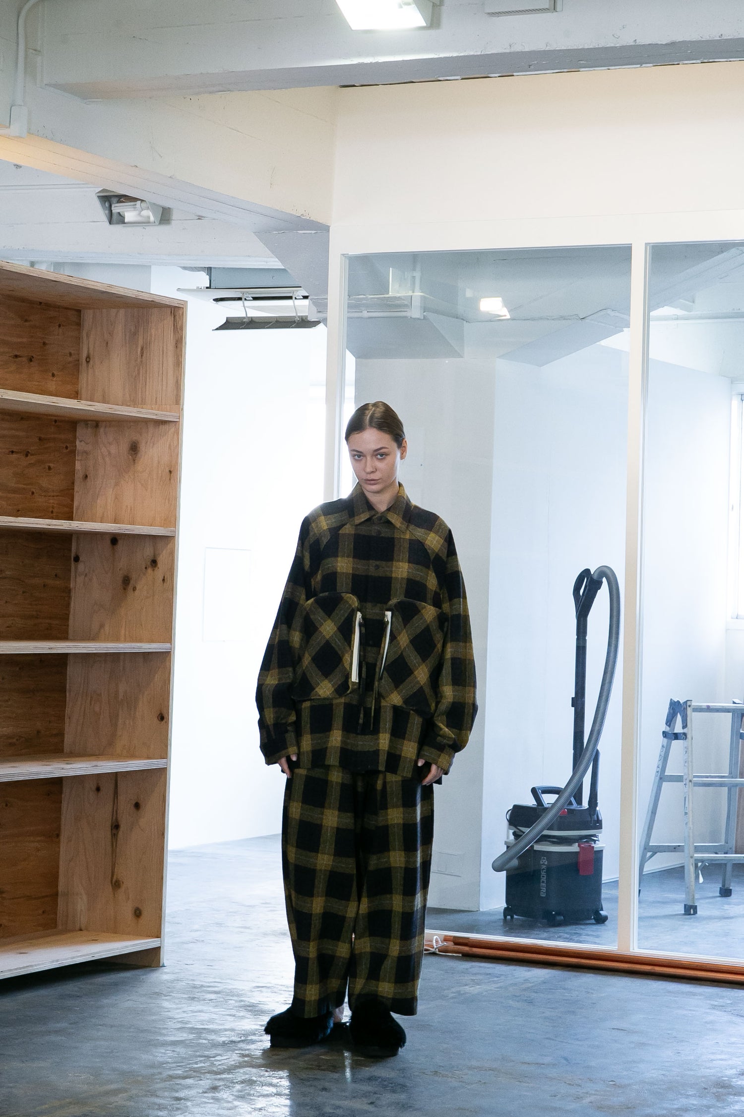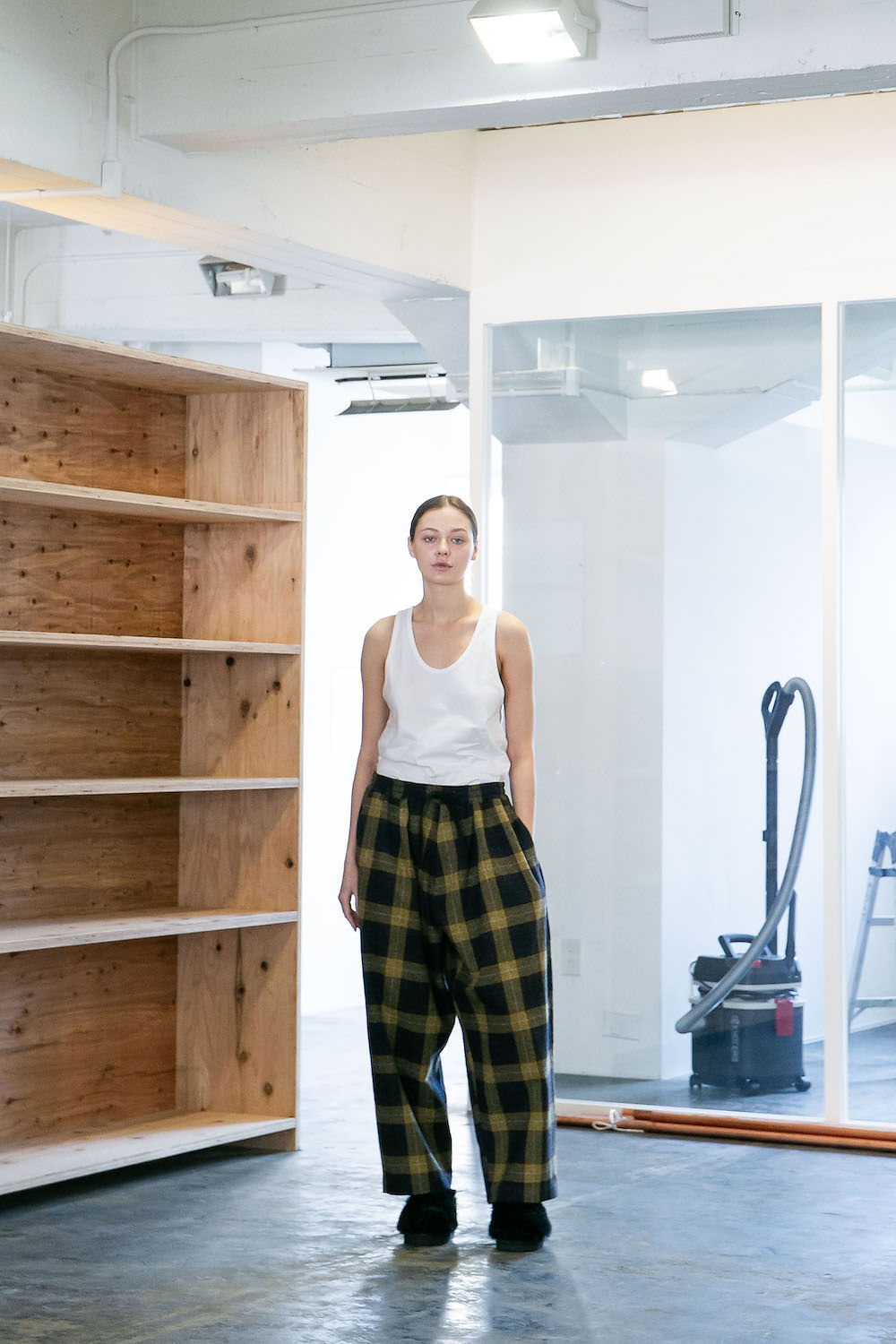 A very wide multi-functional pants. It is made by a Scottish check fabric from Niigata craftsman.Black drawcord style, super soft. How people imagined the future in the nineties?