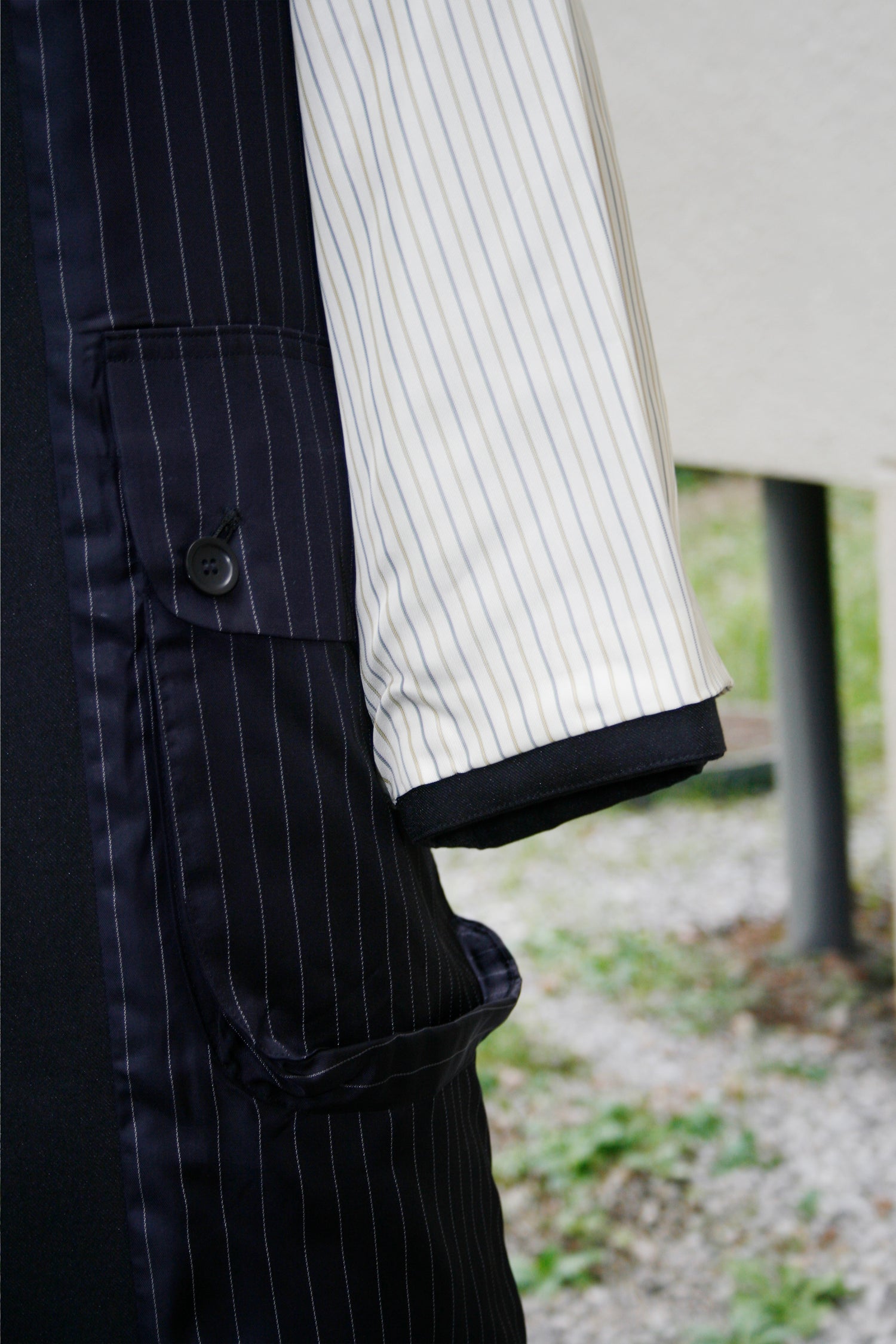 MY BEAUTIFUL LANDLET HIGH DENSITY GABARDINE STRIPE CUPRO REVERSIBLE COAT - BLACK
